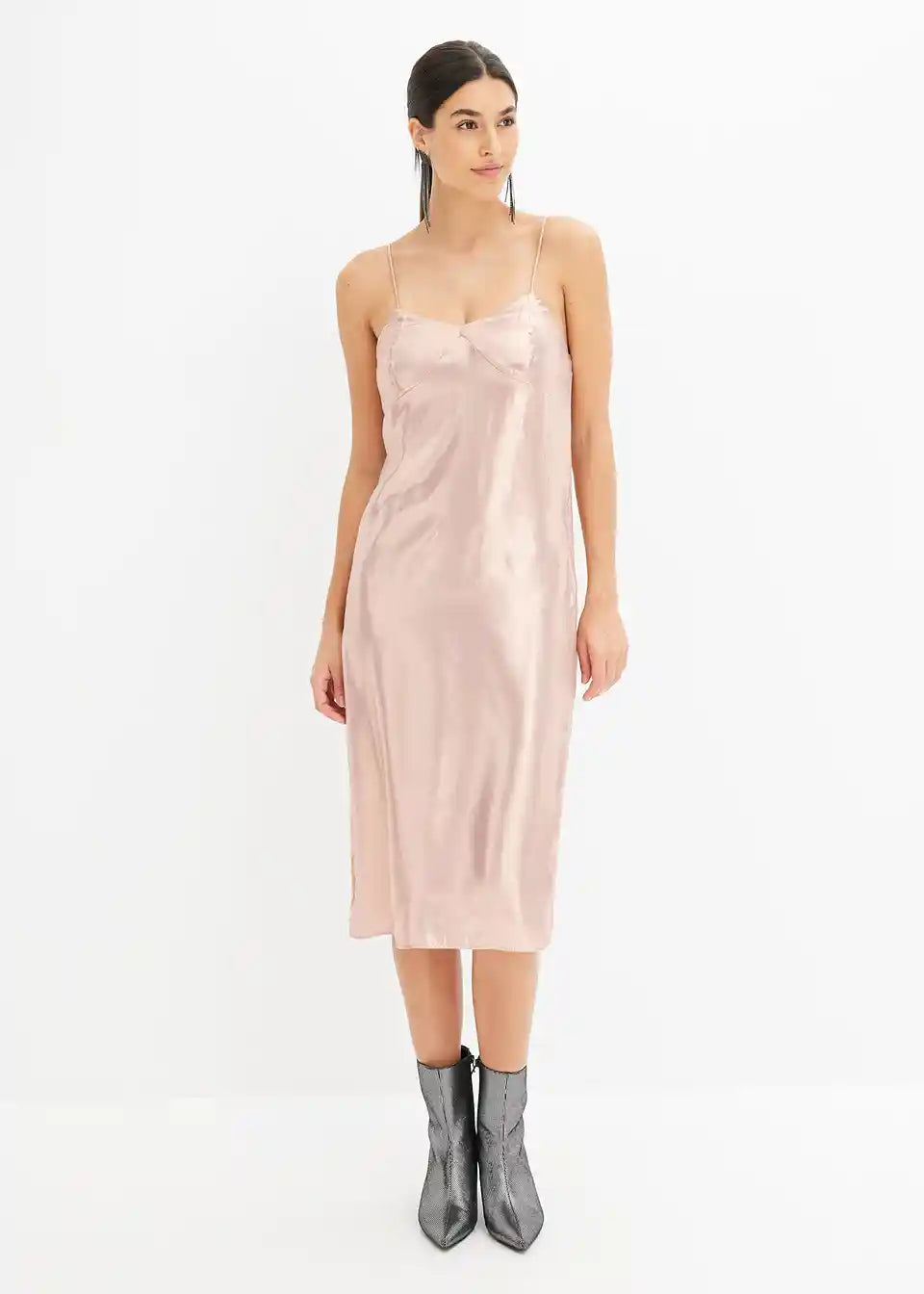 Trendna obleka v katero kar zdrsnete iz satena z V-izrezom