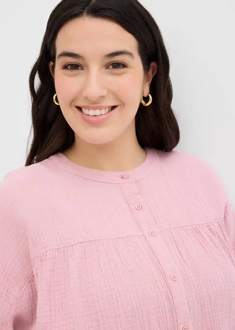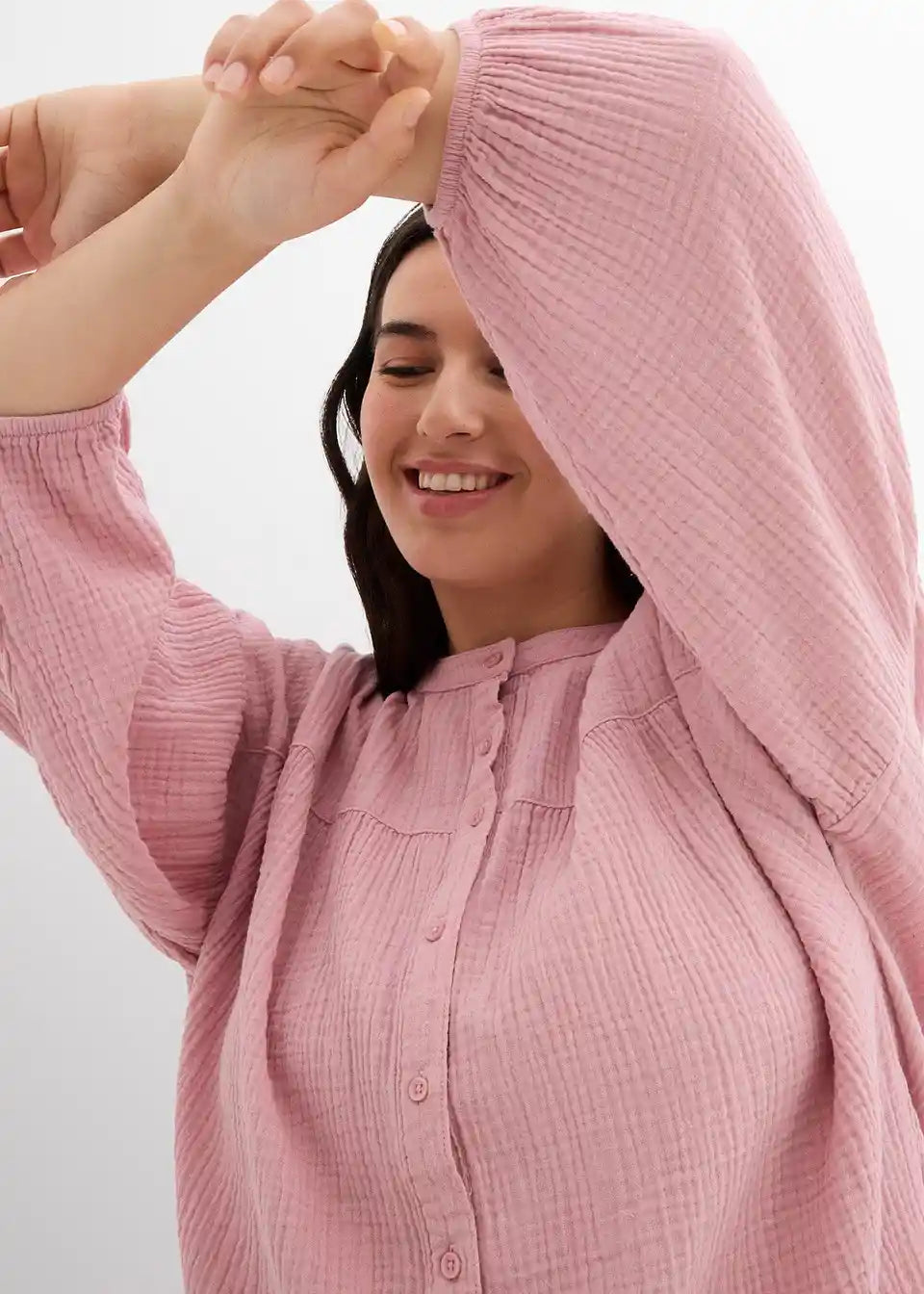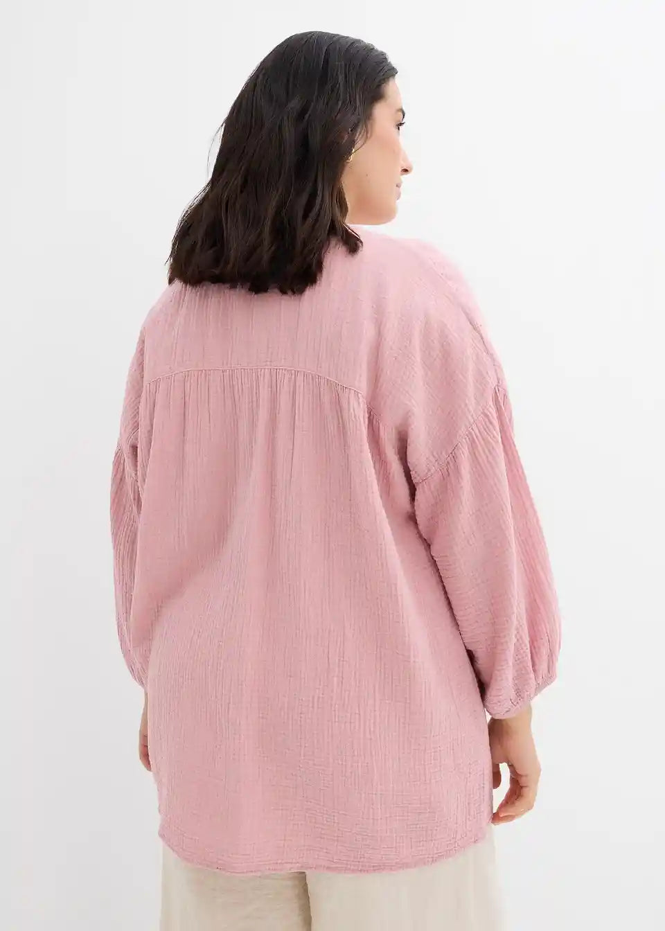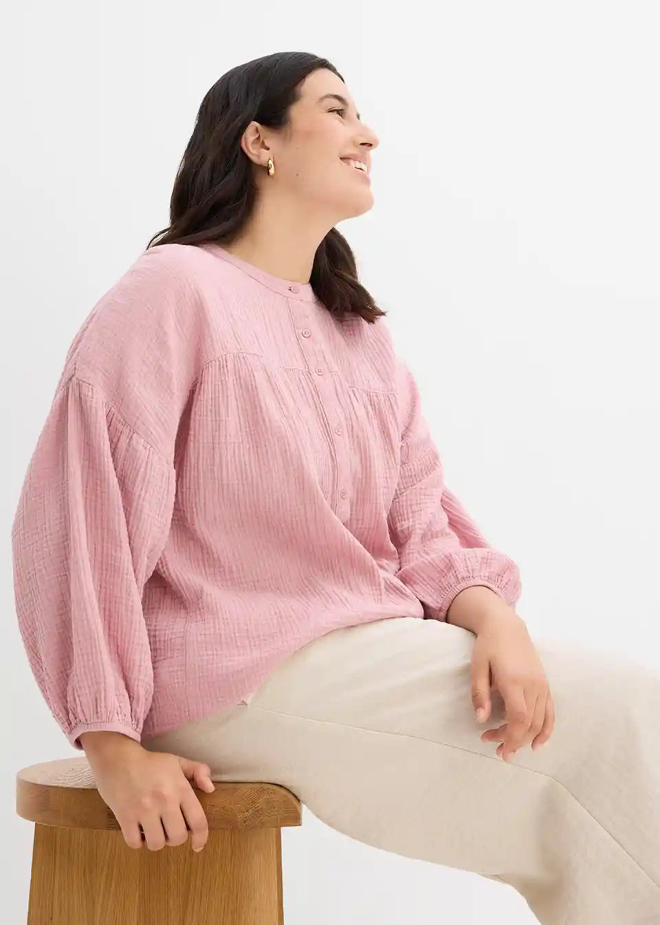 Lahkotna bluza s škofovskimi rokavi polepša postavo iz za nošenje prijetnega bombažnega materiala