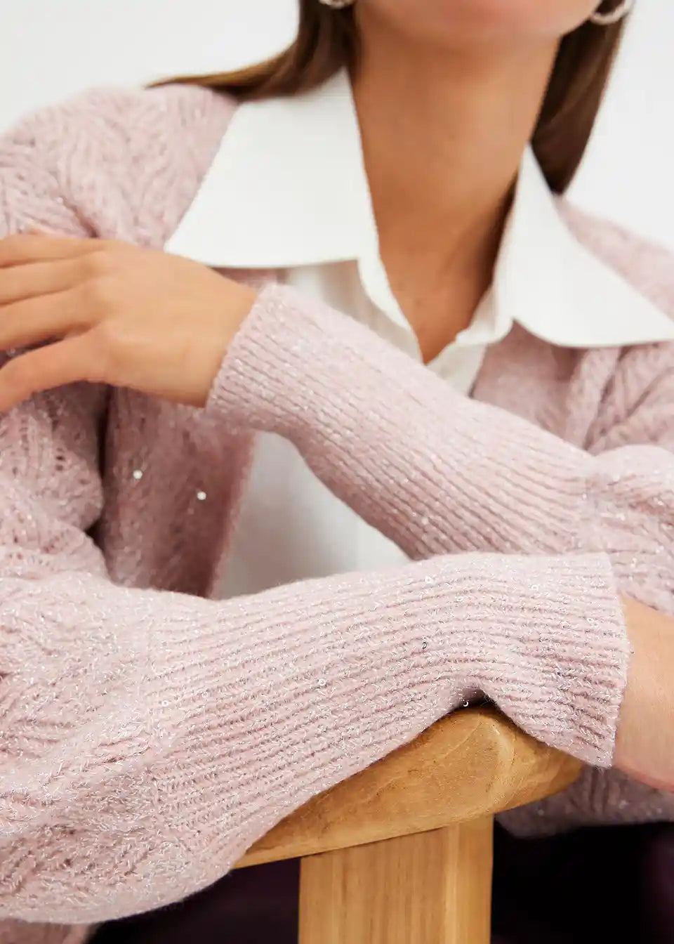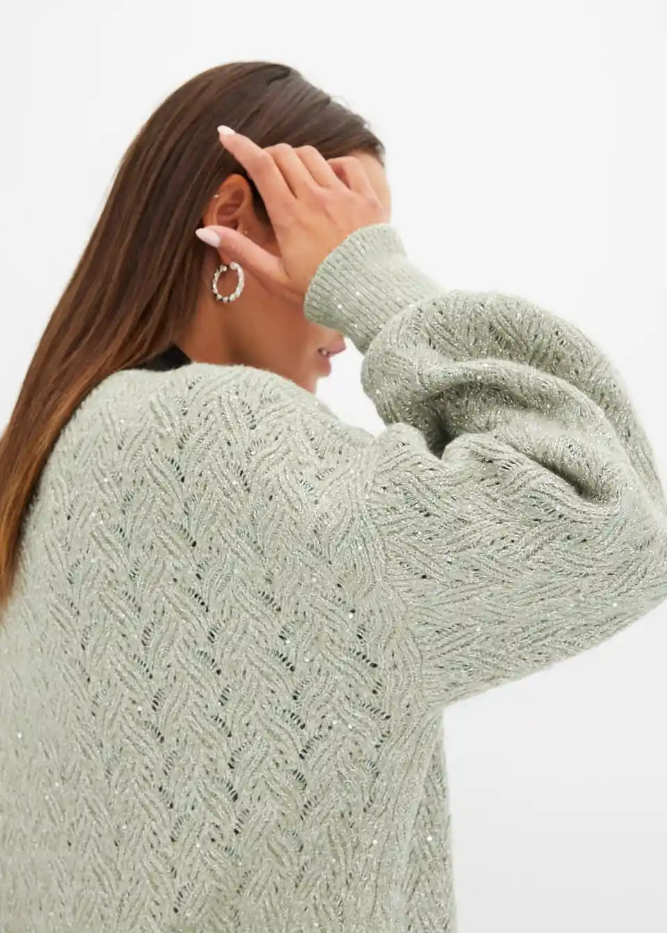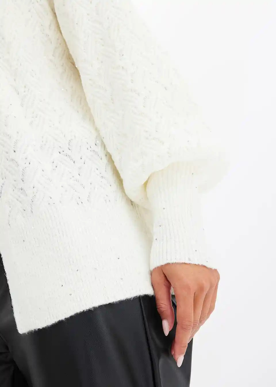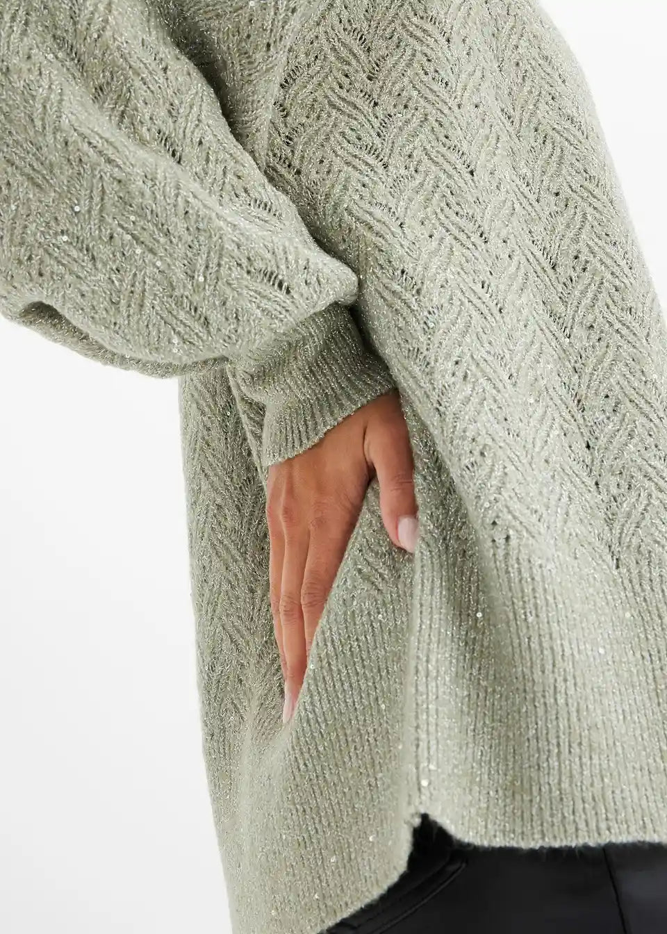 Ohlapna pletena jopa z bleščicami