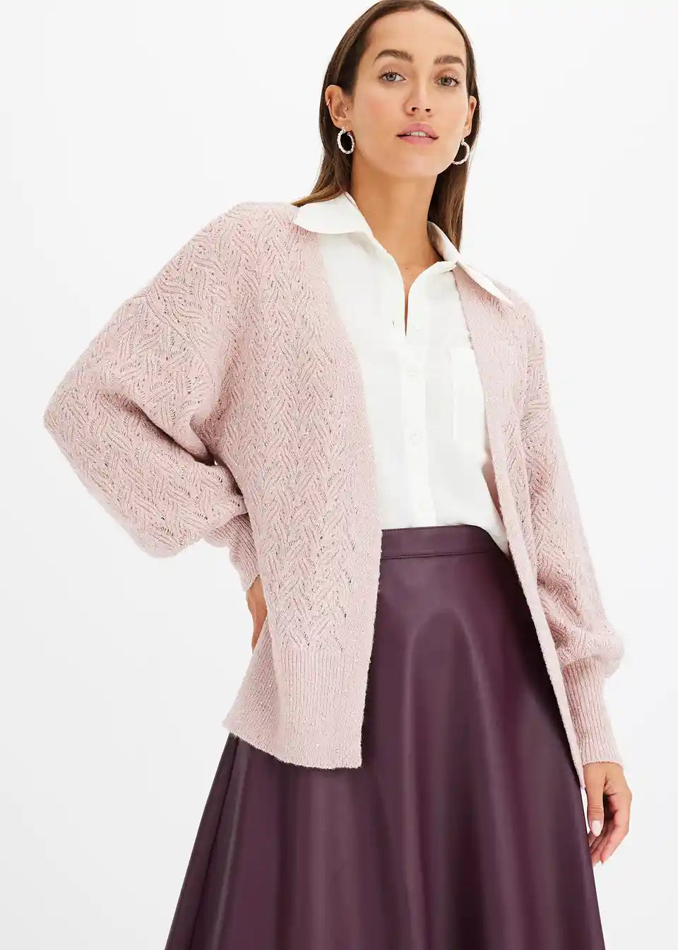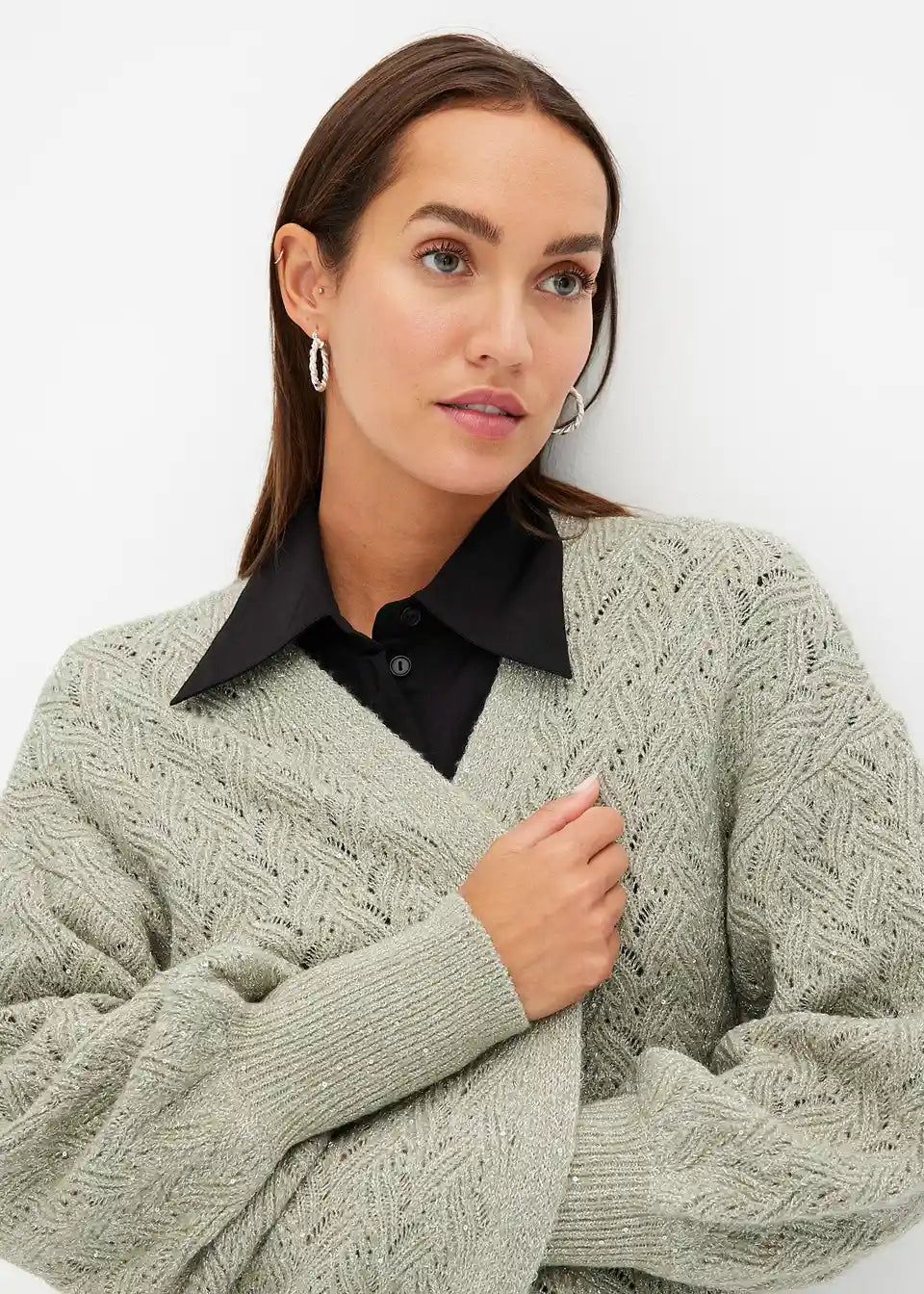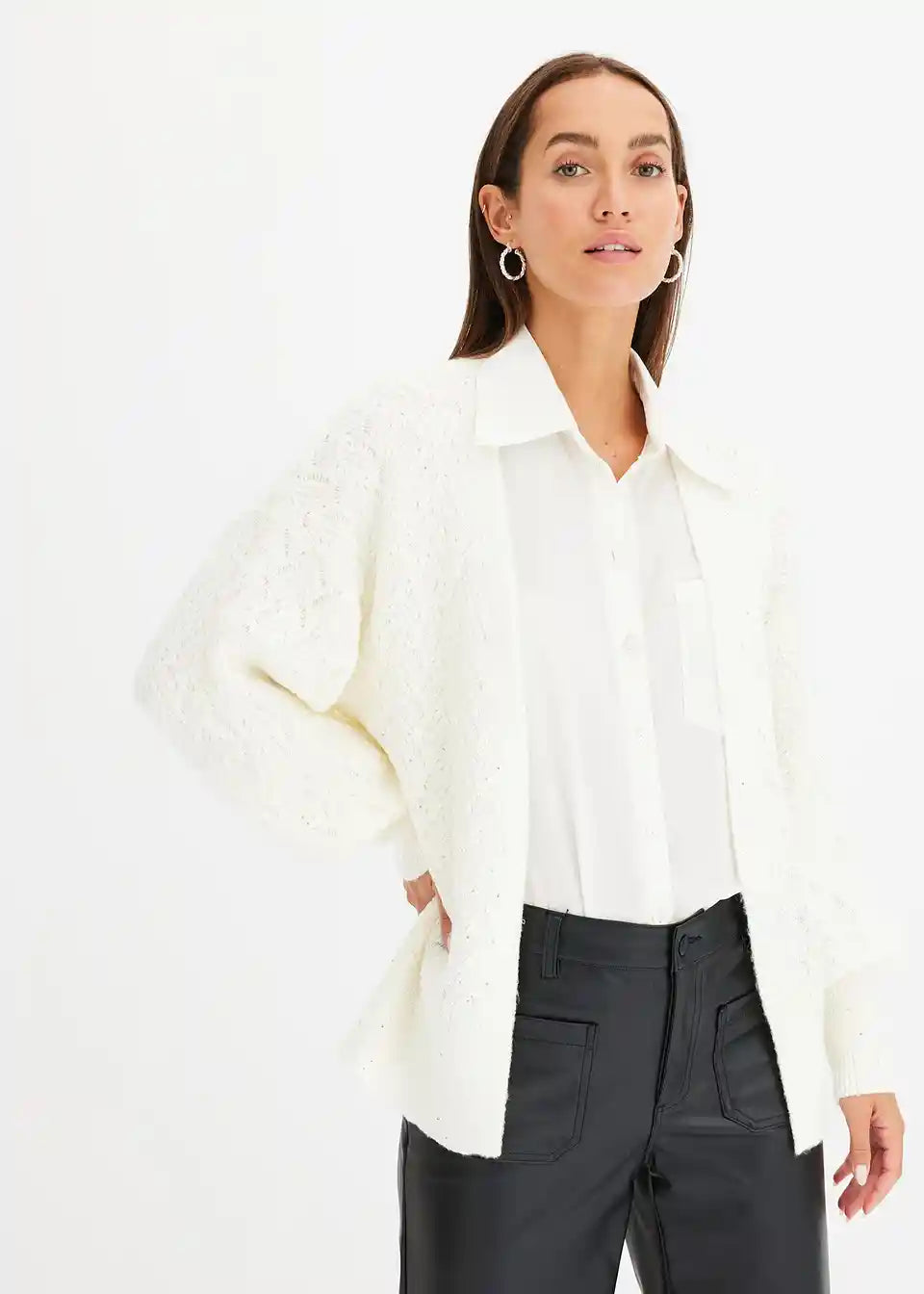 Ohlapna pletena jopa z bleščicami