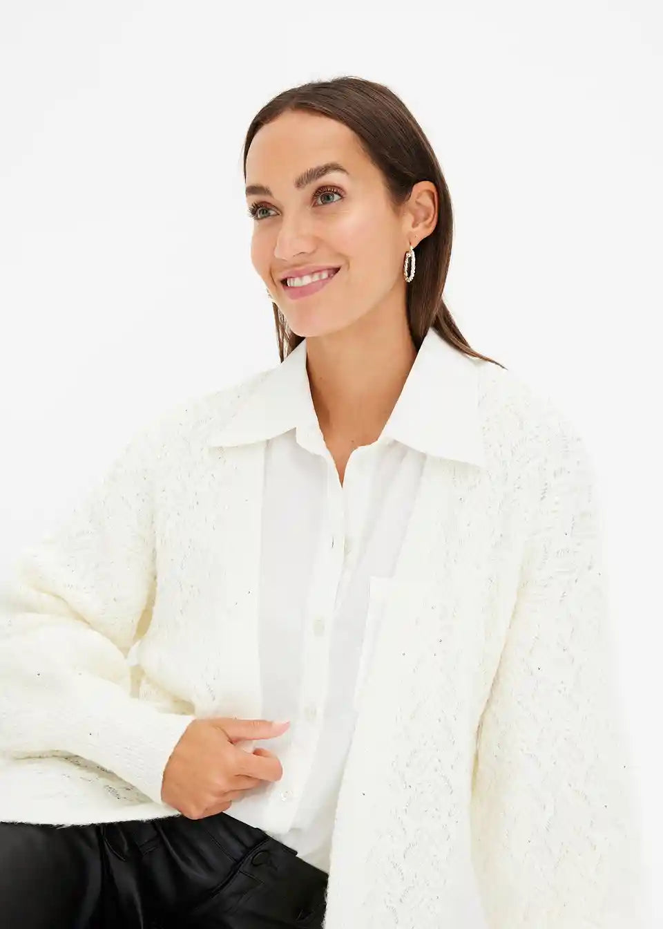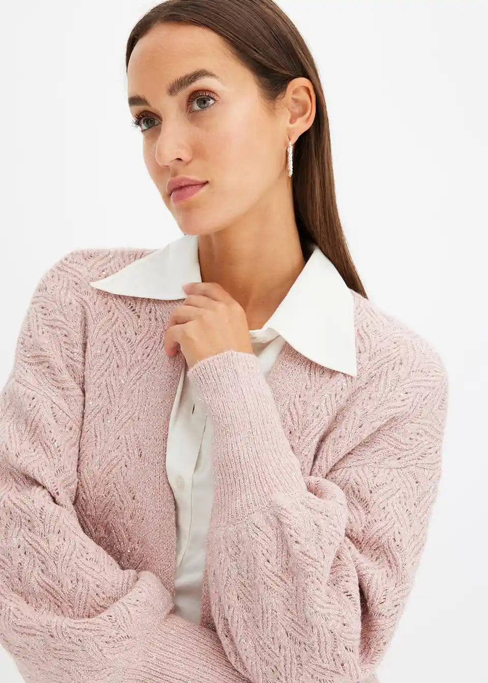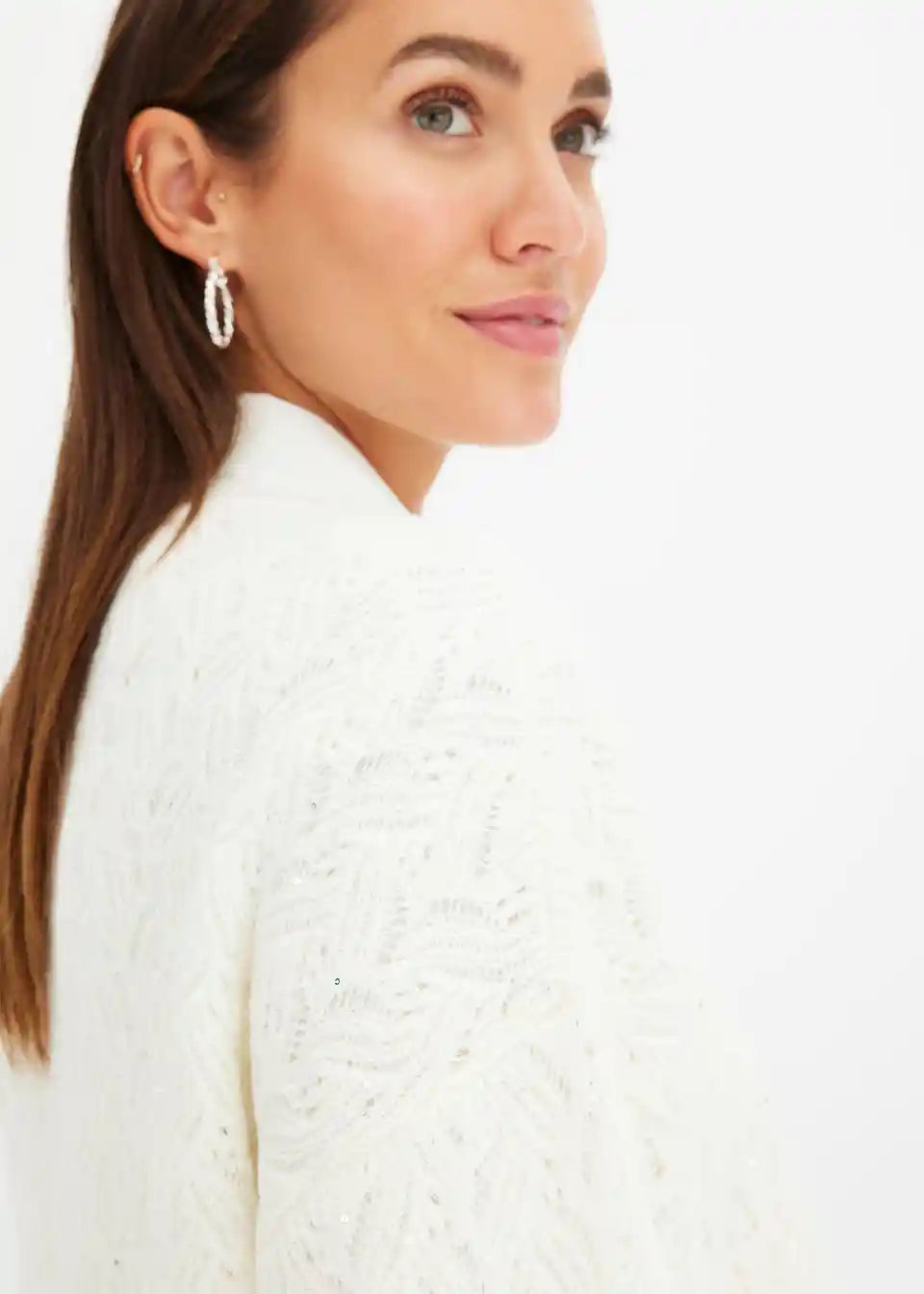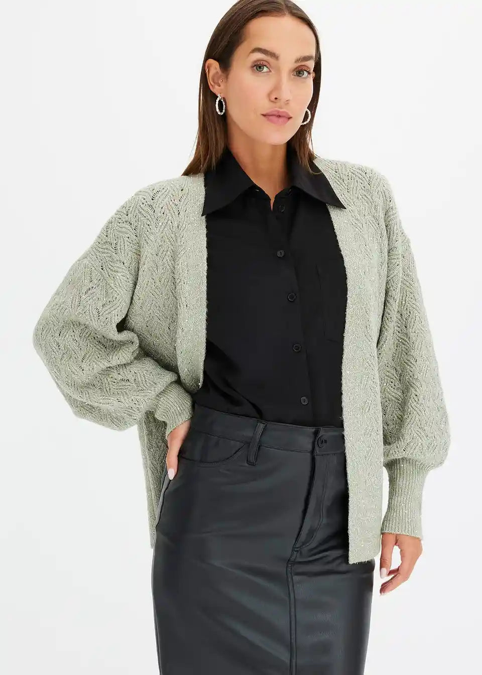 Ohlapna pletena jopa z bleščicami