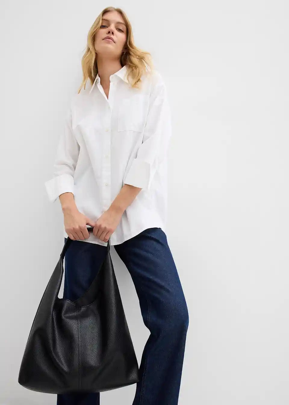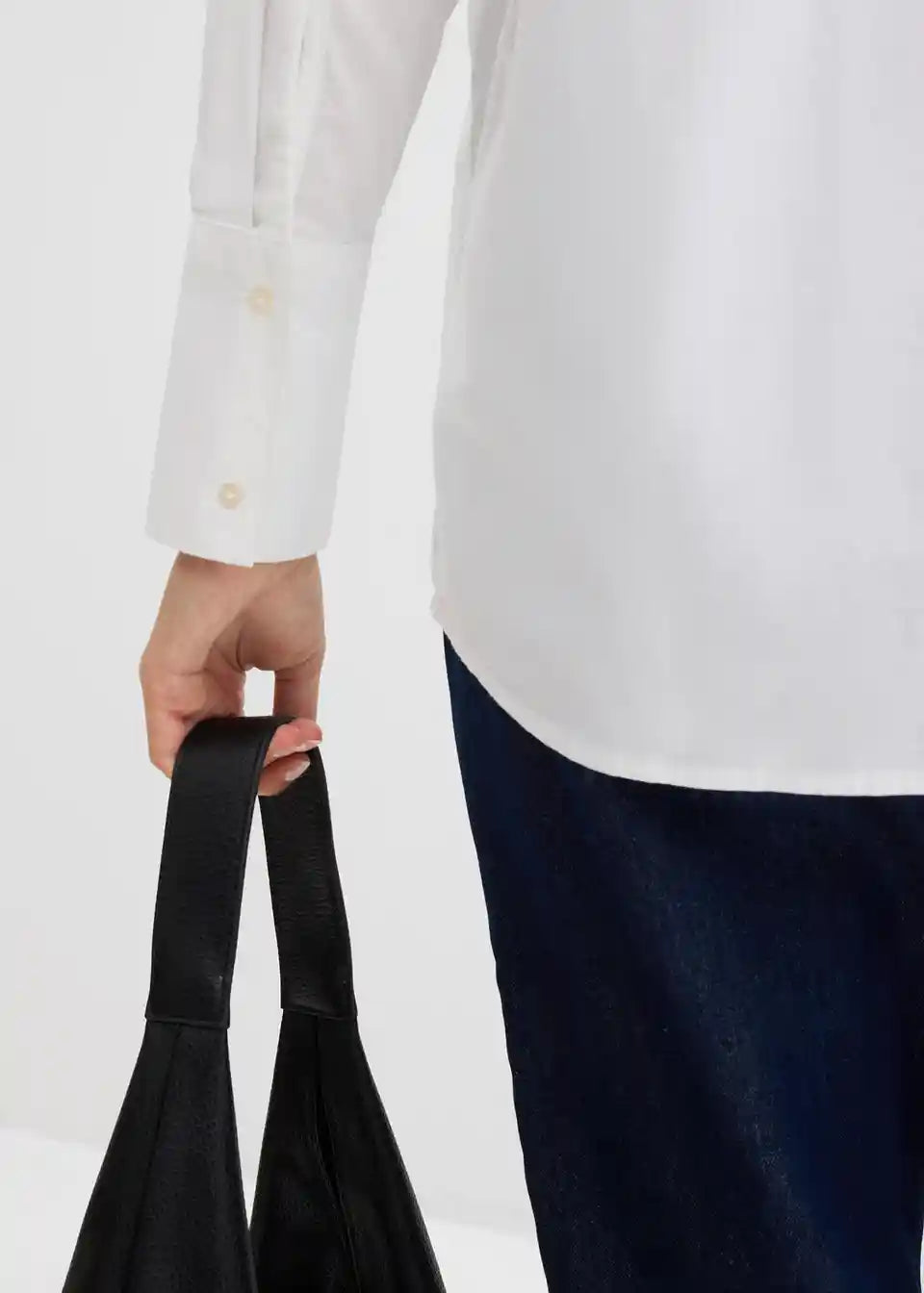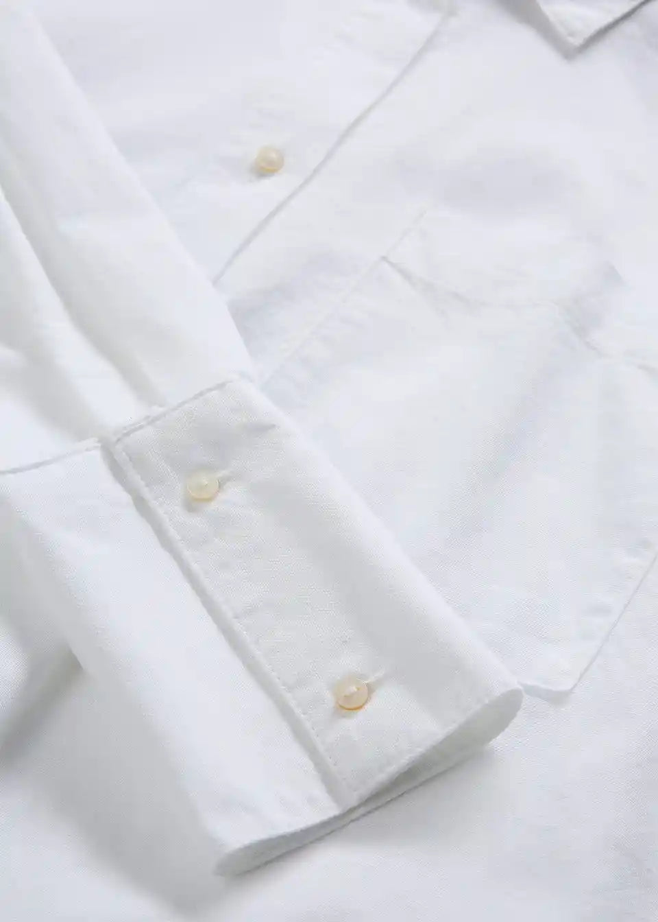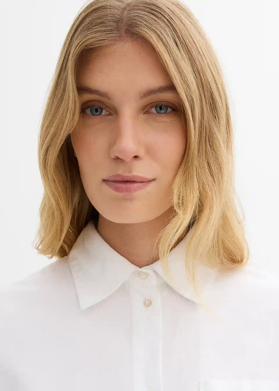 Ohlapna bluza iz kompaknega ekološkega bombažnega oksford materiala z ovratnikom, gumbi spredaj, odprtim naprsnim žepom in dolgimi rokavi z dolgimi manšetami z gumbi.