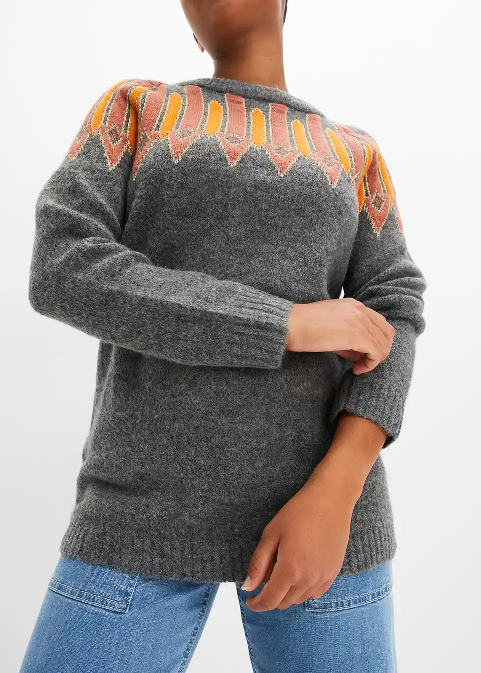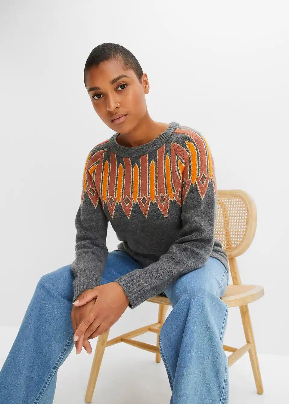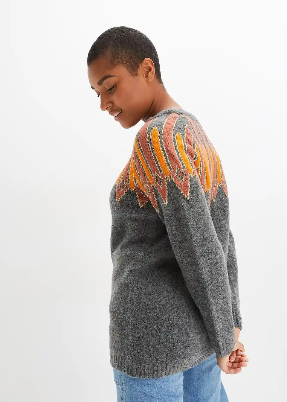 Moden pleten pulover z vzorcem in bleščečo prejo
