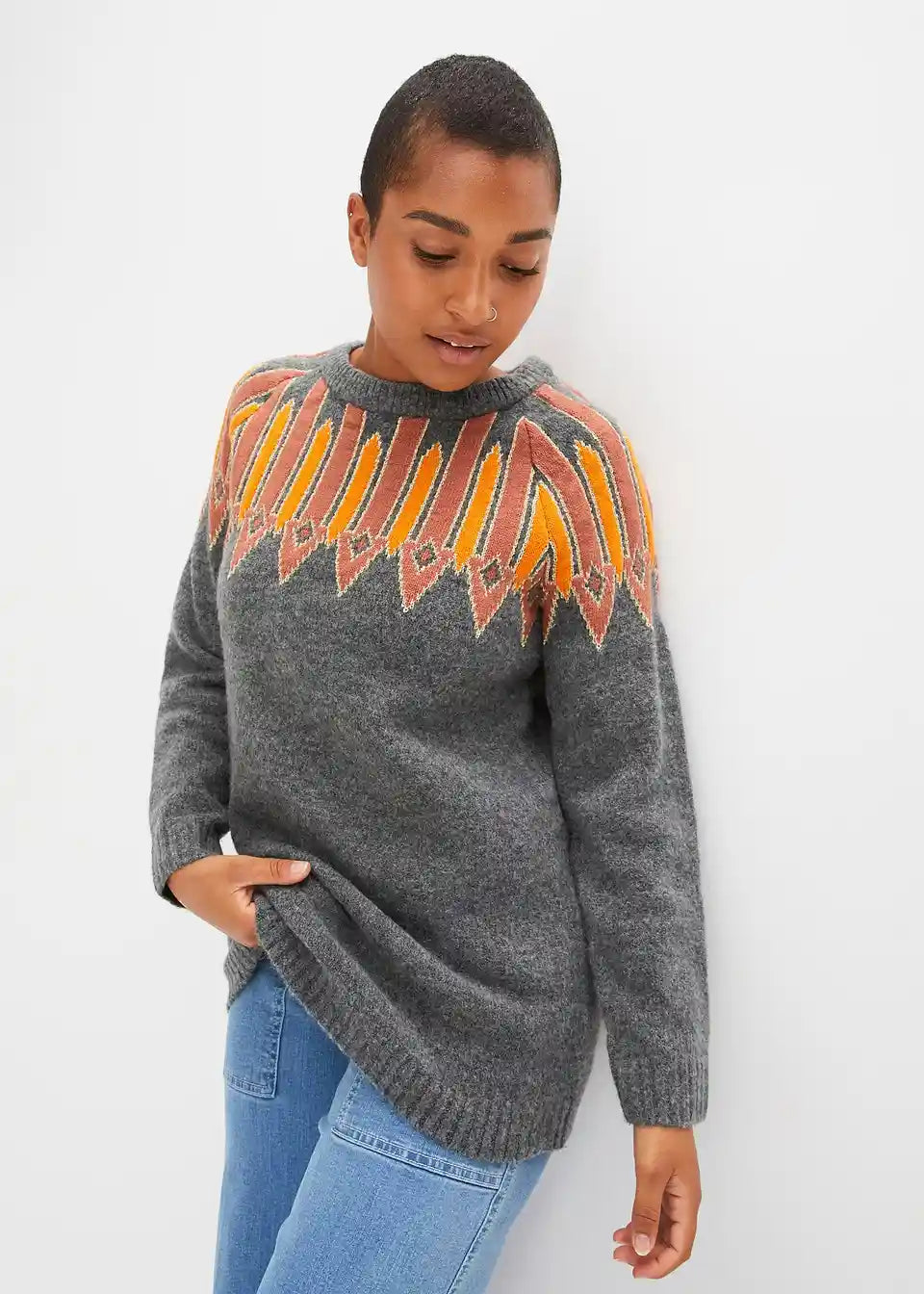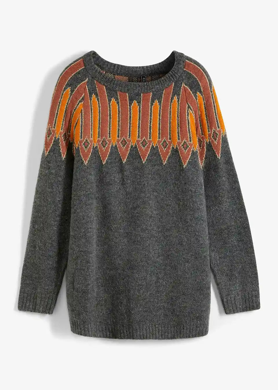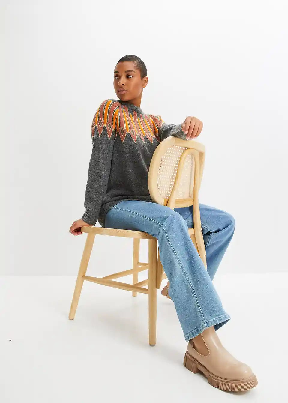 Moden pleten pulover z vzorcem in bleščečo prejo