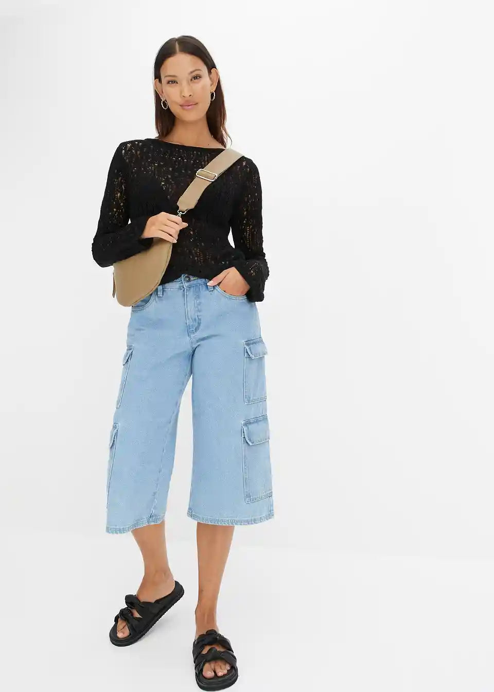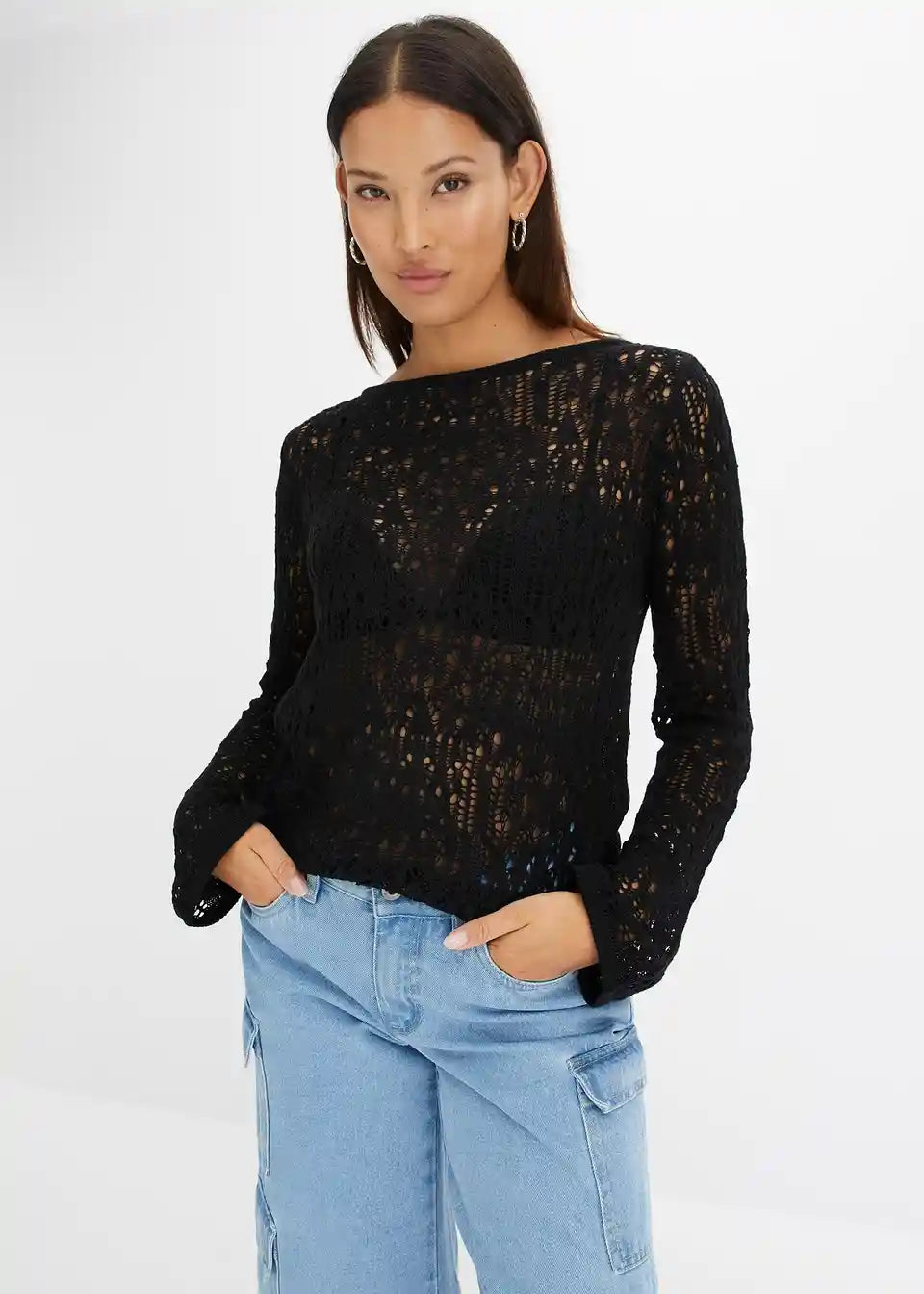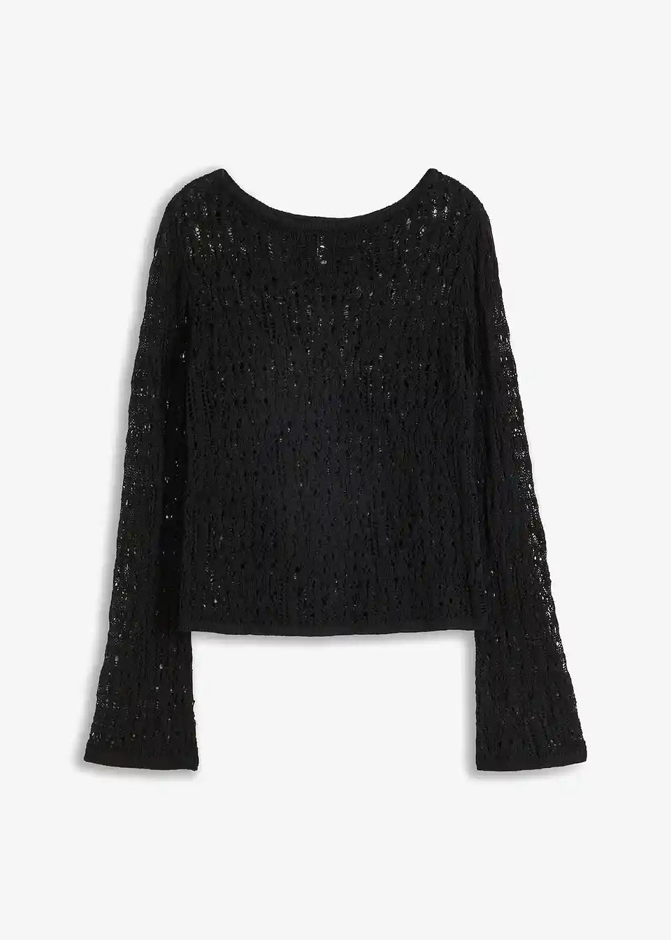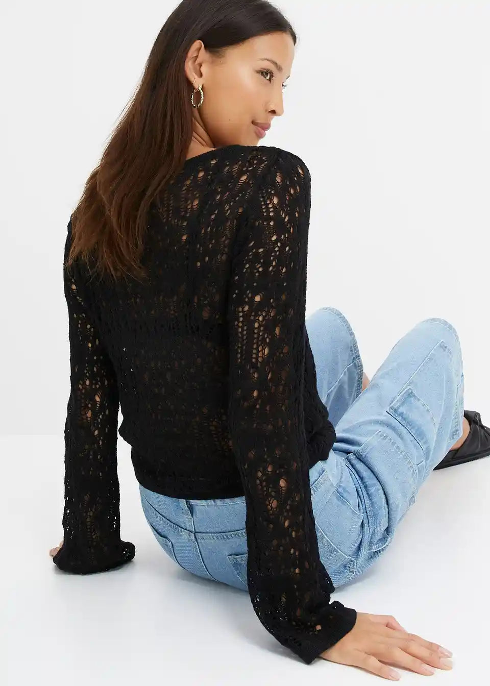 Pulover s čipkastim vzorcem in rahlo razširjenimi rokavi