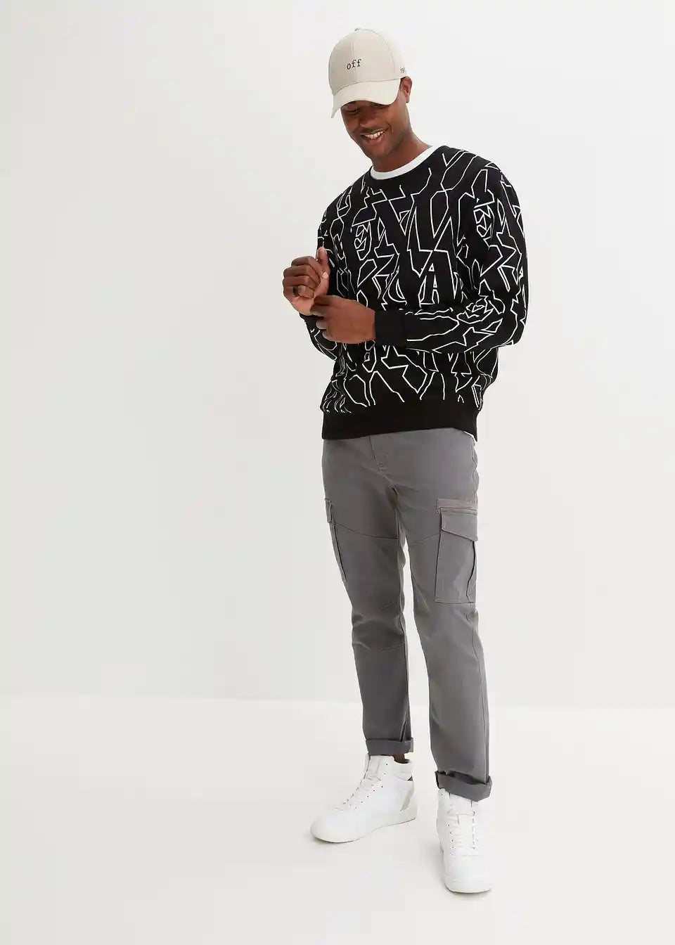 moderen pulover z Allover-potiskom, znotraj mehko brušen