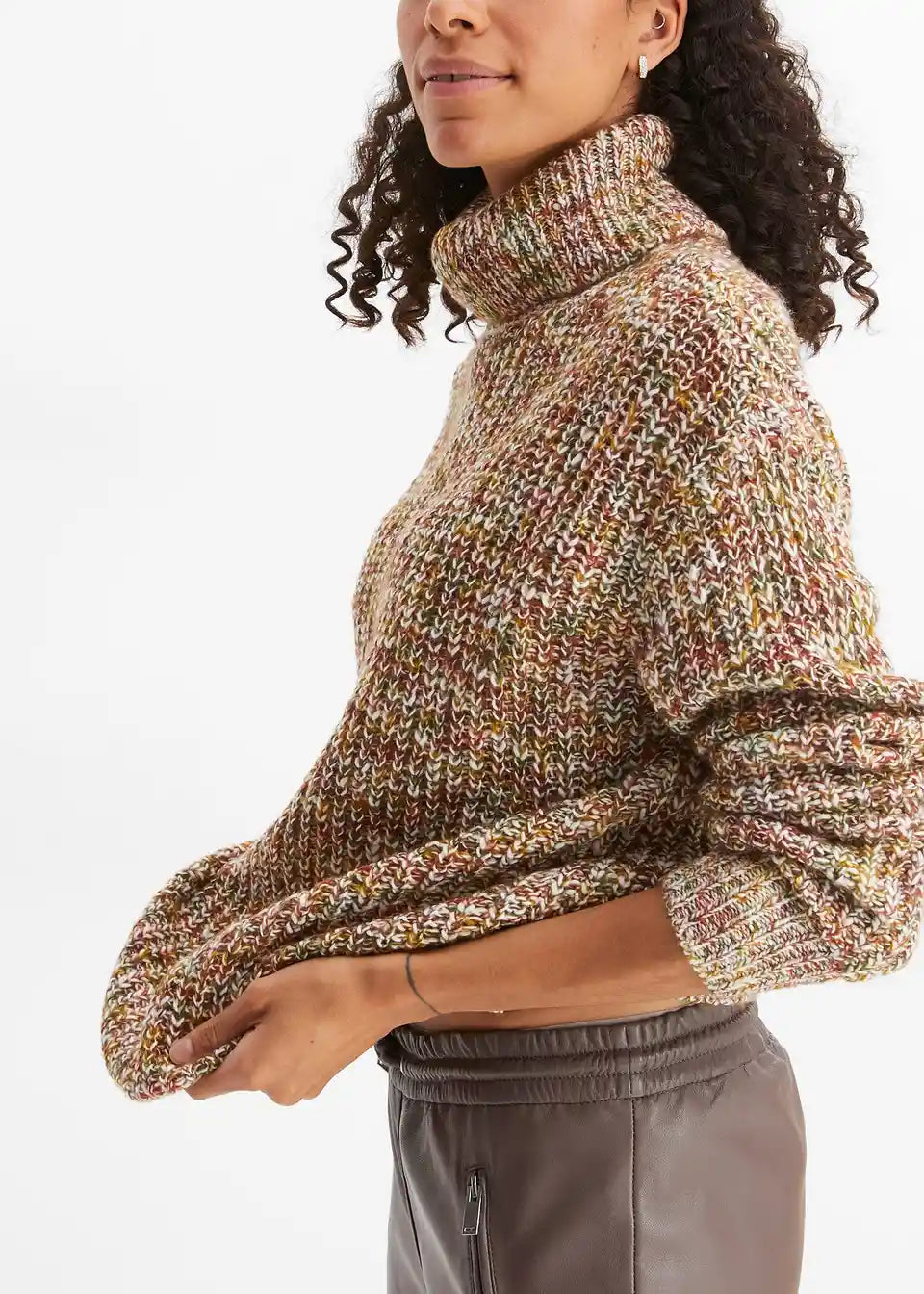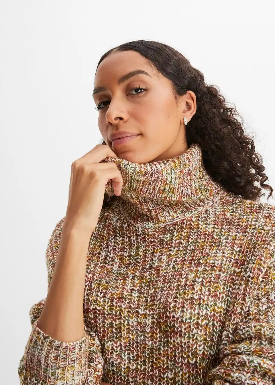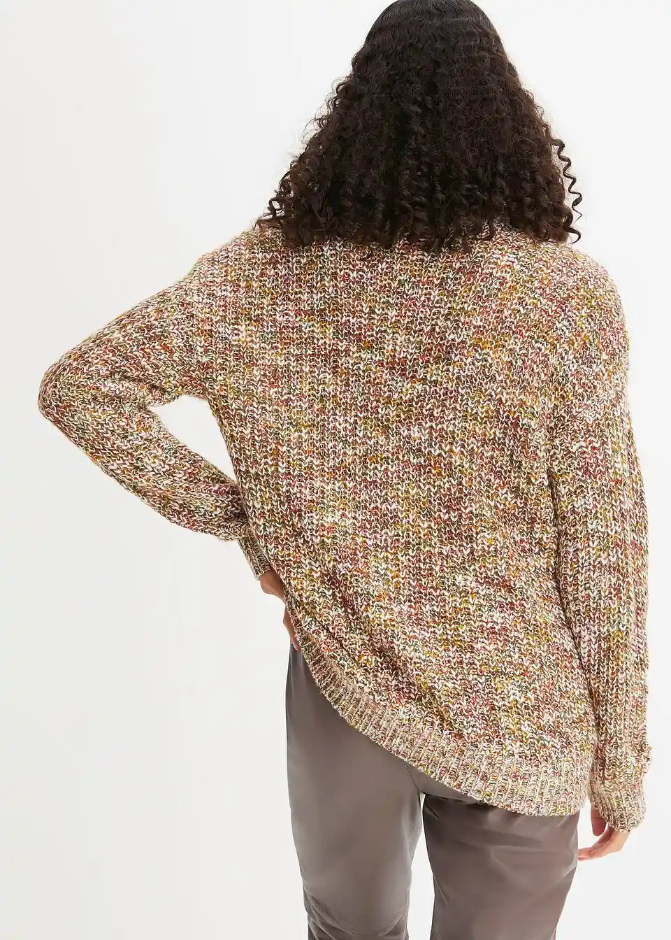 Zimski pulover z barvnim meliranim vzorcem in ovratnikom