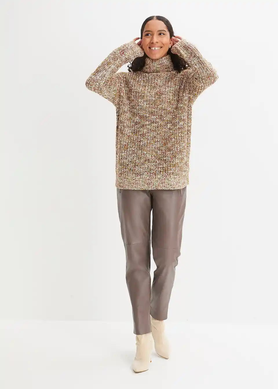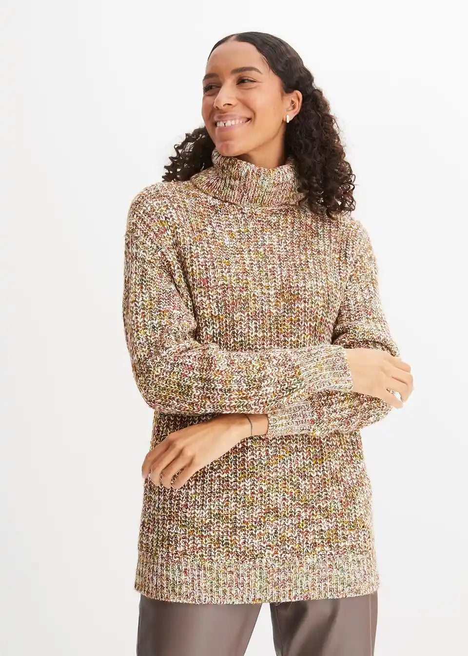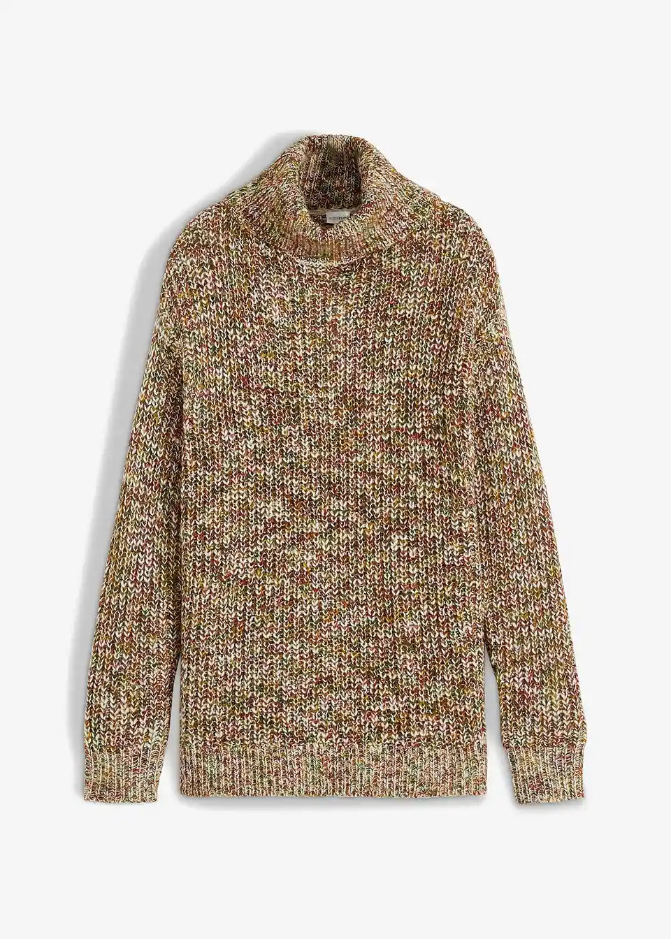 Zimski pulover z barvnim meliranim vzorcem in ovratnikom