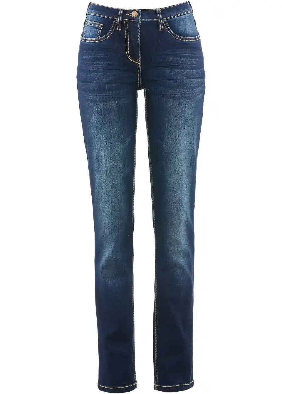 Ravne kavbojke s srednje visokim pasom in stretch materialom