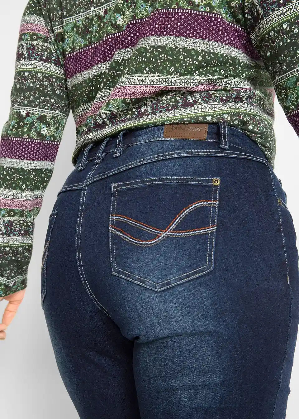 Ravno krojene kavbojke znamke John Baner prepričajo z udobno širino stegen in rahlim pranjem na sprednji in zadnji strani. Dolge kavbojke v Five-Pocket stilu so zaradi majhnega deleža stretch materiala izjemno udobne in se zelo dobro prilegajo. Multi-Stretch kavbojke z "udobno širino stegen" STRAIGHT se odlično podajo k ležernim majicam, puloverjem in bluzam.