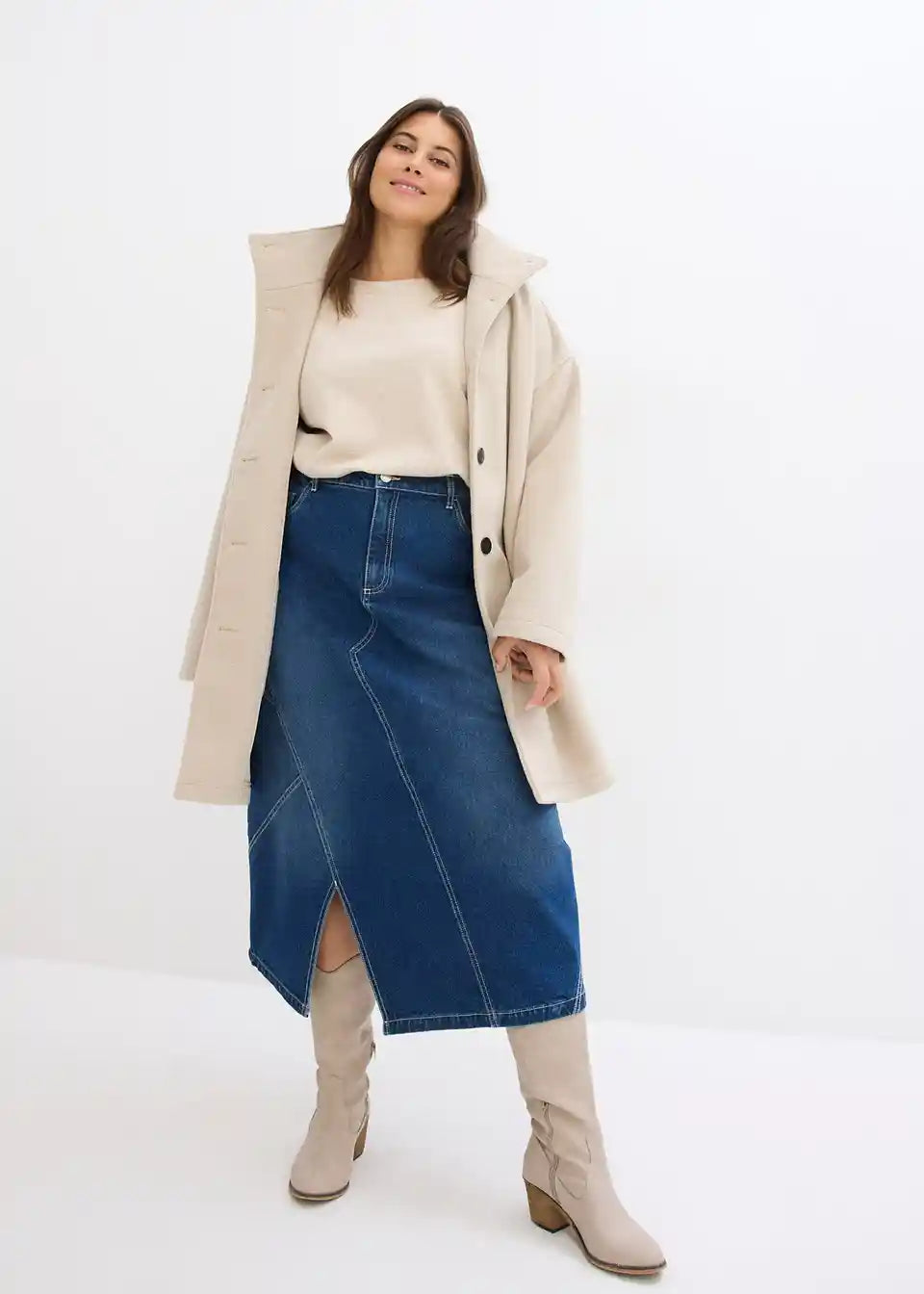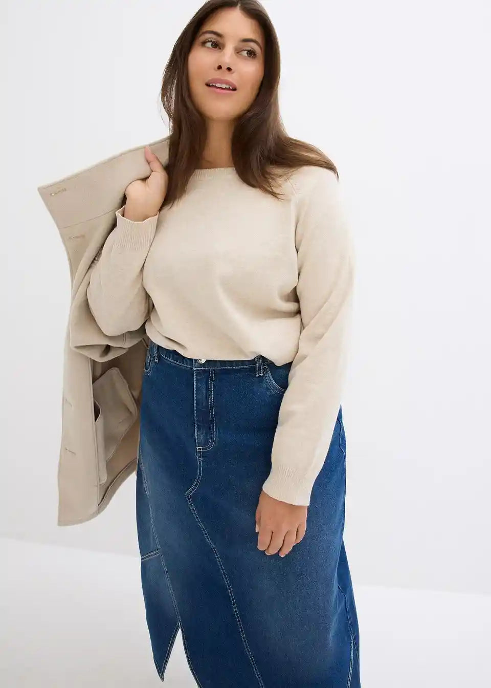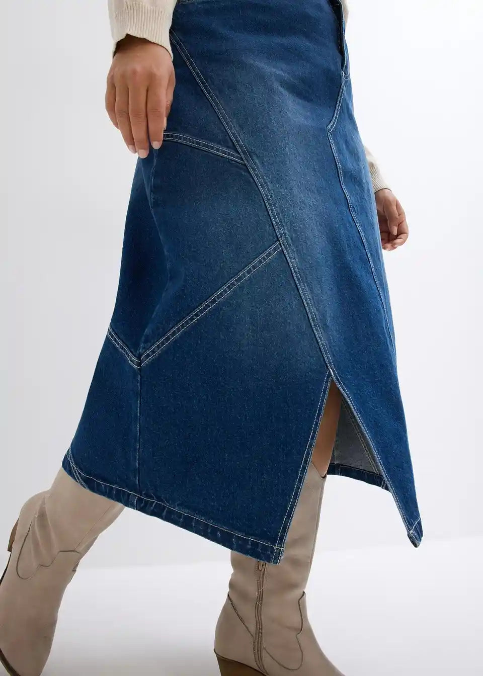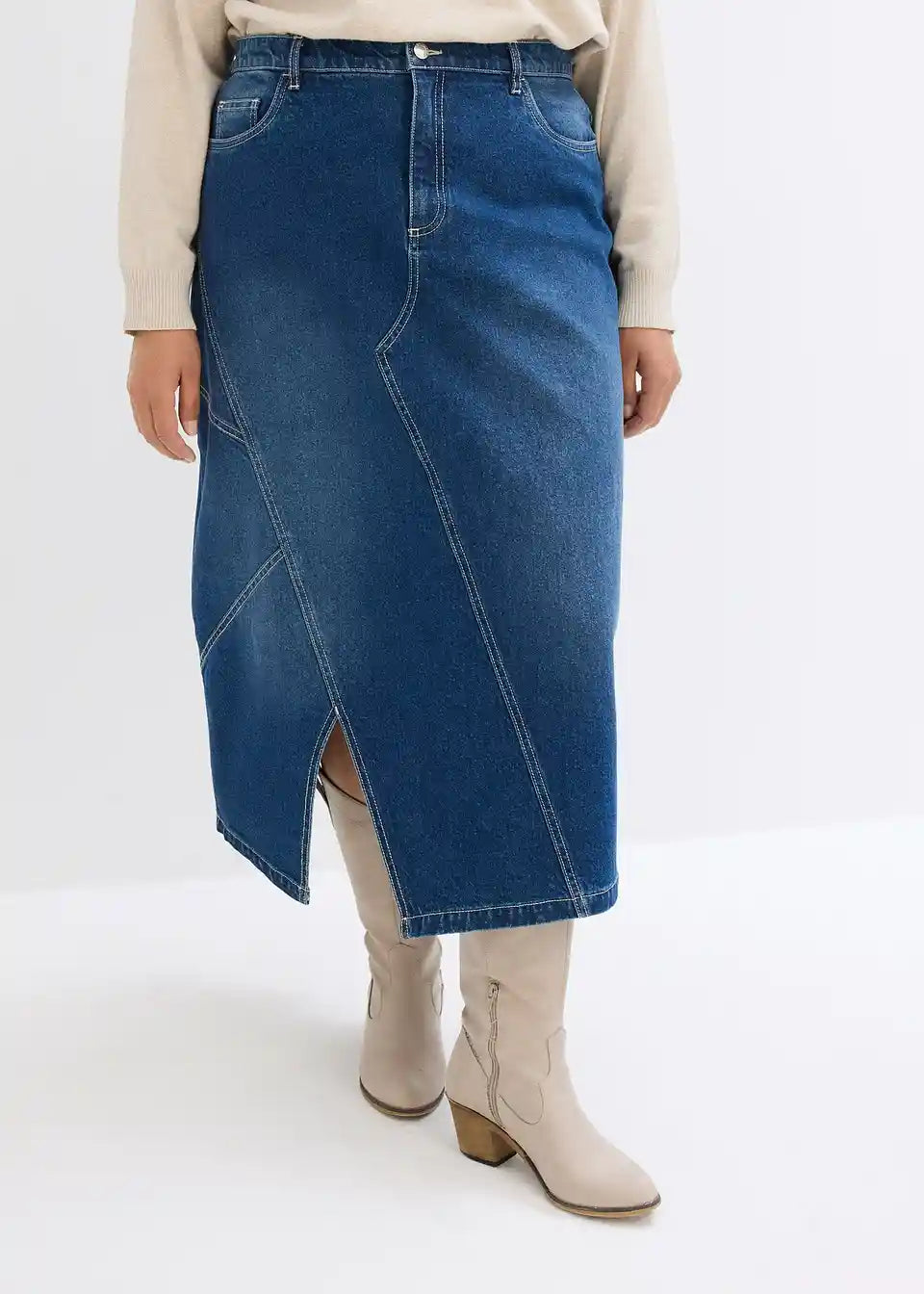 Stretch krilo iz jeansa v asimetričnem kroju