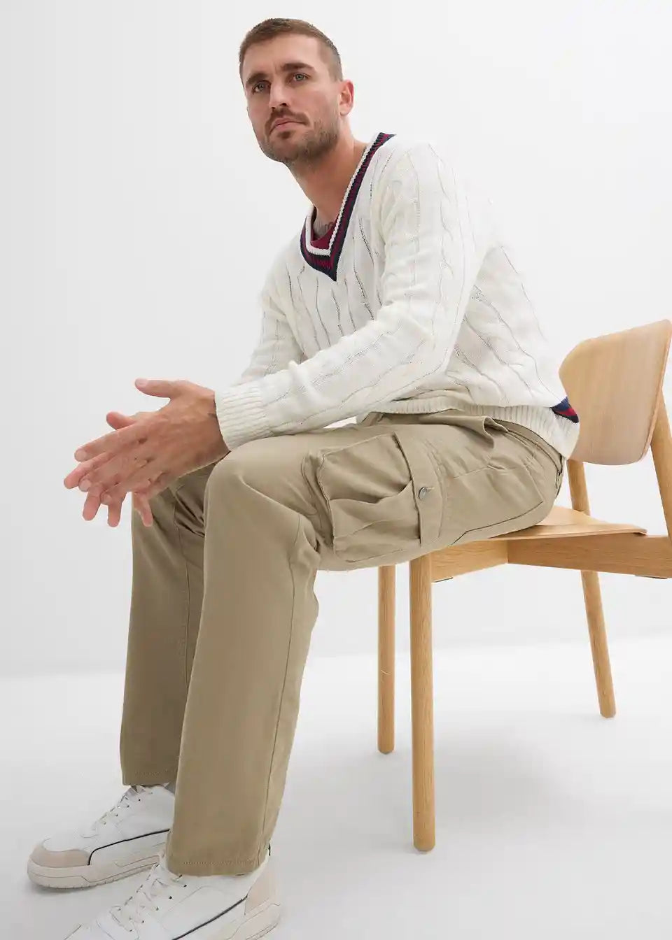 Klasične hlače s cargo žepi iz čistega bombaža v ravnem kroju