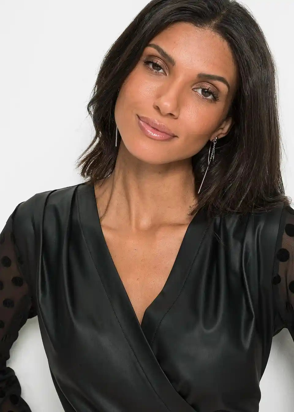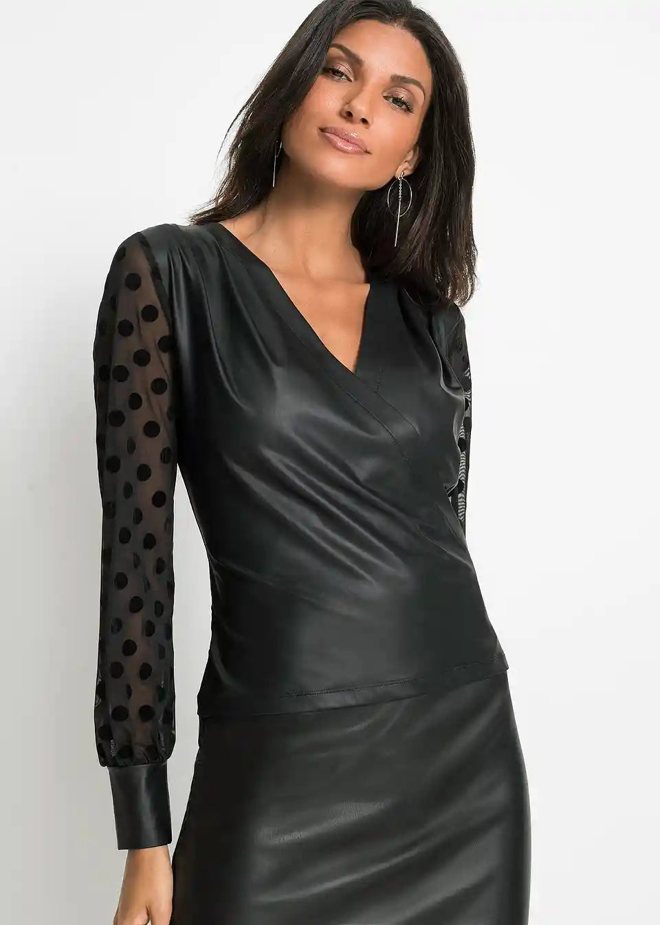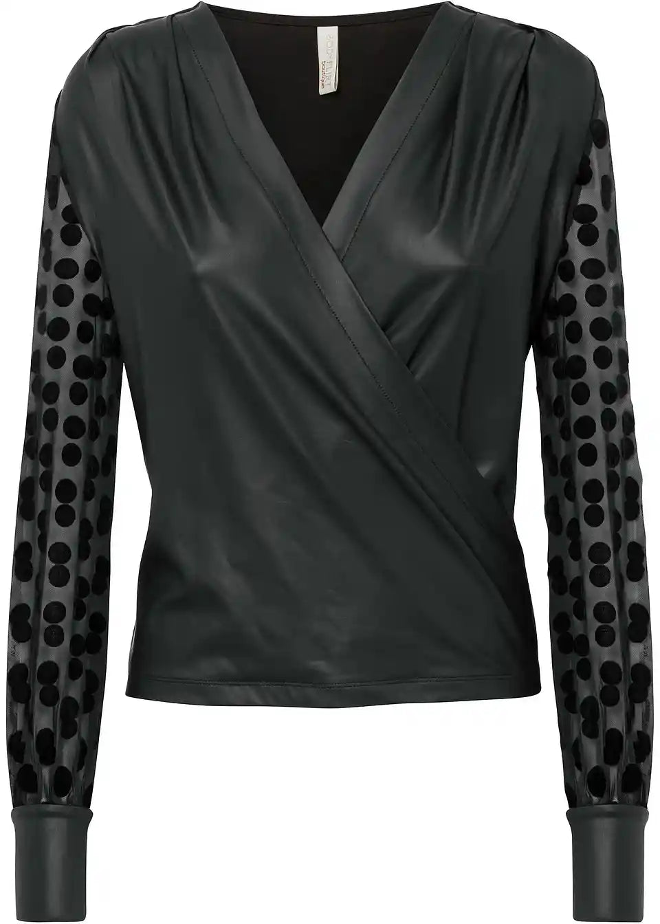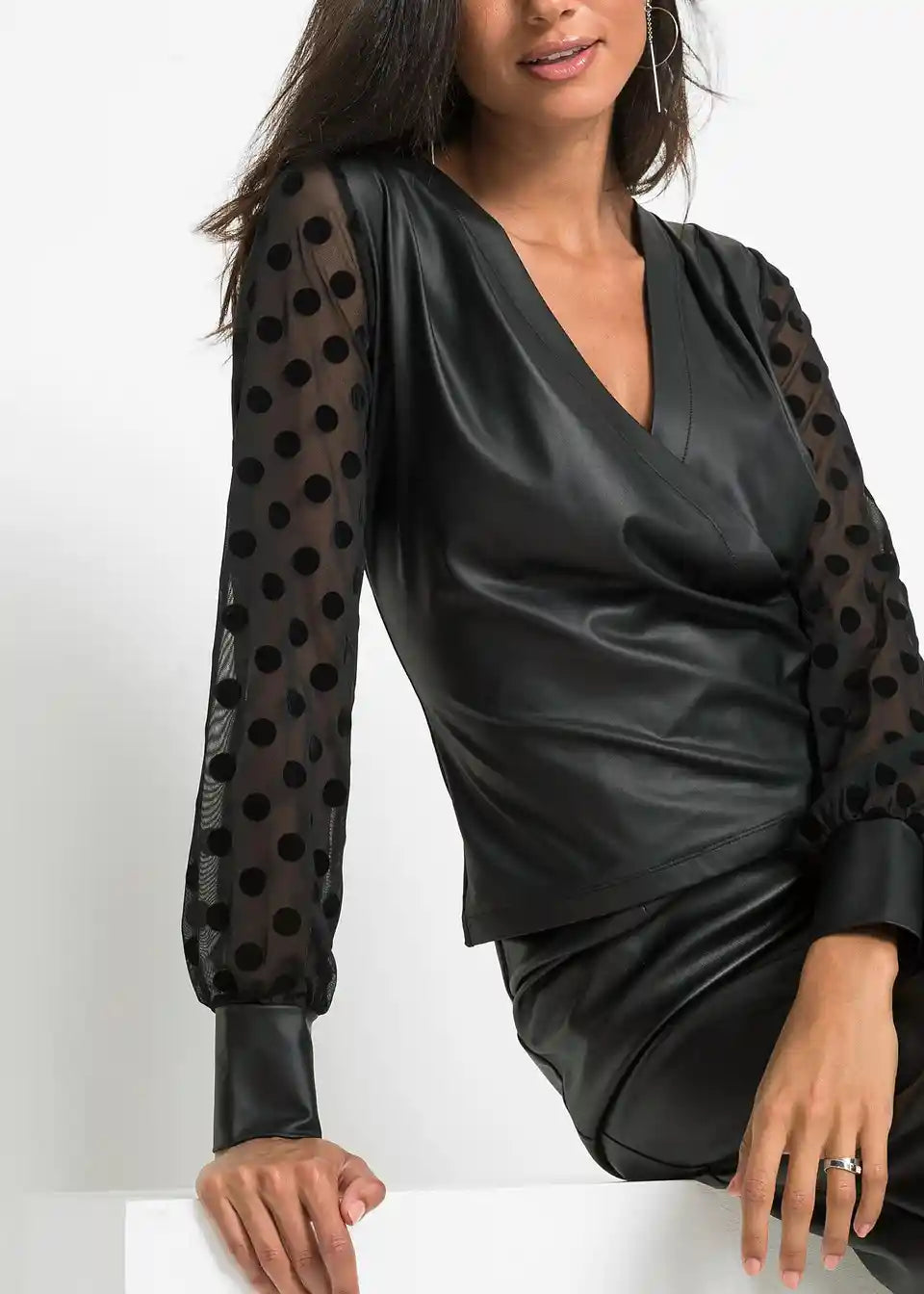 Seksi srajca z mrežastimi rokavi in globokim izrezom