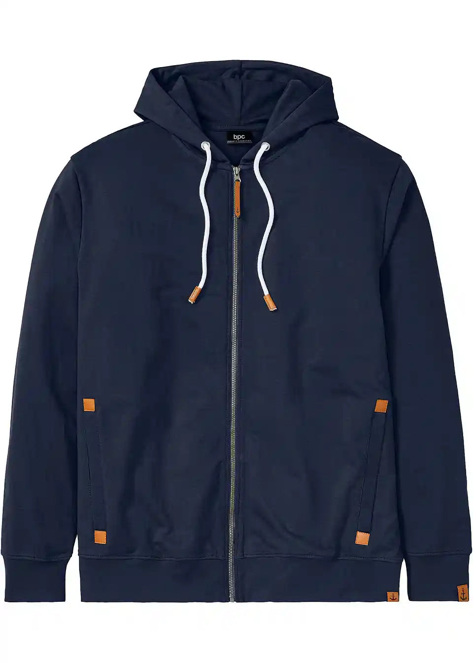 Lepa jopa iz trikoja s kapuco, žepi in detajlom iz umetnega usnja. Strojno pranje