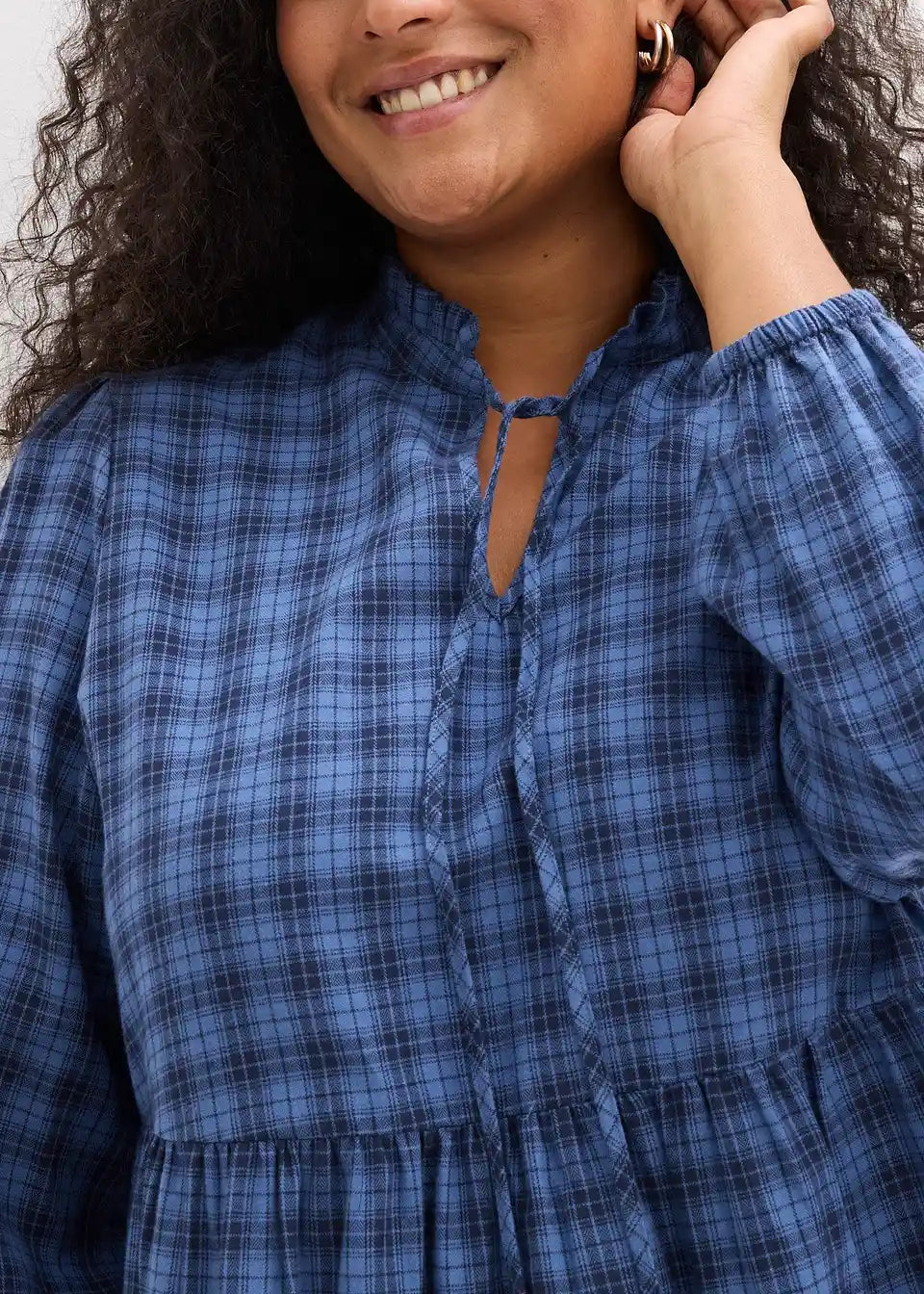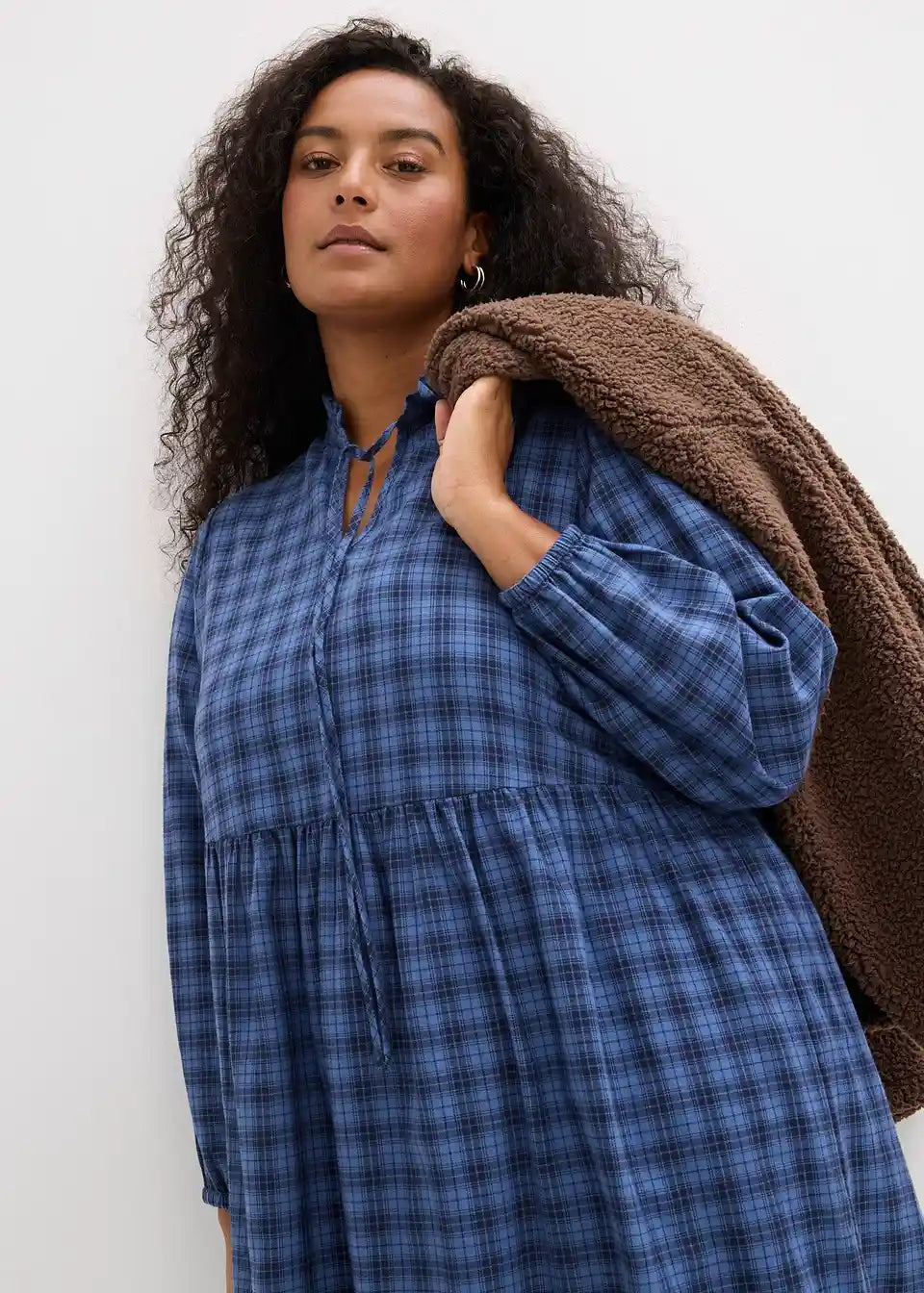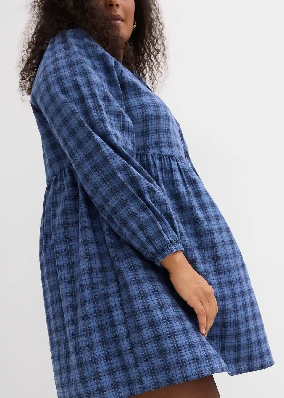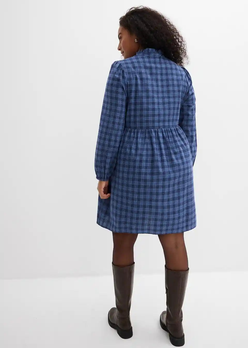 Široko razširjena, visoko zaprta obleka z nabranim ovratnikom iz čistega bombaža
