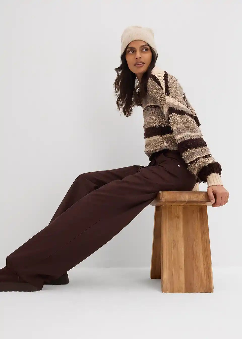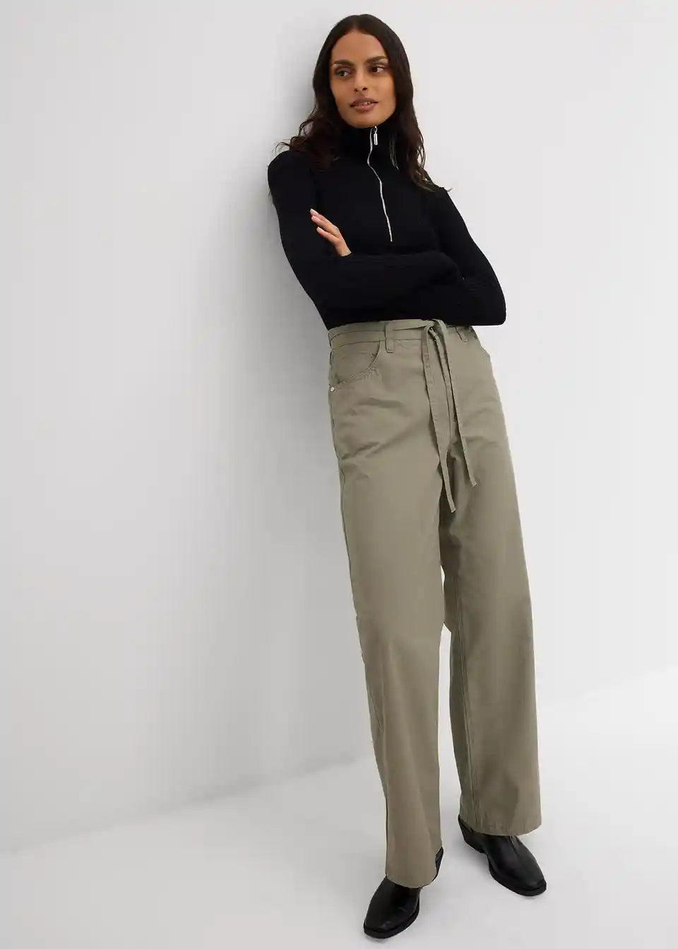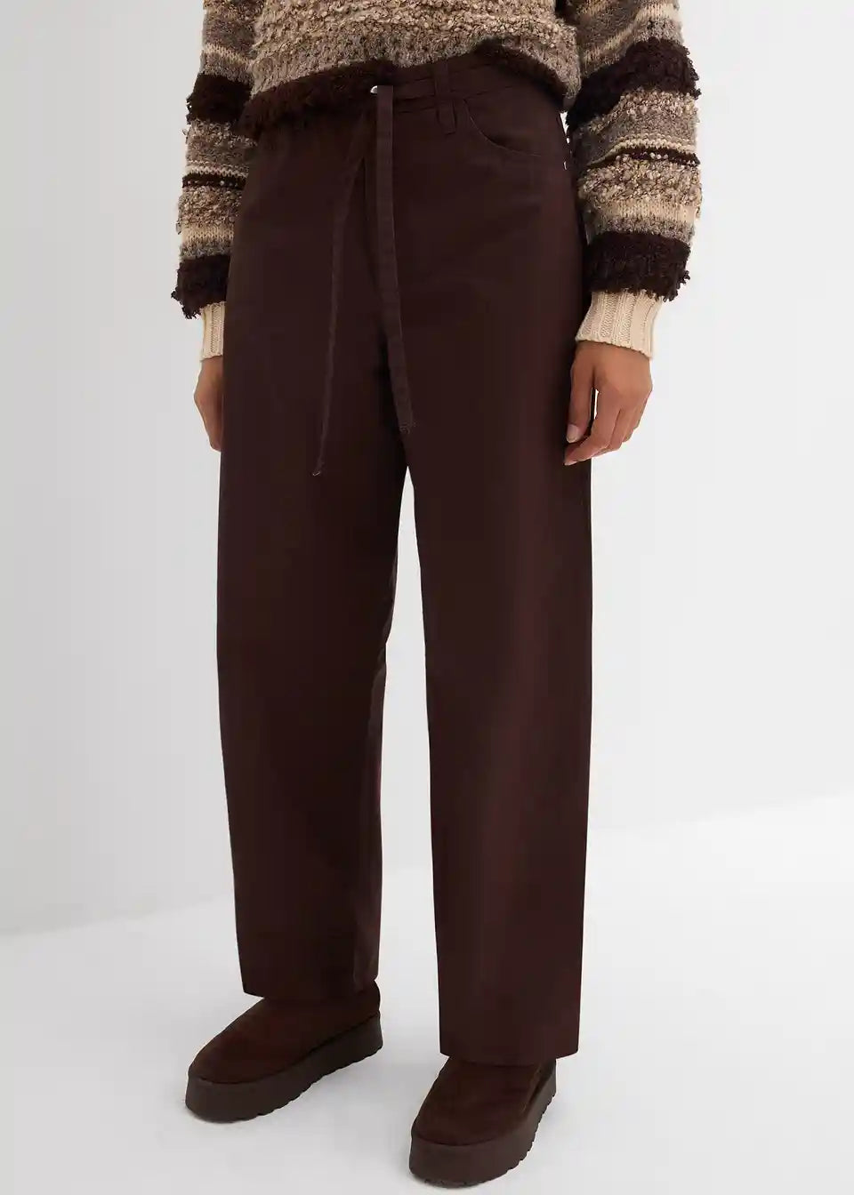 Udobne hlače iz kepra s trakom za zavezovanje iz čistega bombaža