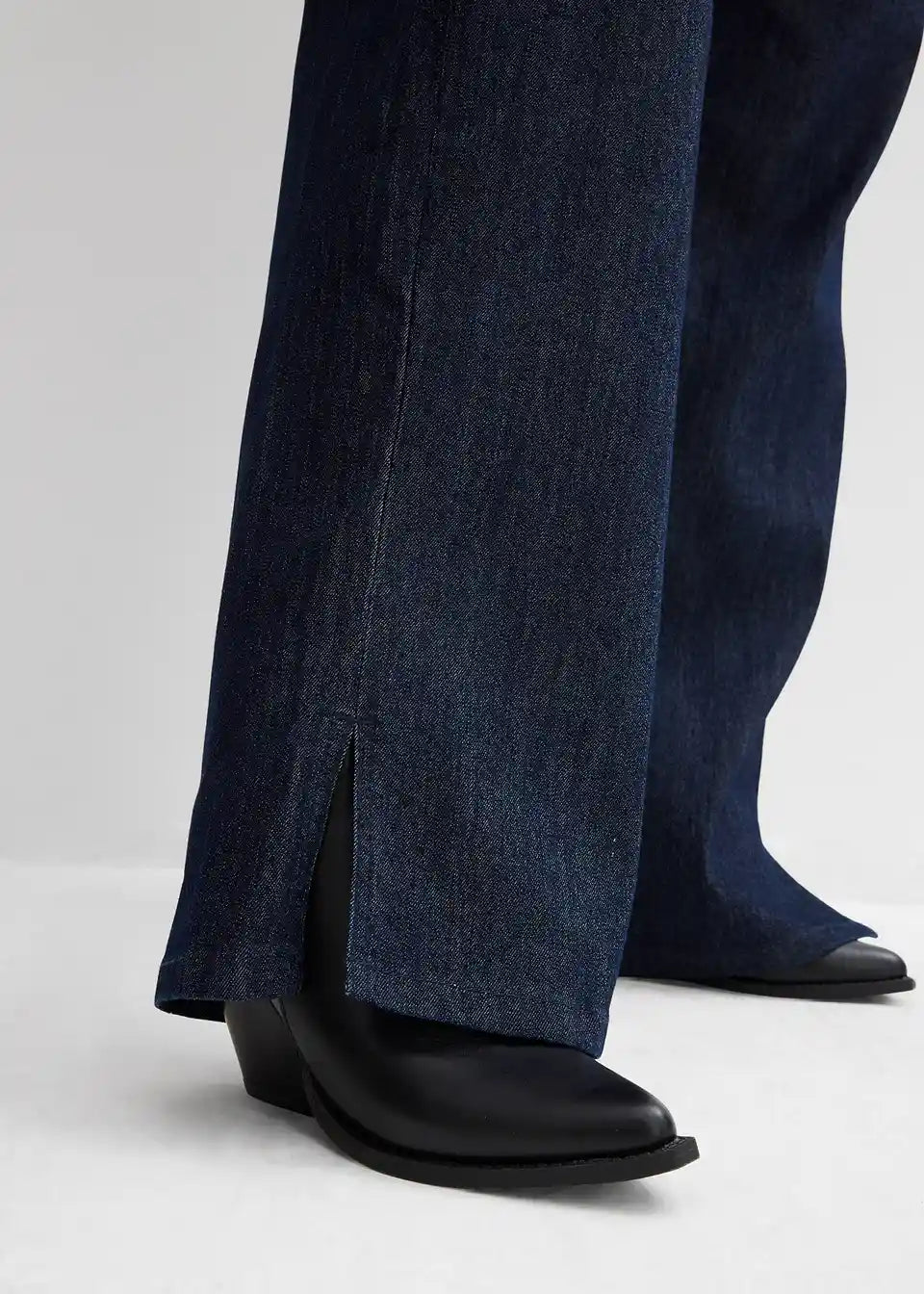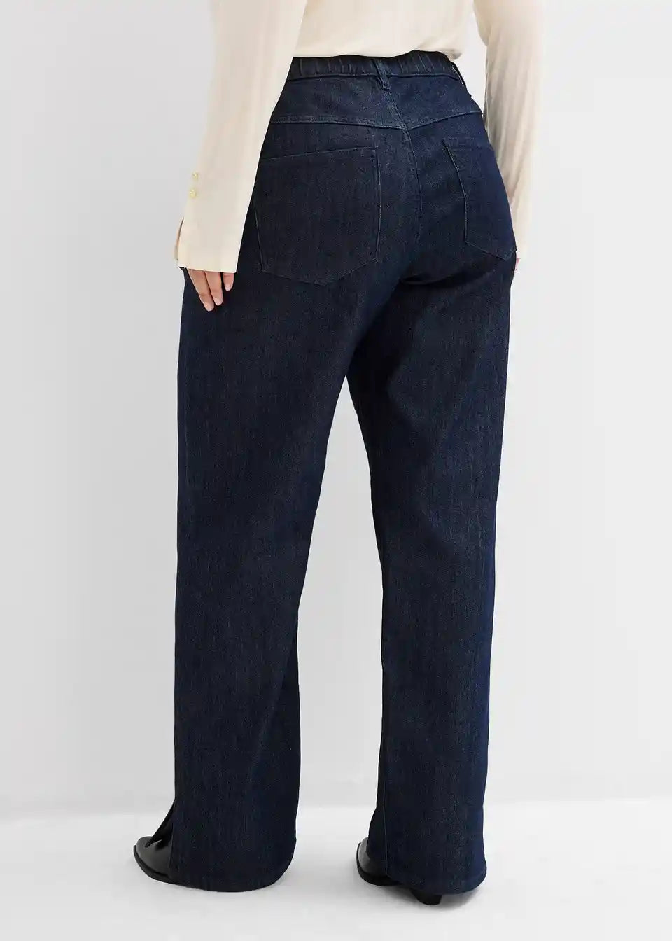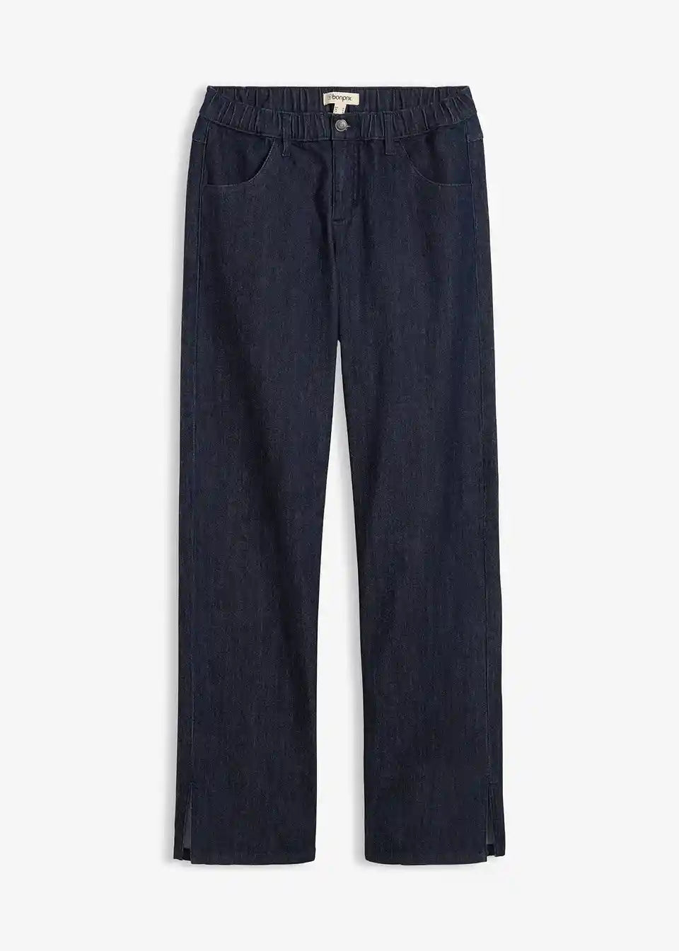 Modne kavbojke s stranskimi razporki in udobnim pasom