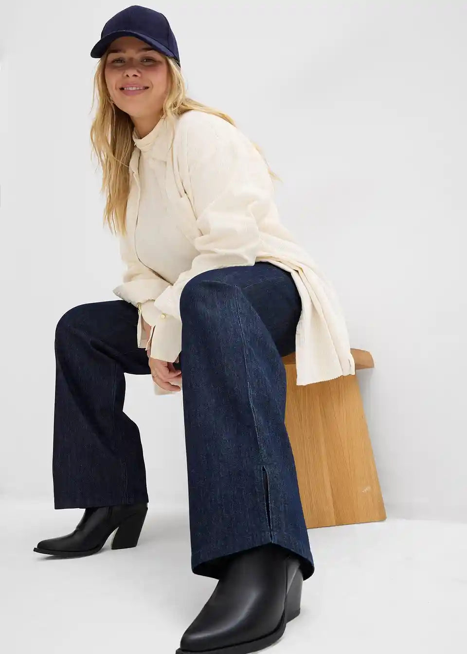 Kavbojke s širokimi hlačnicami in visokim udobnim pasom