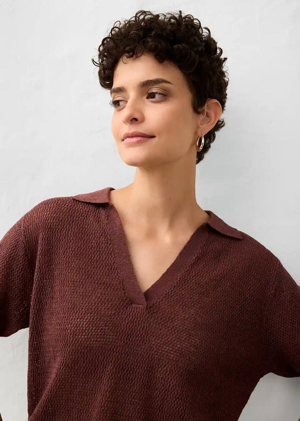 Ajour-pleteni polo z dodatkom lana