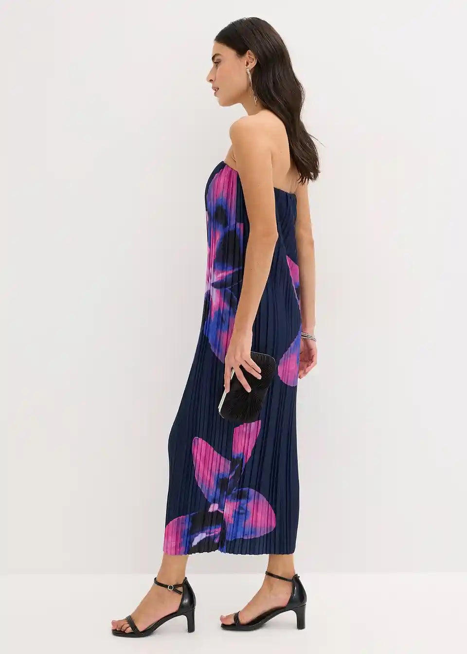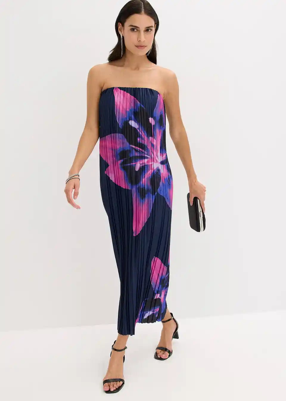 Moderna in ženstvena: Bandeau obleka iz finega satena s plisejem