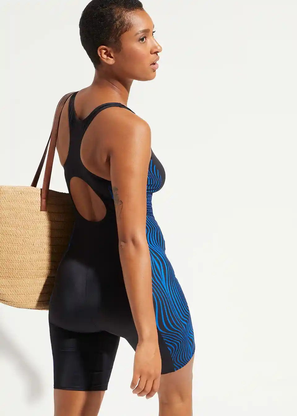 Izrez zadaj:z visoko zaprtim športno krojenim hrbtnim delom