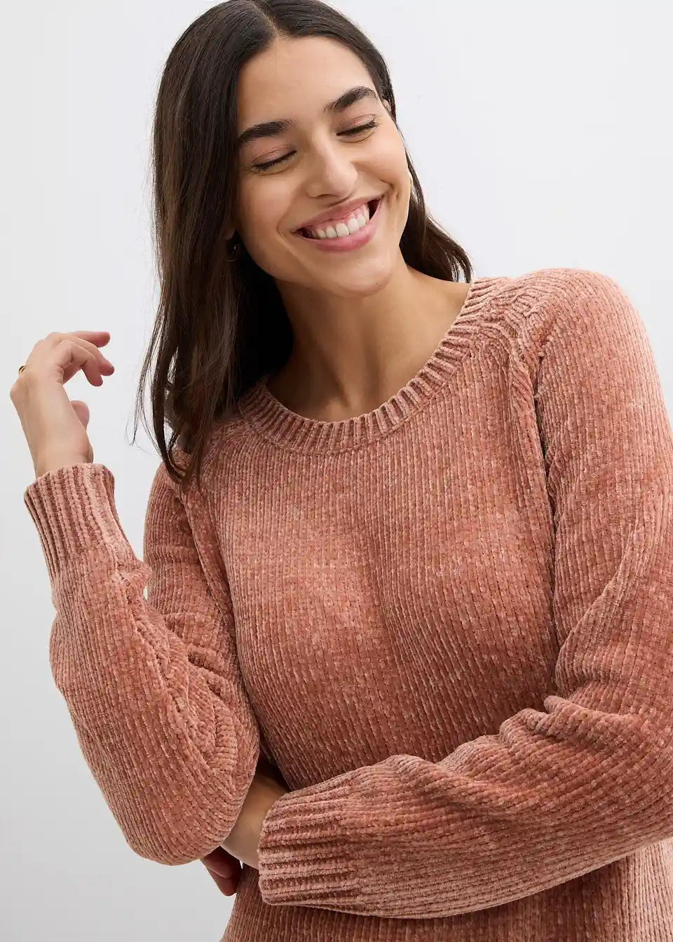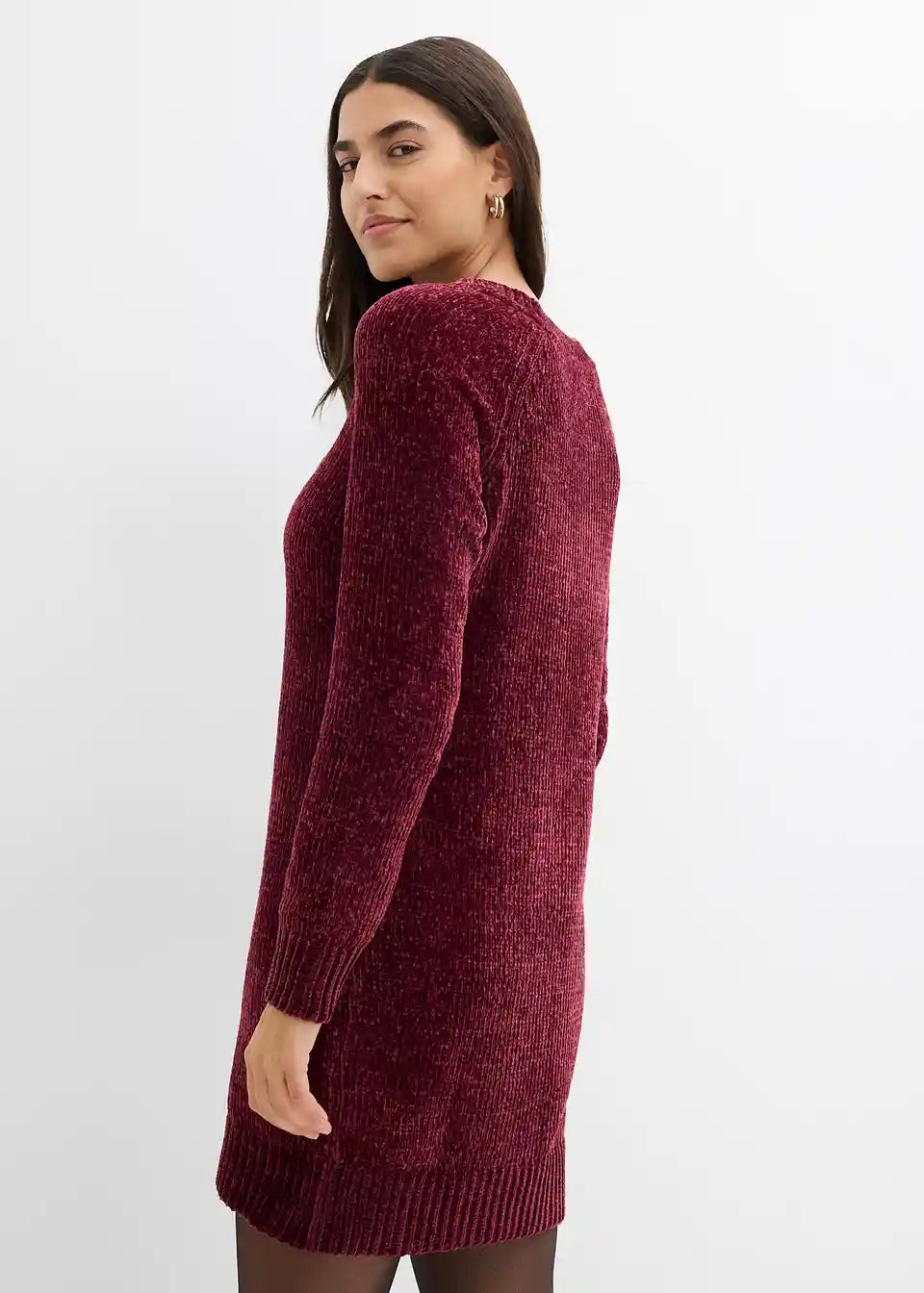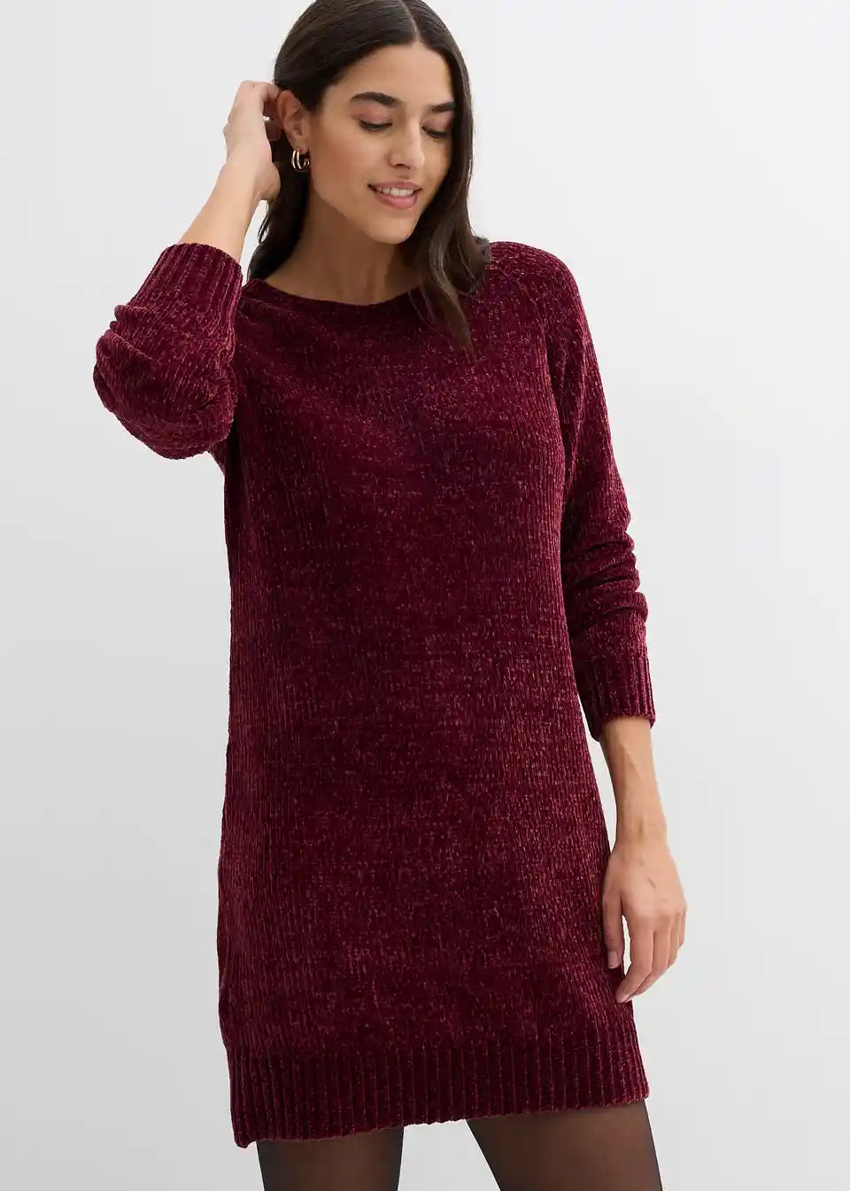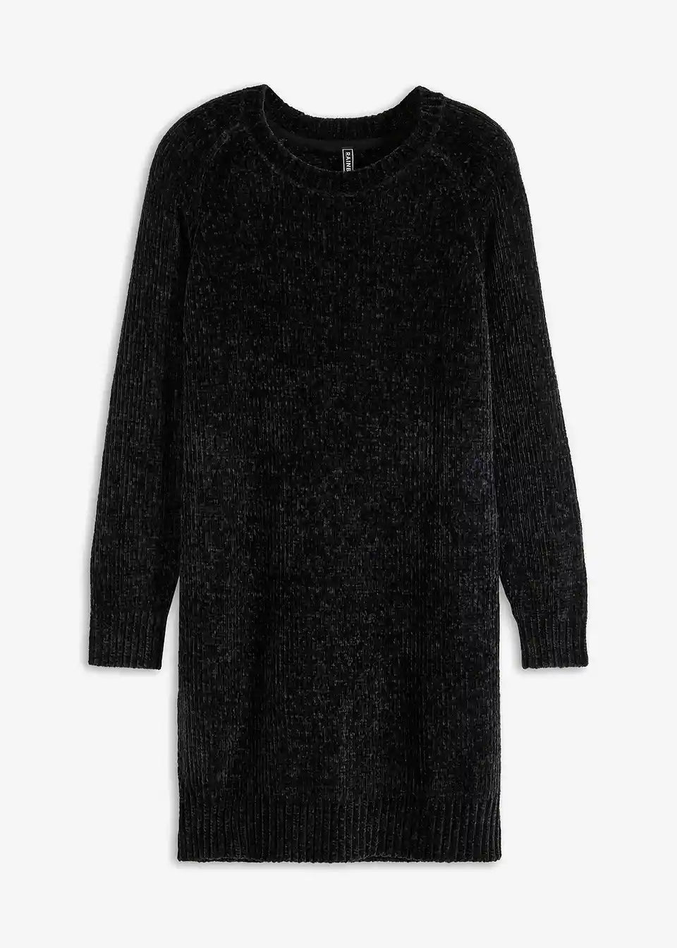 Obleka navduši s svojo mehko toplo pletenino in patentnimi obrobami iz rebrastega materiala na robovih in na ovratniku.