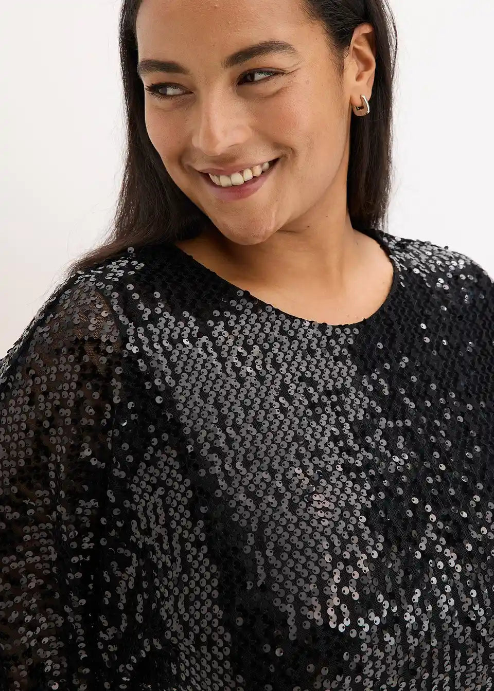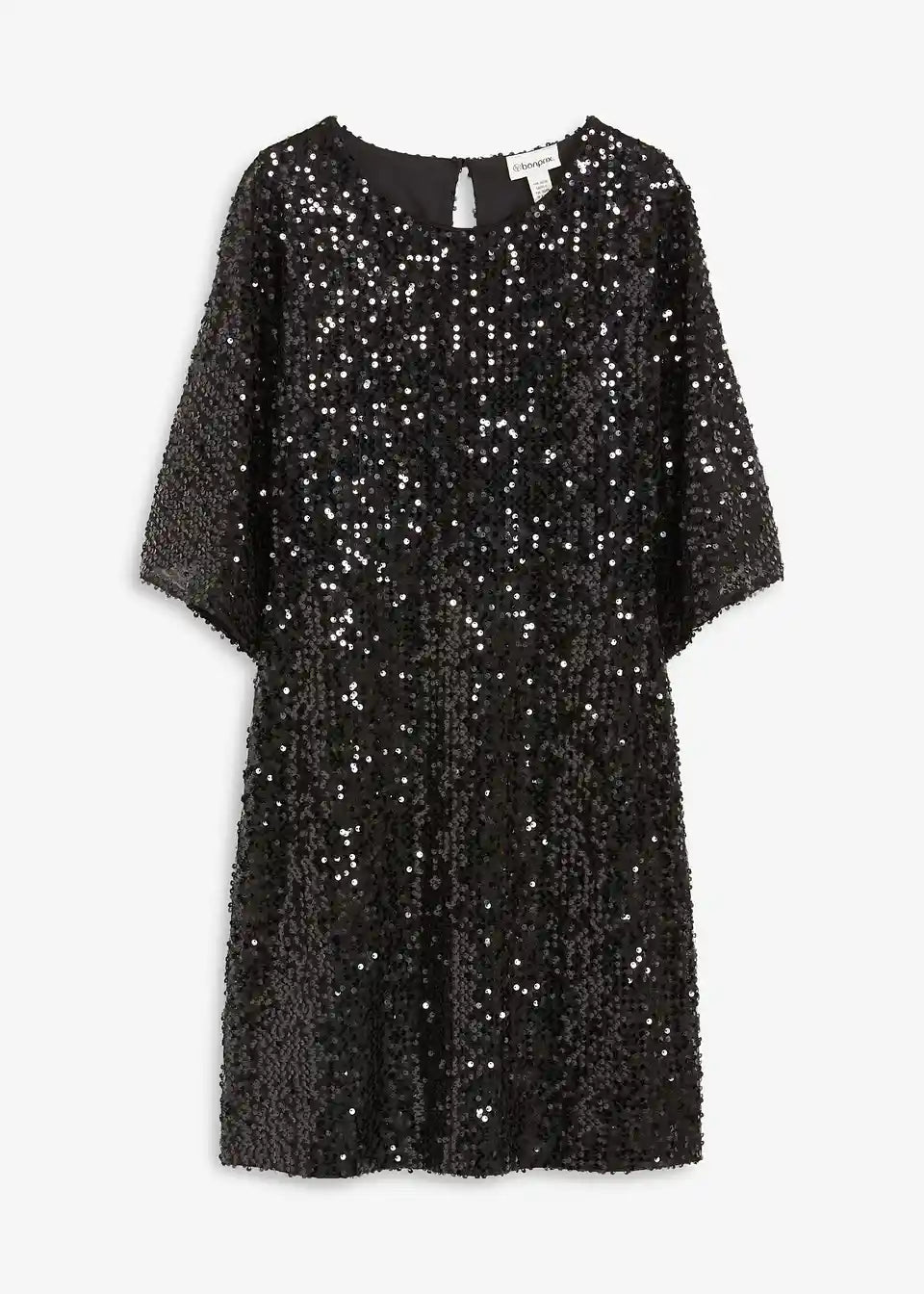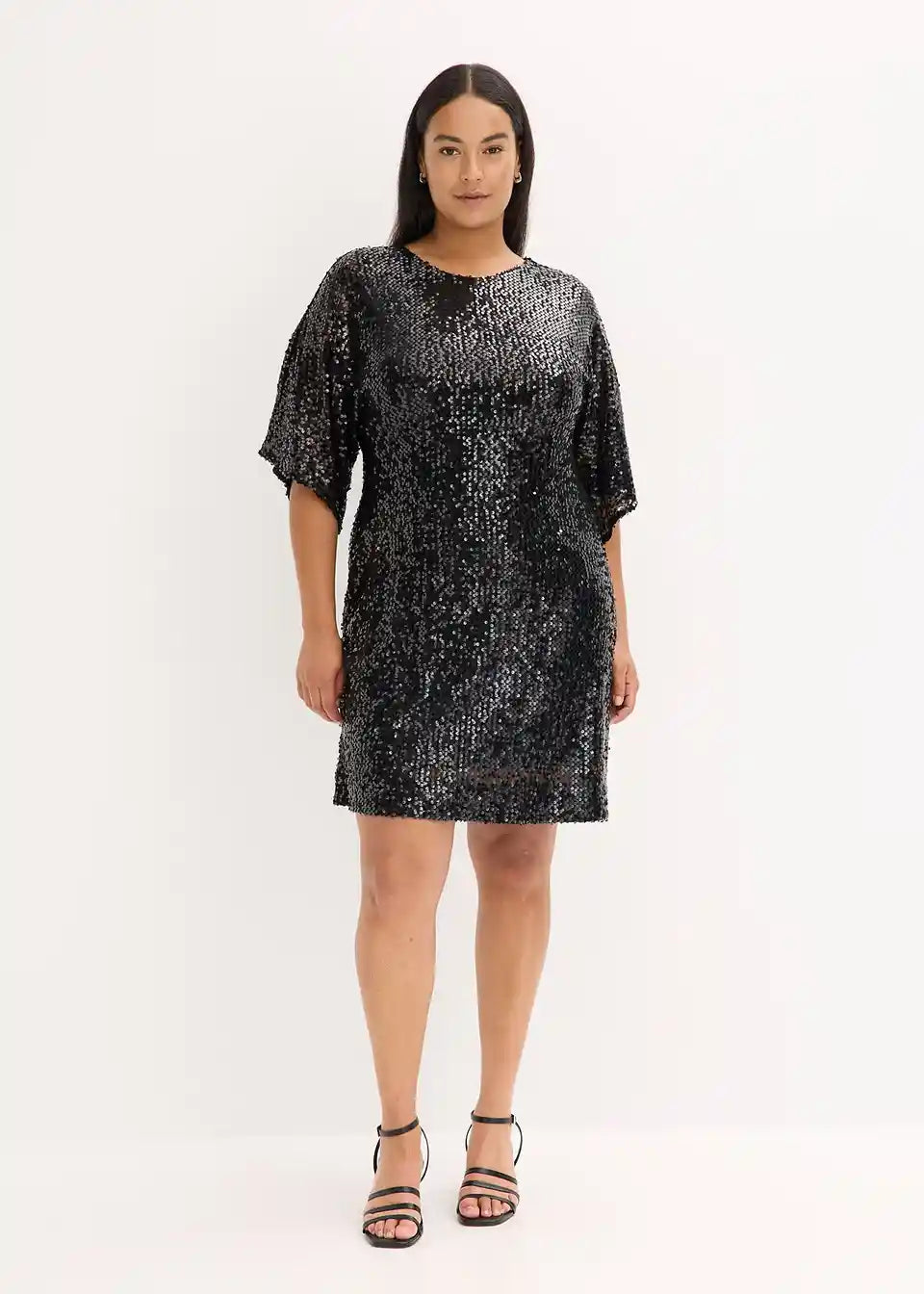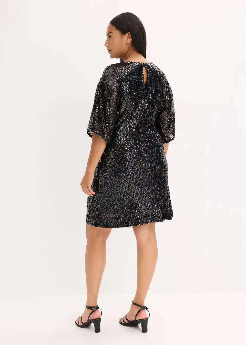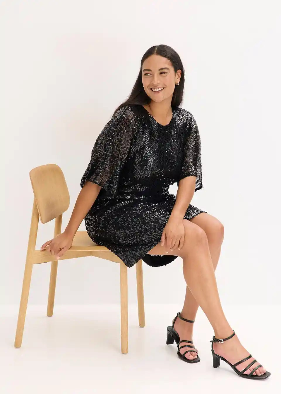 Moderna in ženstvena ohlapna mini obleka z bleščicami in kimonskimi rokavi
