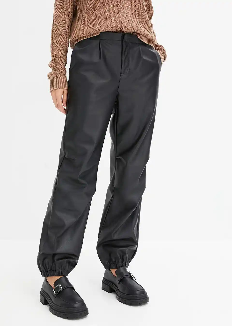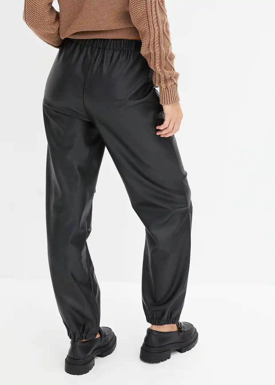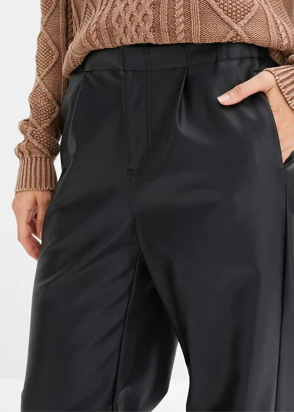 Ohlapno padajoče hlače iz umetnega usnja