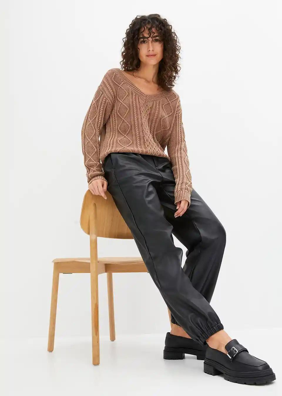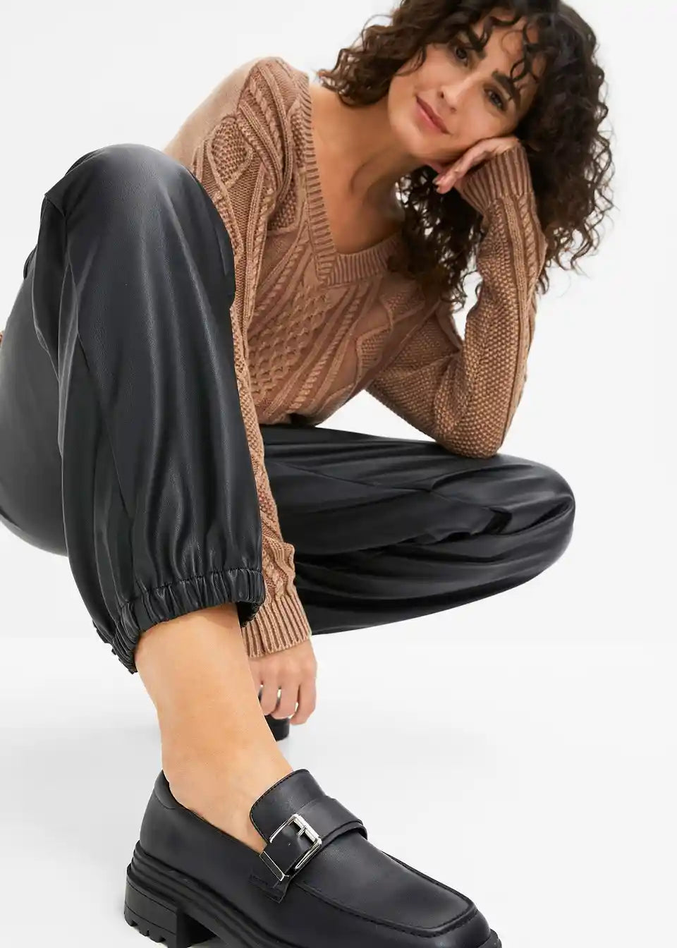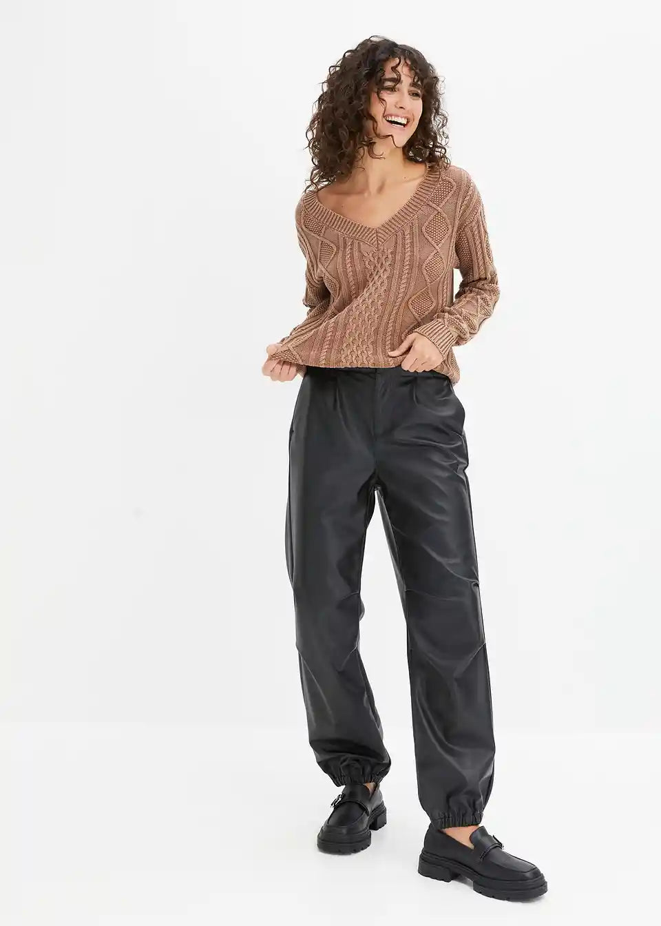Ohlapno padajoče hlače iz umetnega usnja