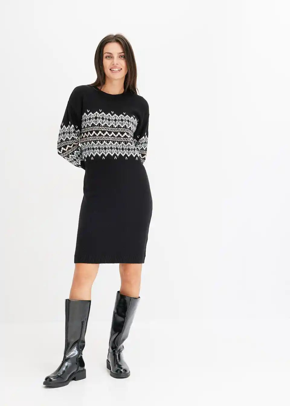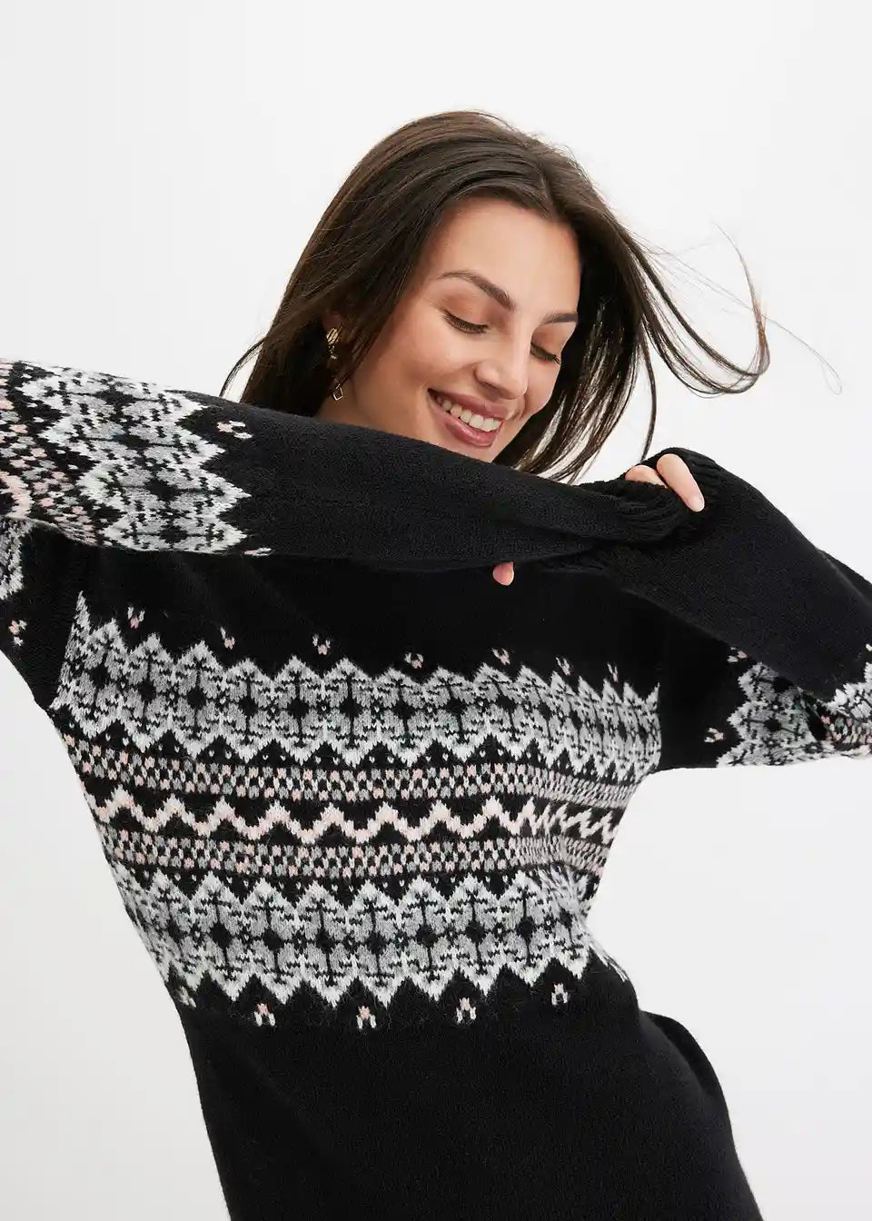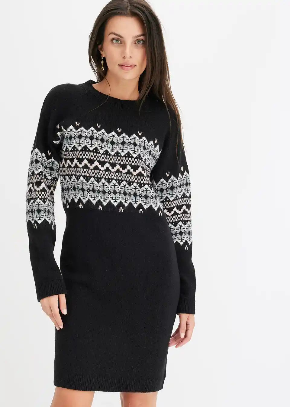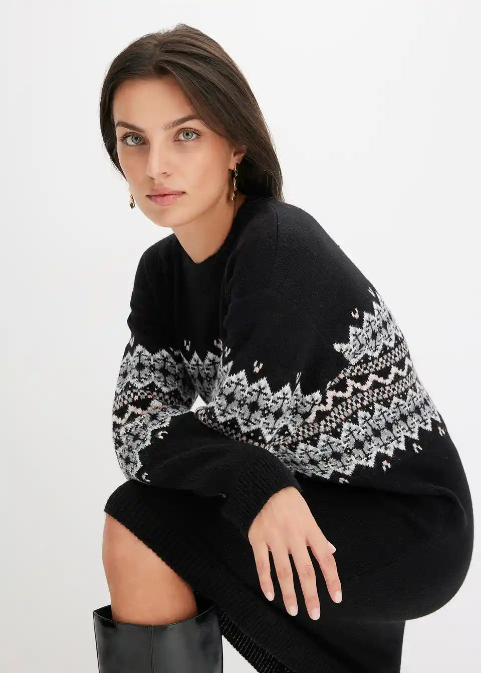 Moderna in ženstvena: Oversized pletena obleka z Jacquard-vzorcem