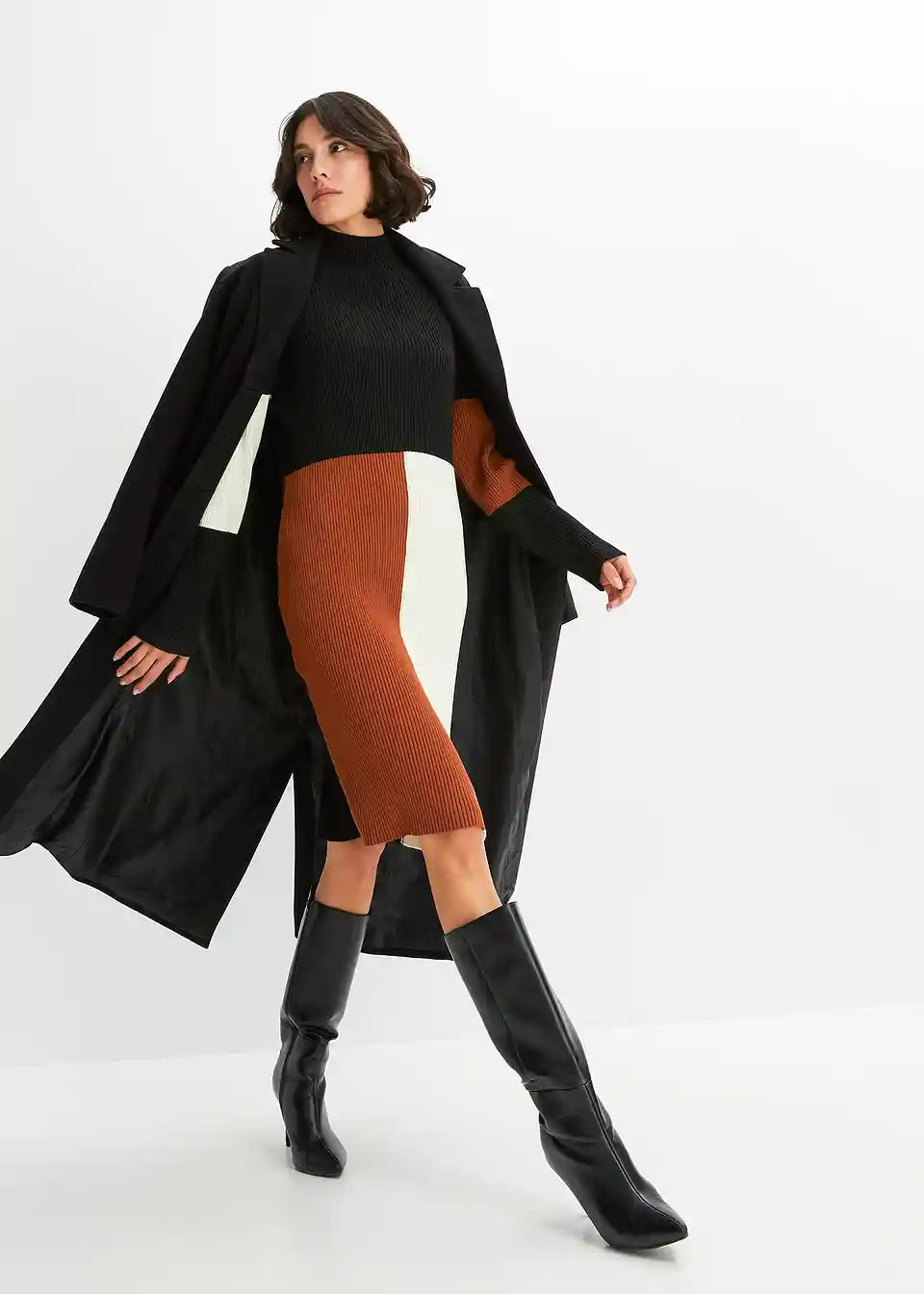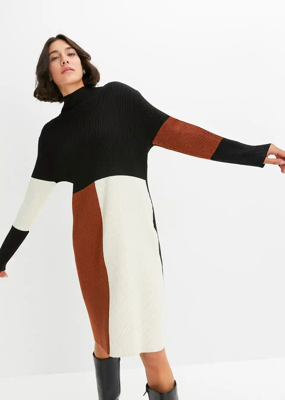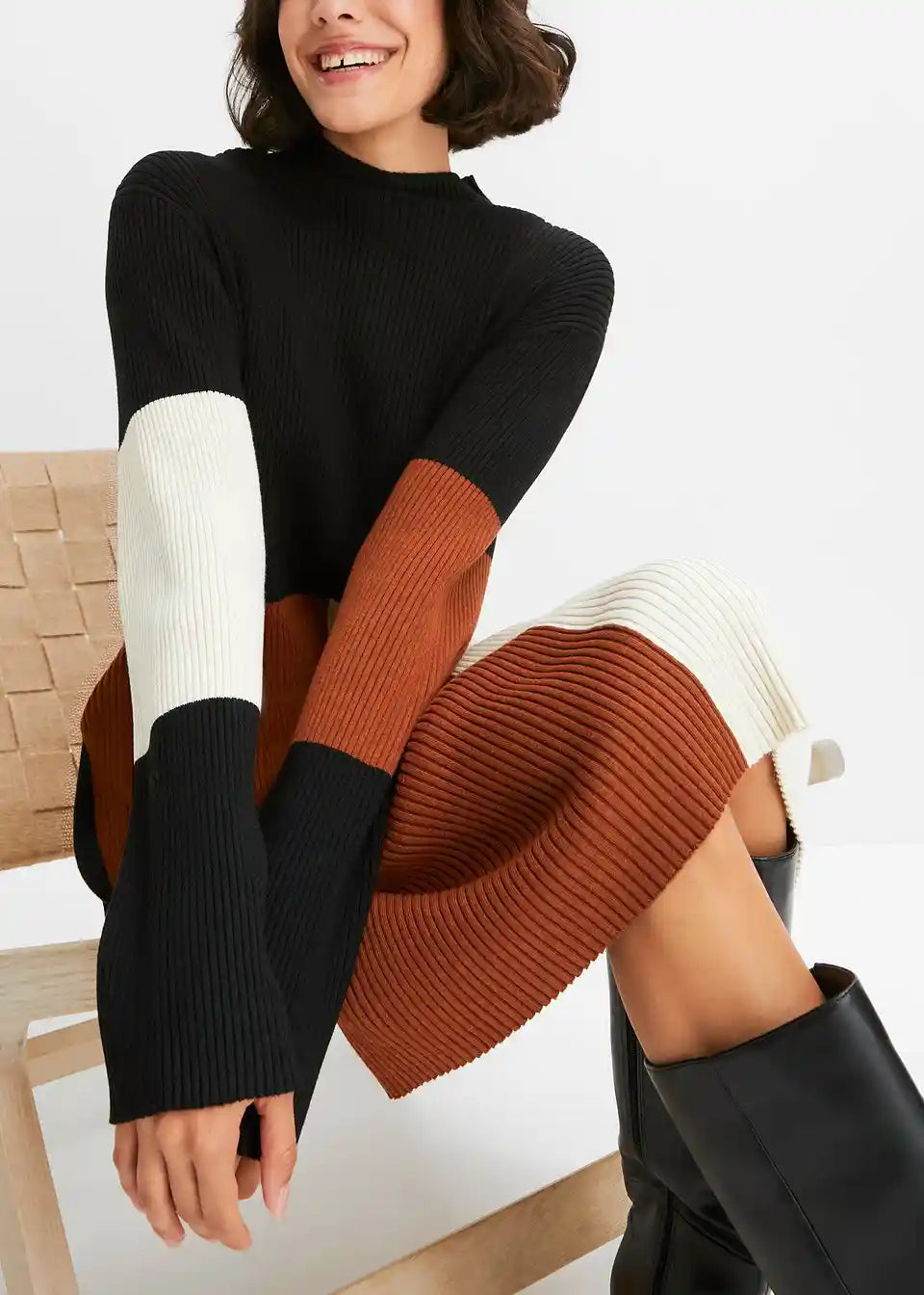 Moderna pletena obleka z grafičnim vzorcem