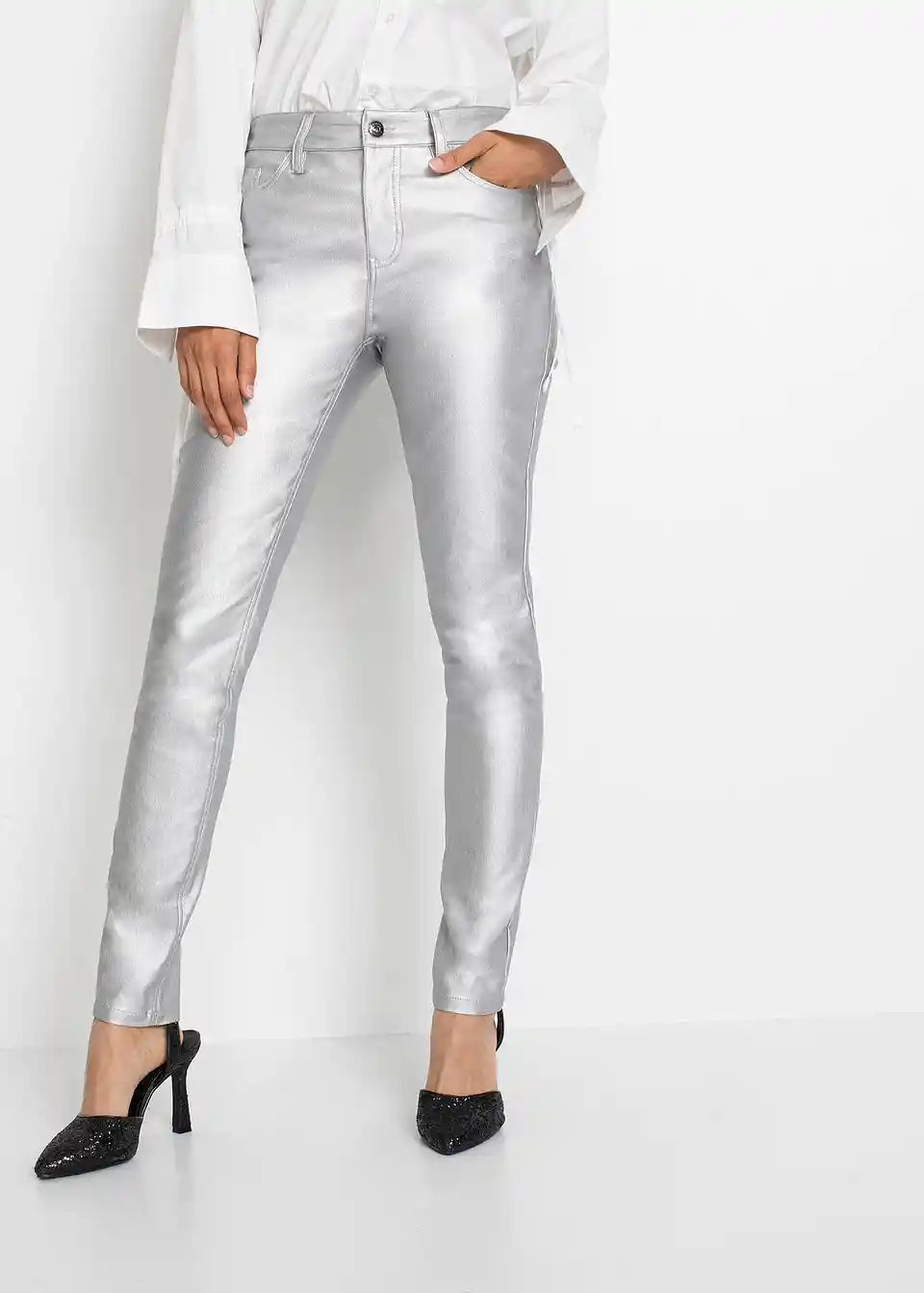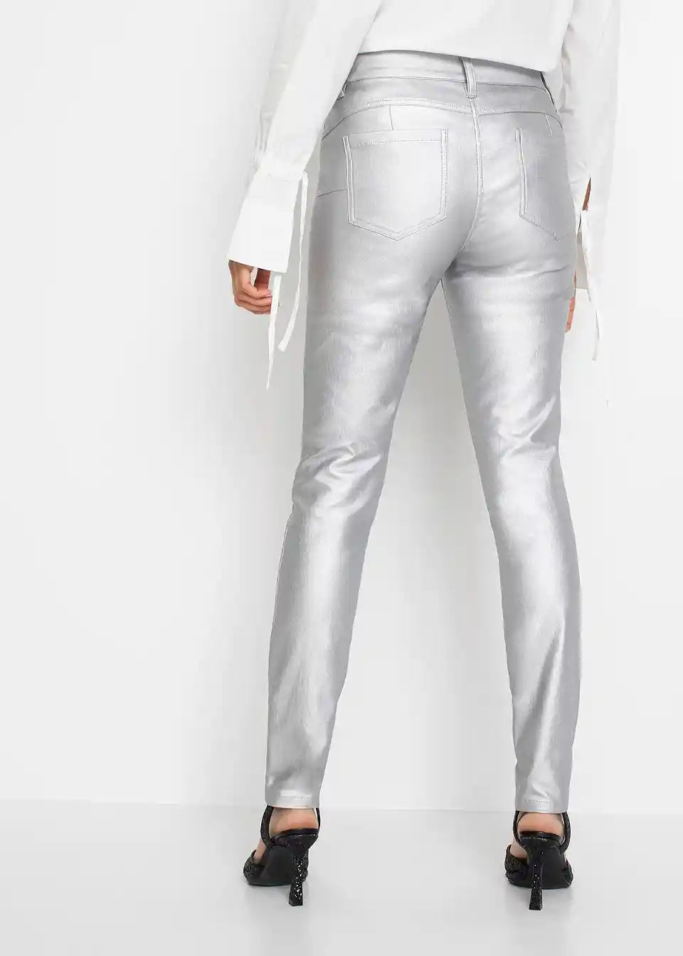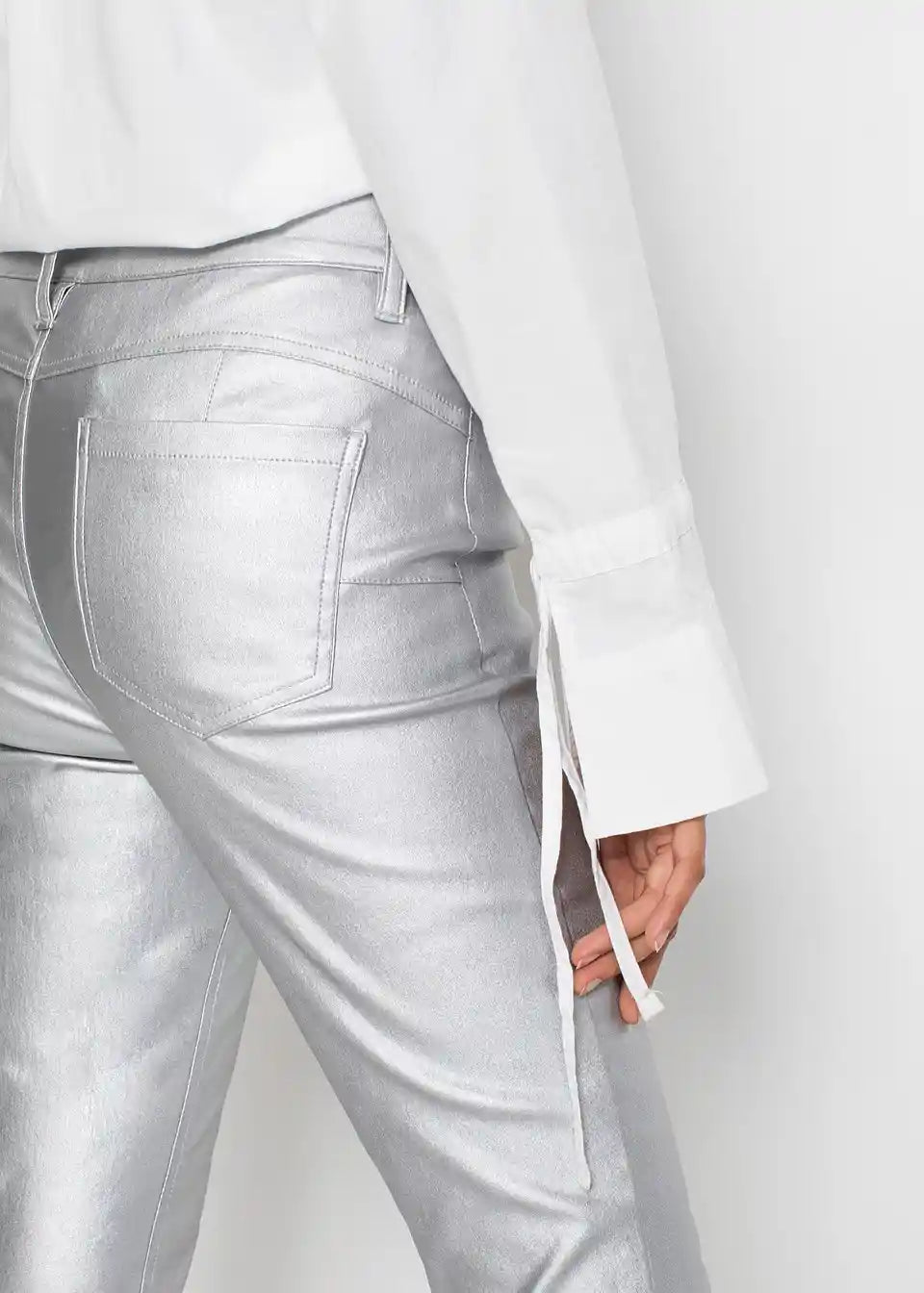 Premazane hlače z dolgimi hlačnicami v kovinskem videzu