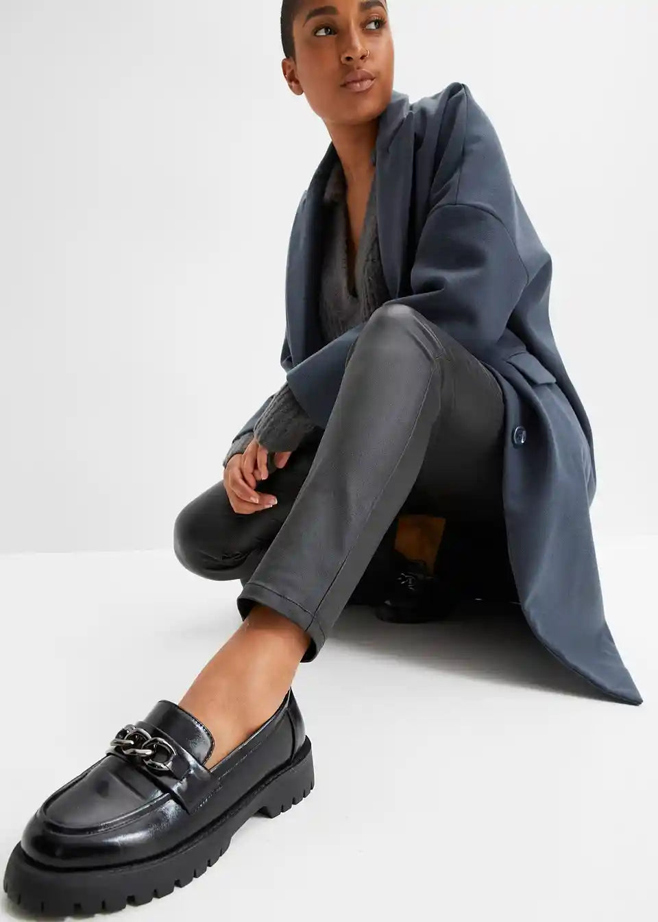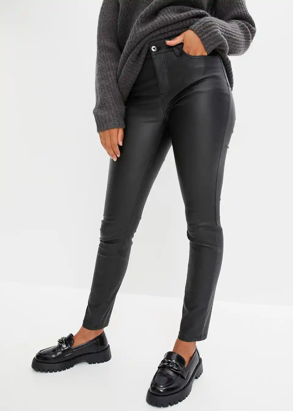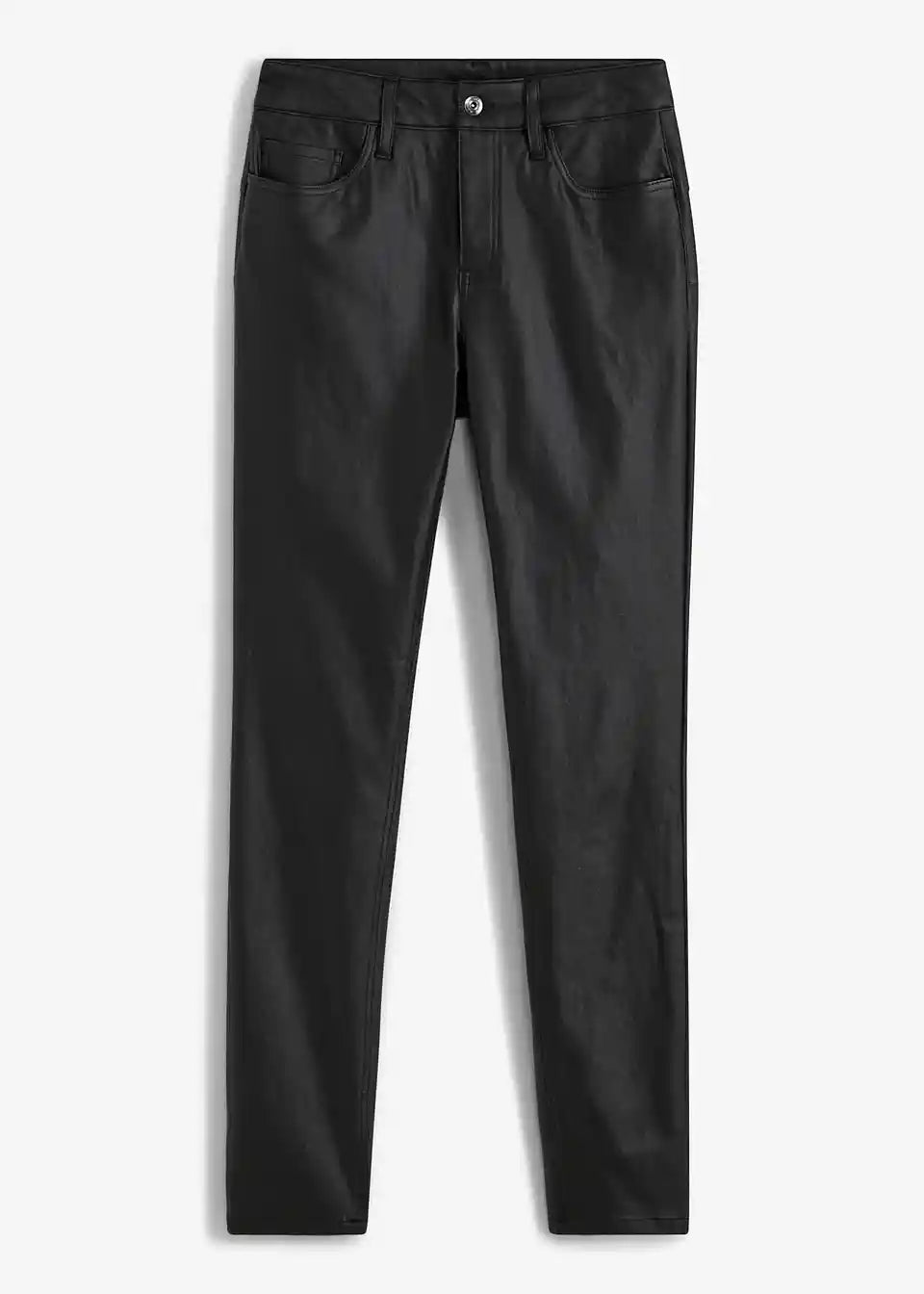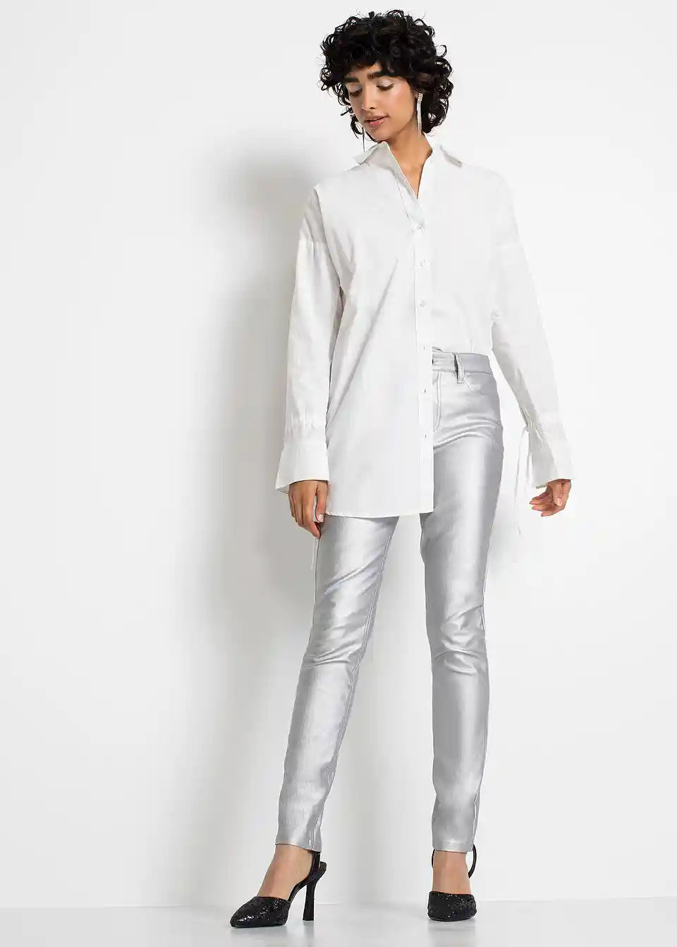 Premazane hlače z dolgimi hlačnicami v kovinskem videzu