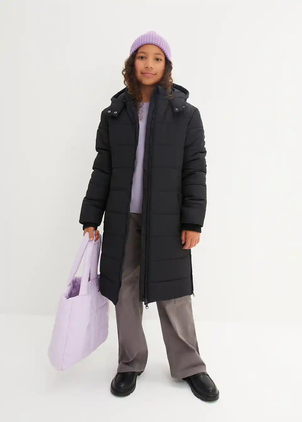 Moderen dekliški plašč s prešitjem in žepi z zadrgo
