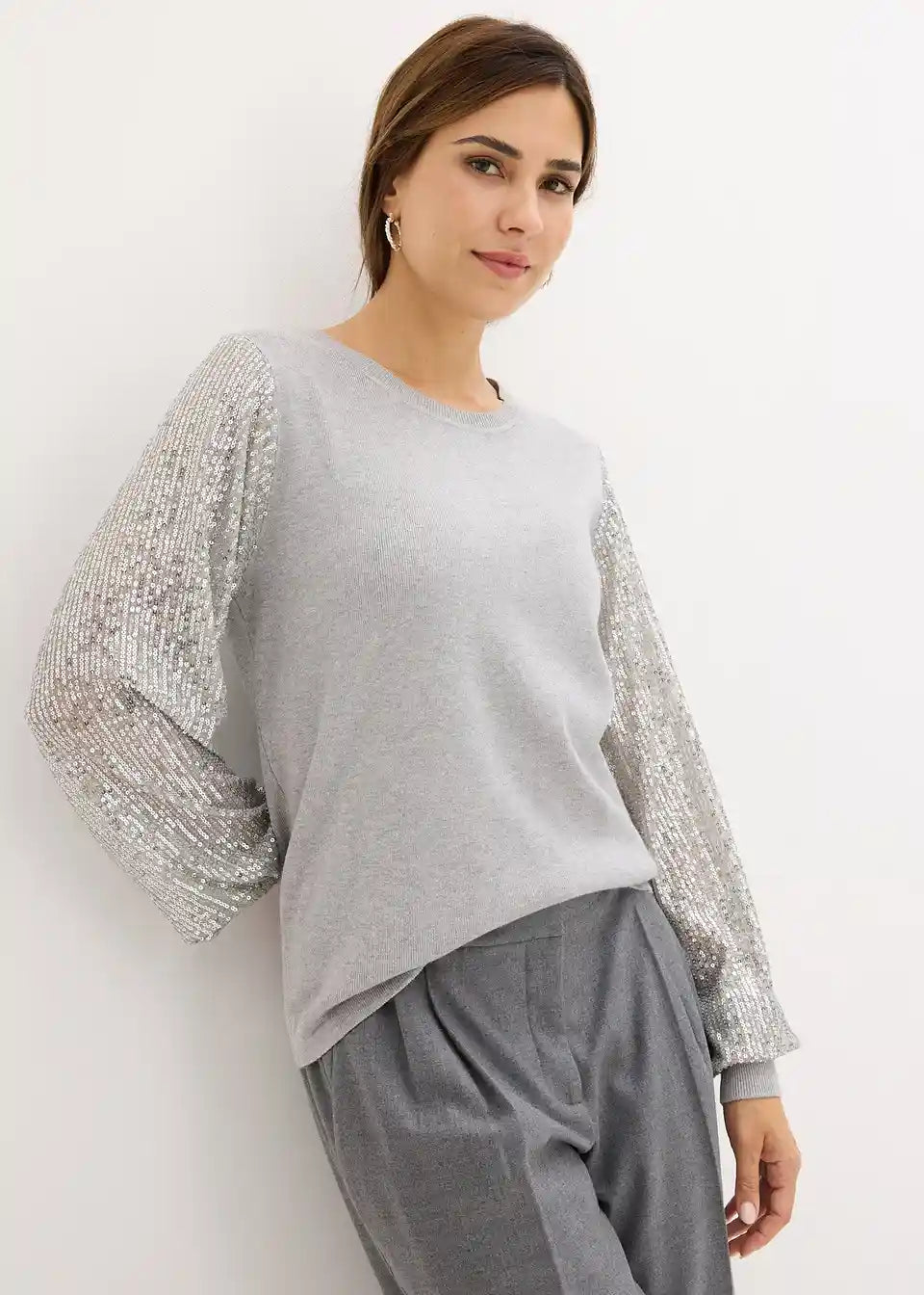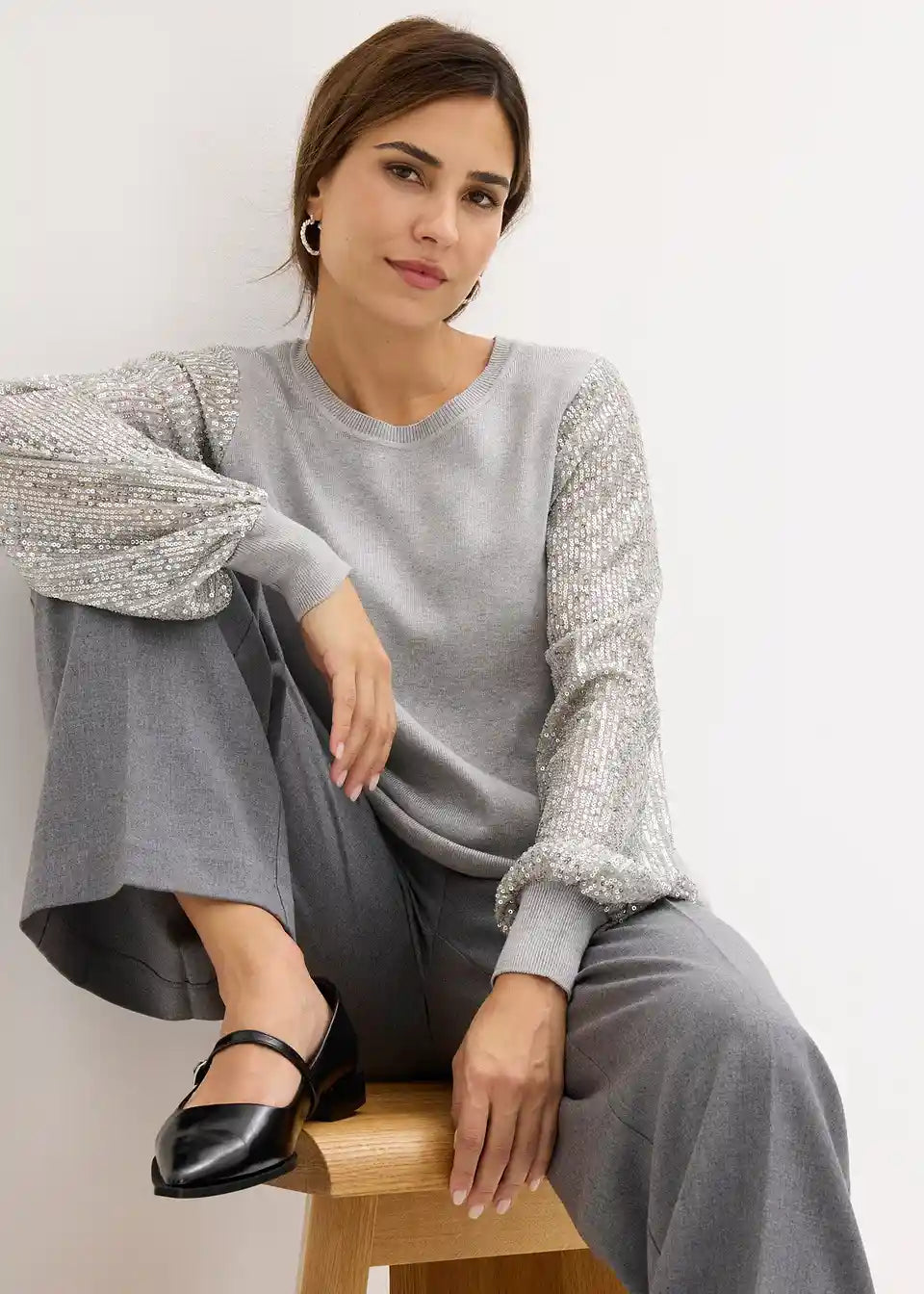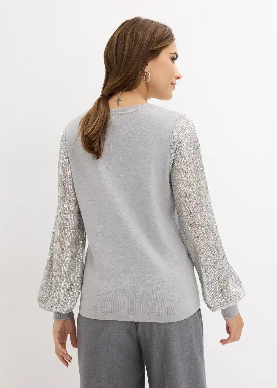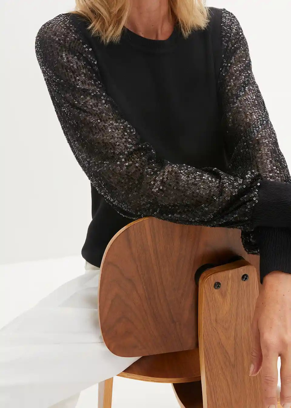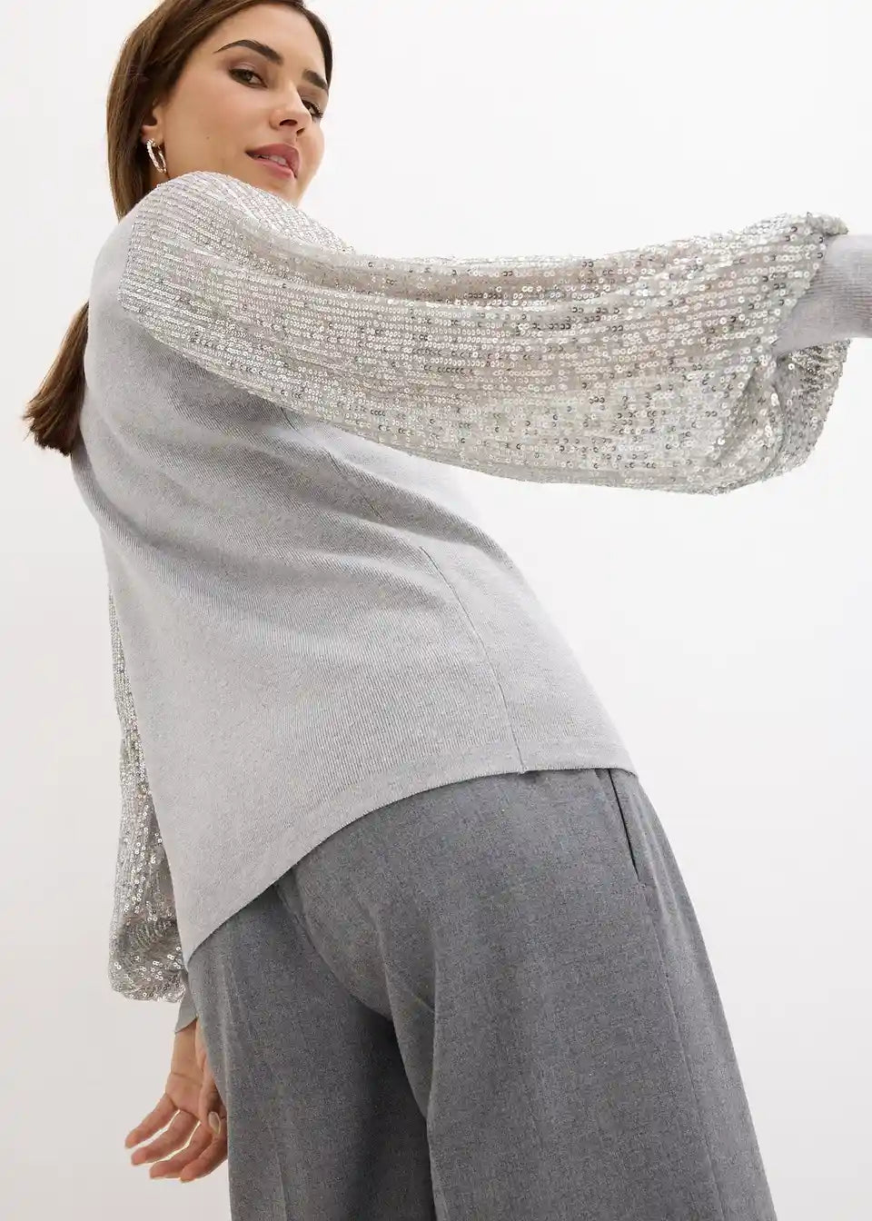 Ekstravaganten pulover z balonastimi Pailetten rokavi