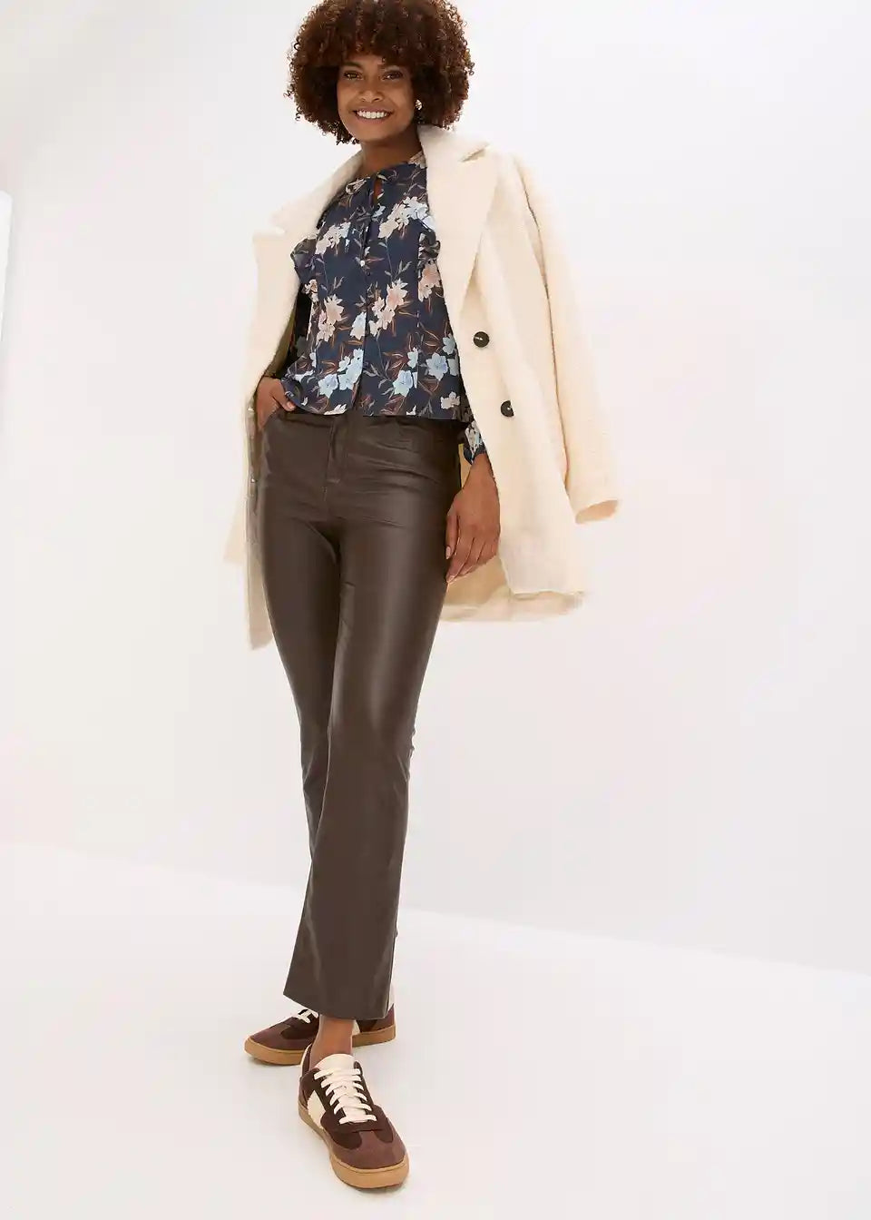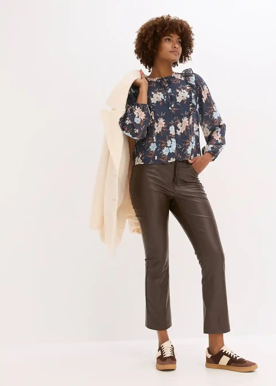 Udobna bluza iz šifona s trakom za zavezovanje, gumbi in volani