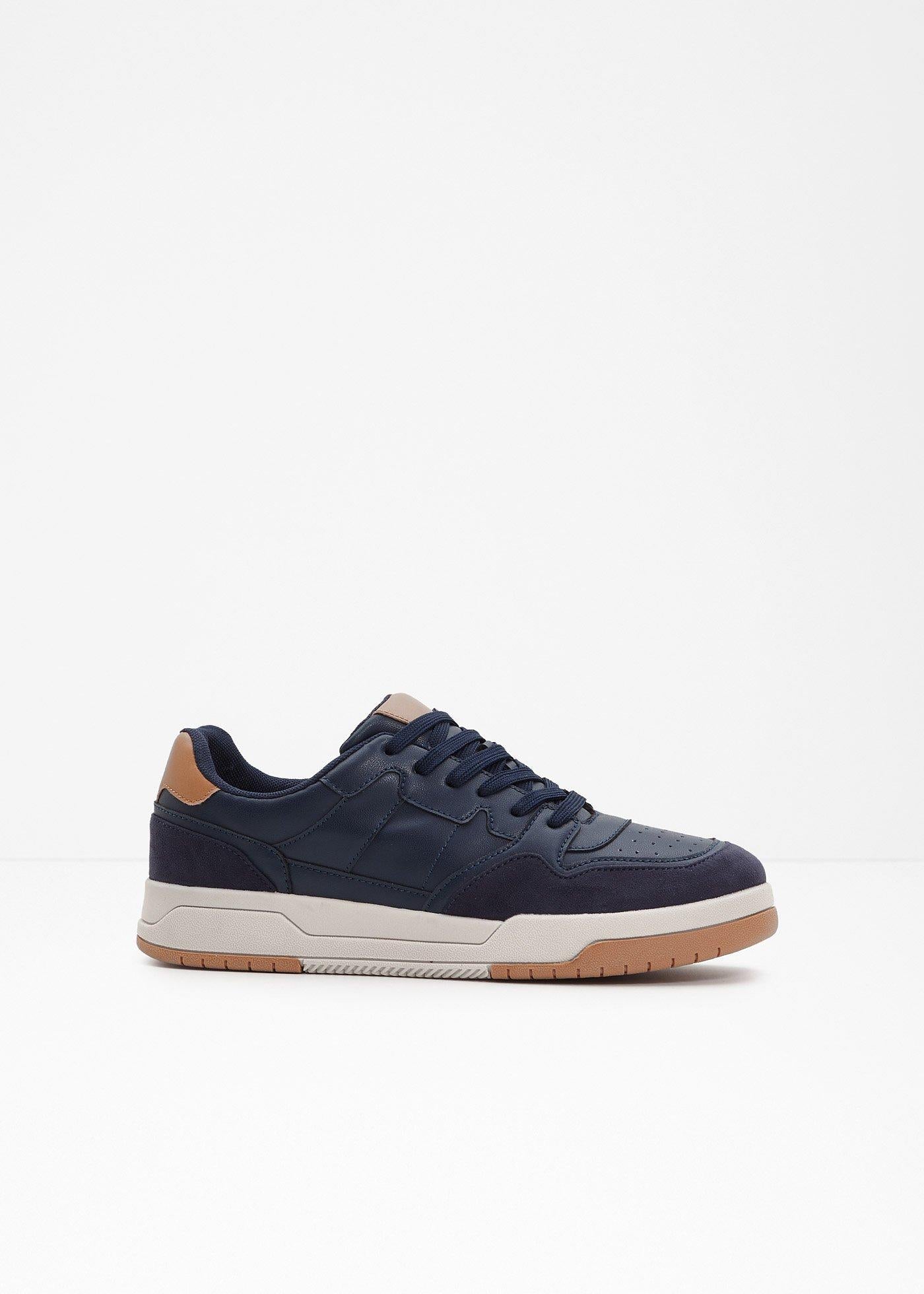Z zgornjim materialom iz umetnega usnja in umetnega velurnega usnja, podlogo in notranjim podplatom iz tekstila ter podplatom iz sintetike.