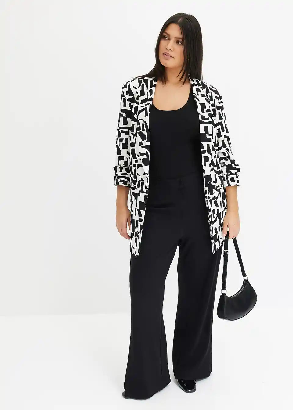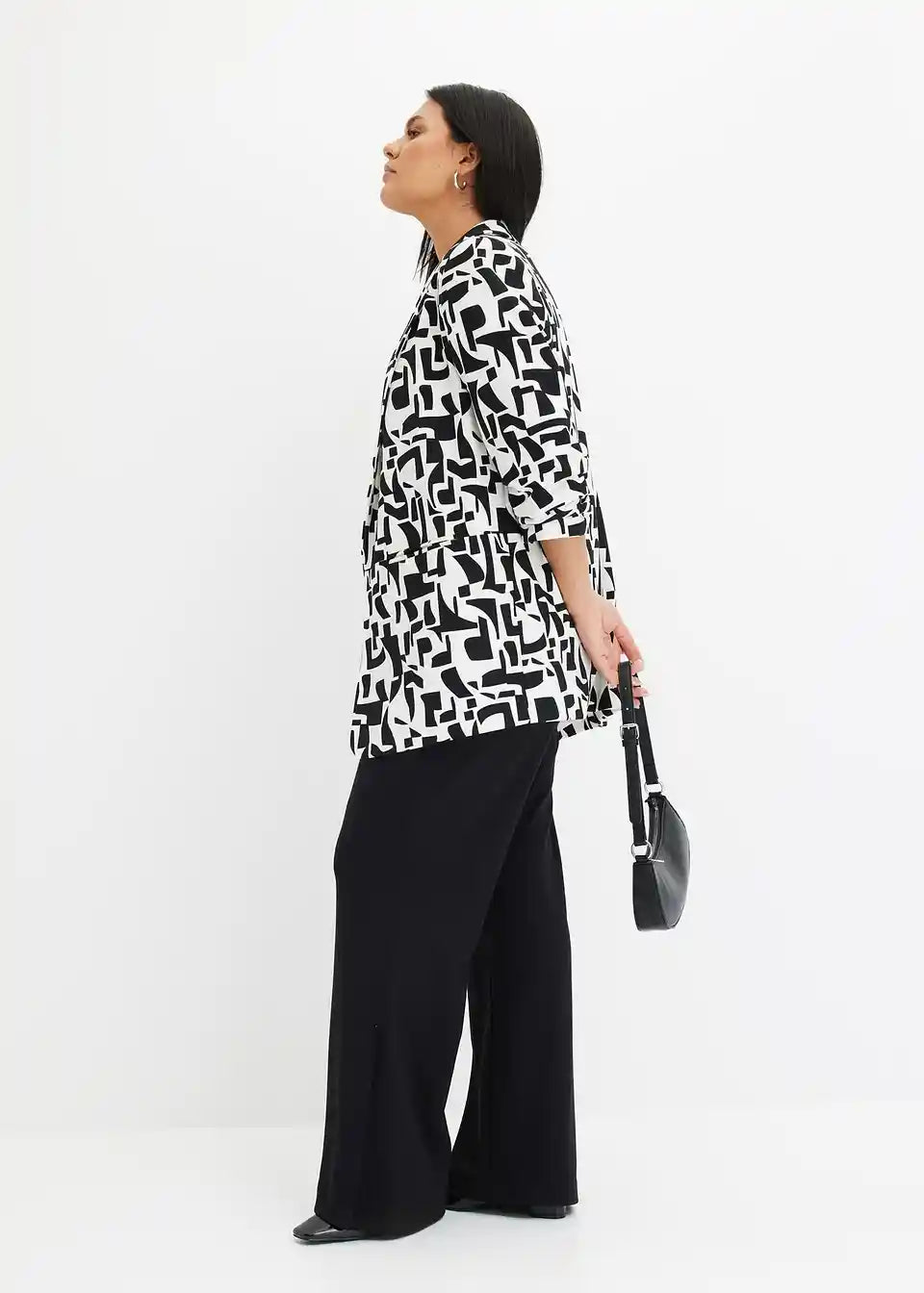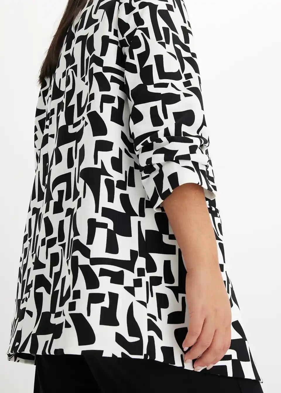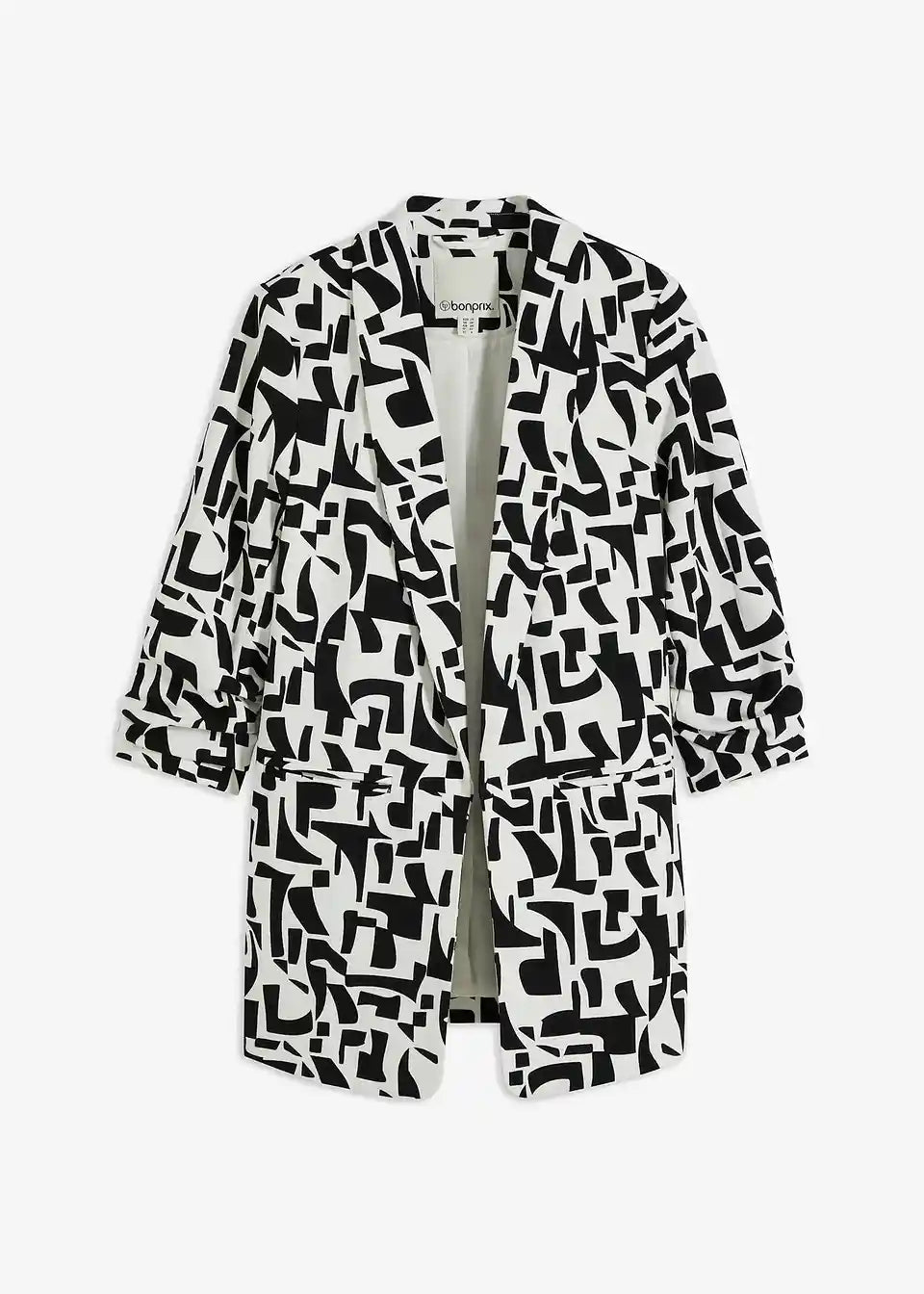 grafično tiskani dolgi blazer z nabranimi 3/4 rokavi