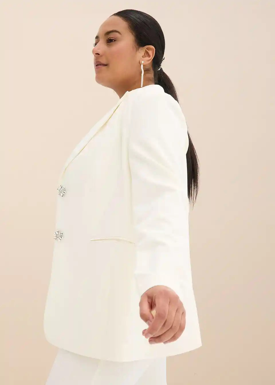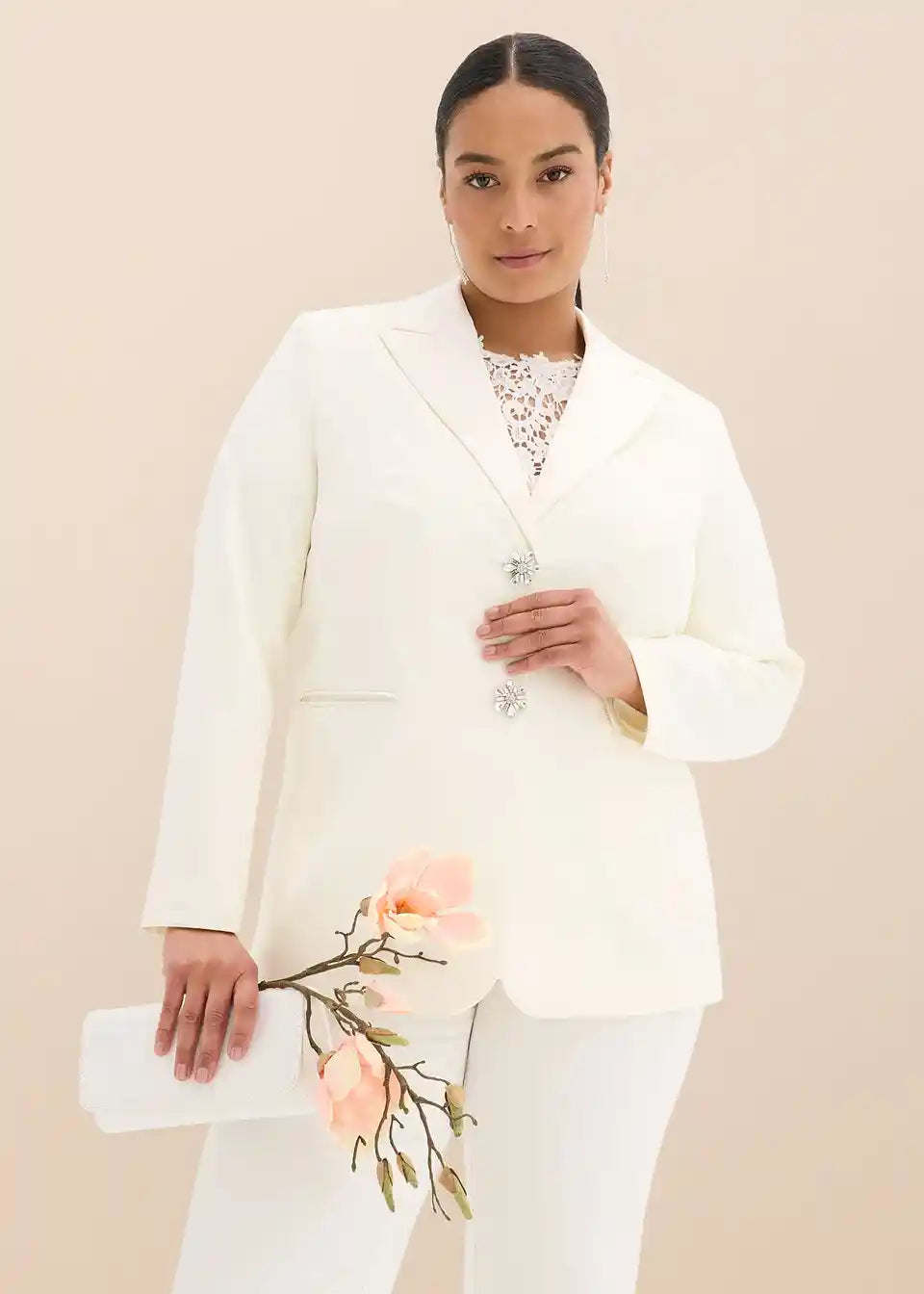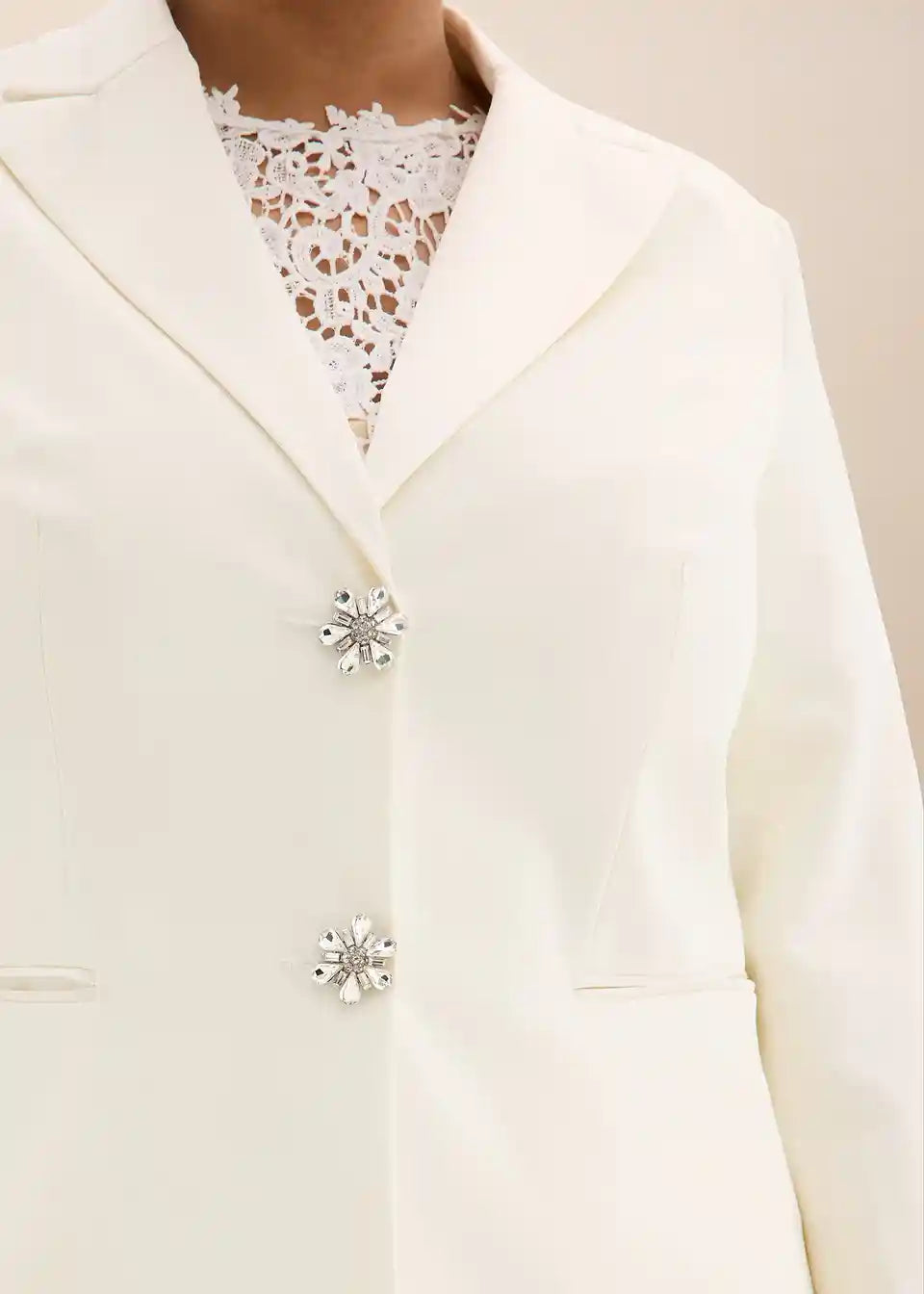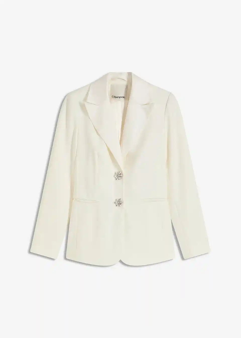 Moderen in ženstven: Blazer s satenastim ovratnikom in okrasnimi gumbi