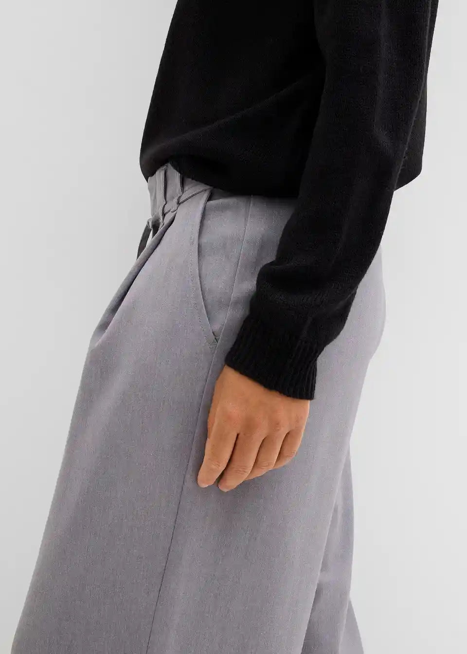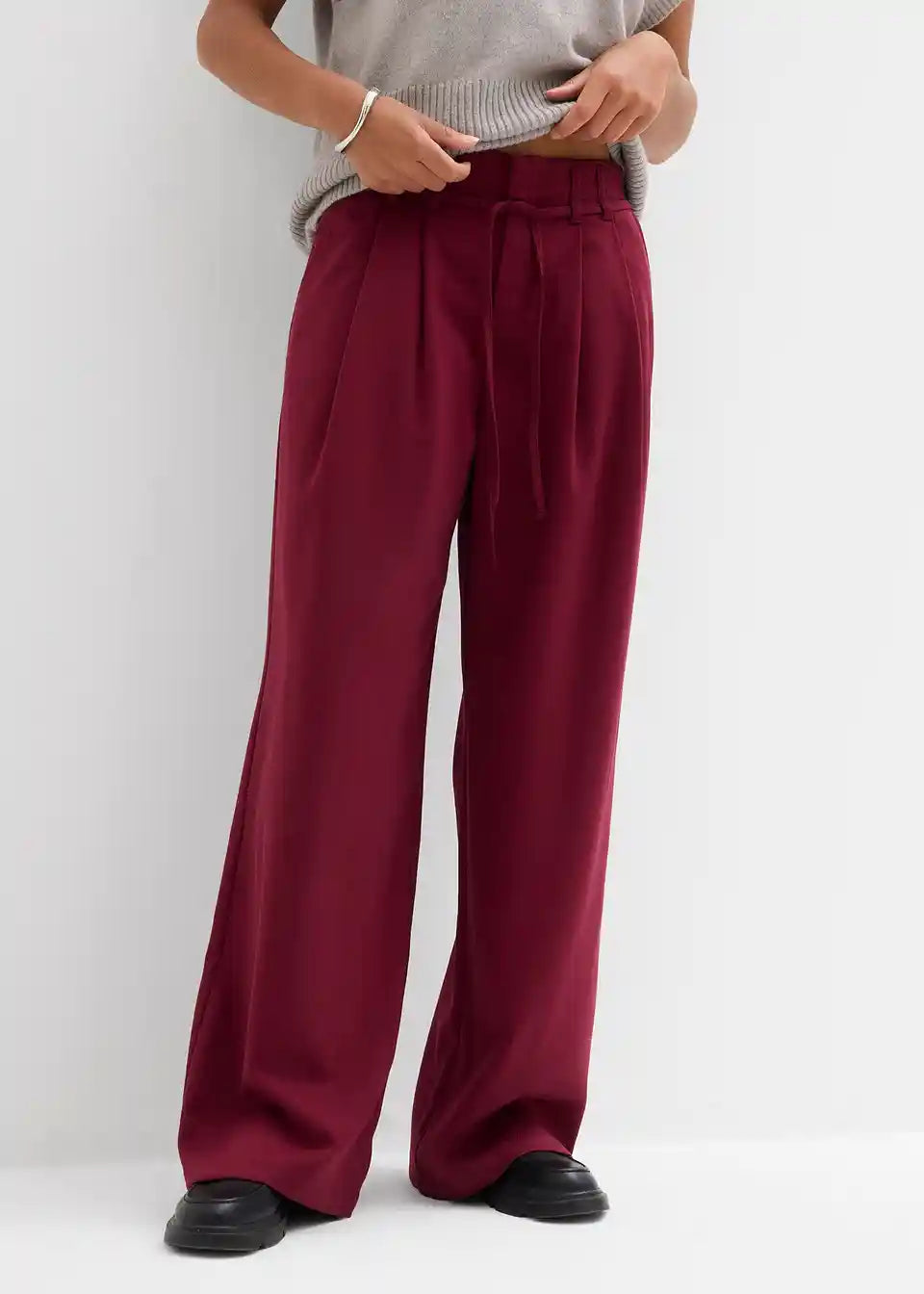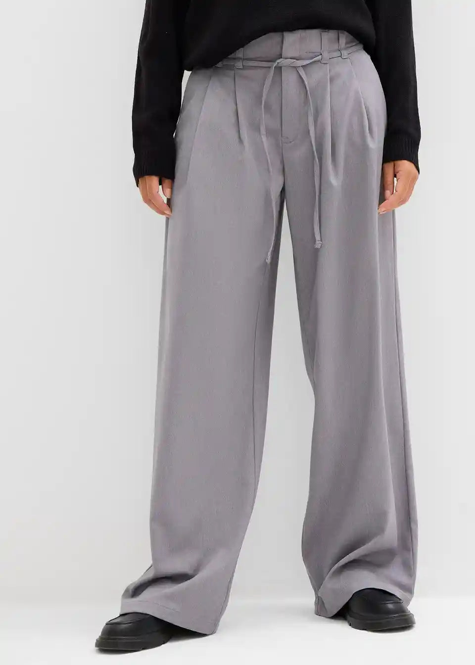 Udobne široke hlače z všitki v pasu s trakom za zavezovanje