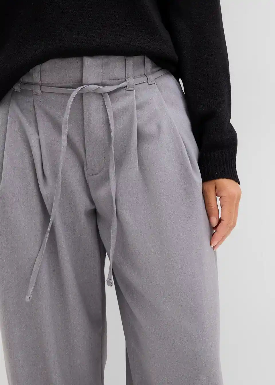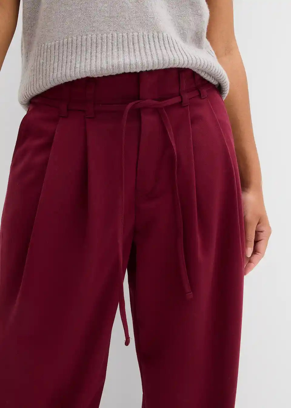 Hlače z gubami v pasu s trakom za zavezovanje