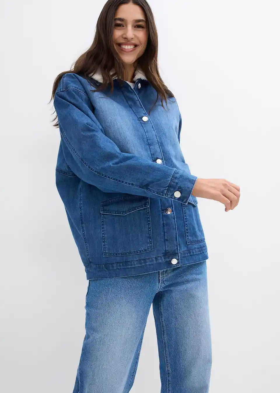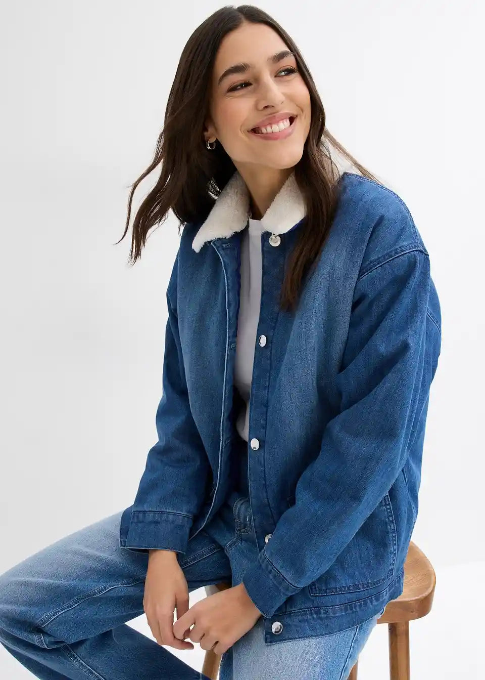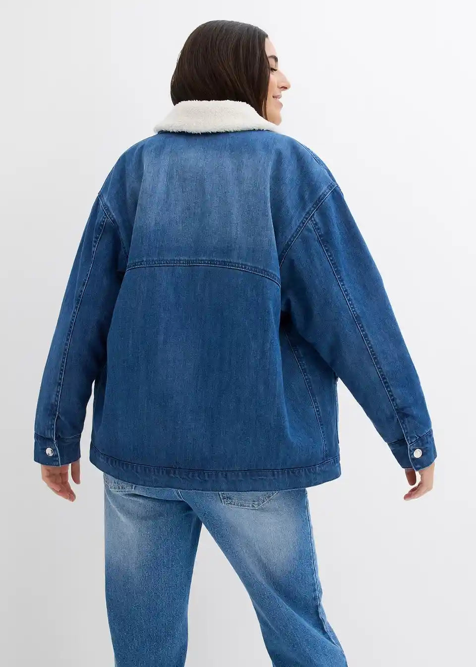 Oversize jeans jakna s mehkim Teddy ovratnikom