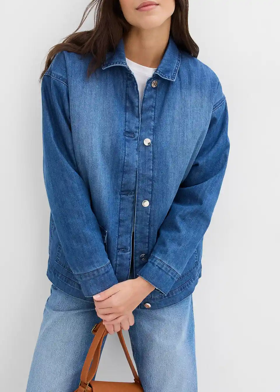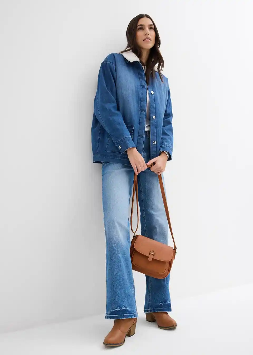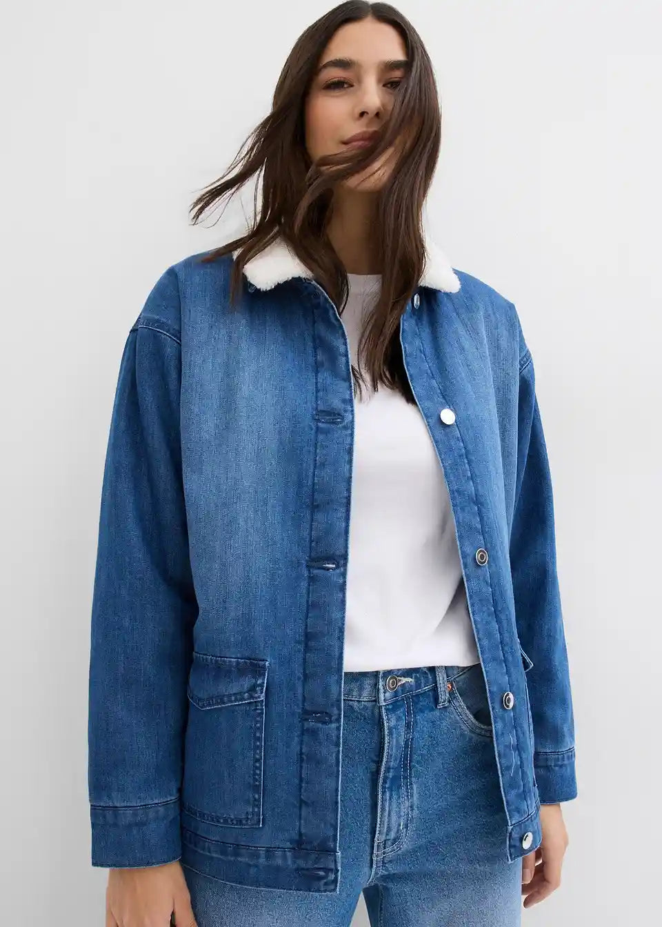 Oversize jeans jakna s mehkim Teddy ovratnikom