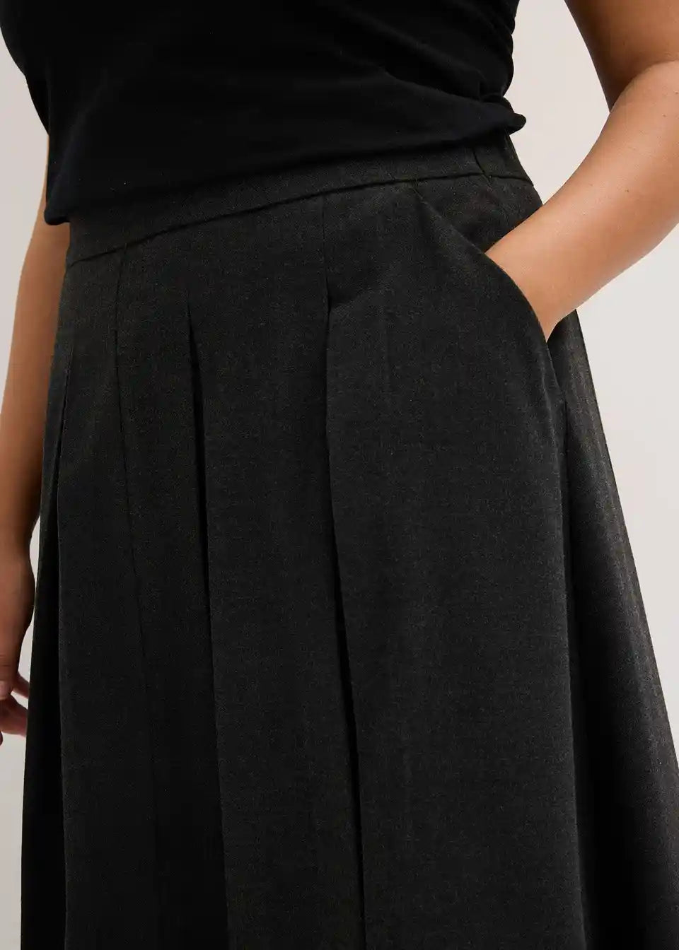 Krilo z gubami v midi dolžini s stranskimi žepi