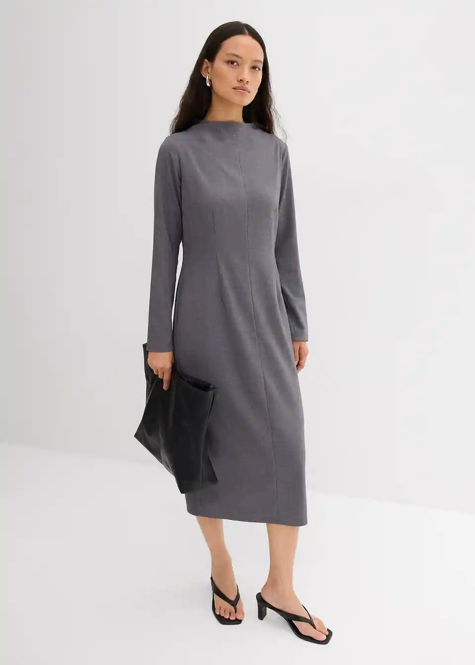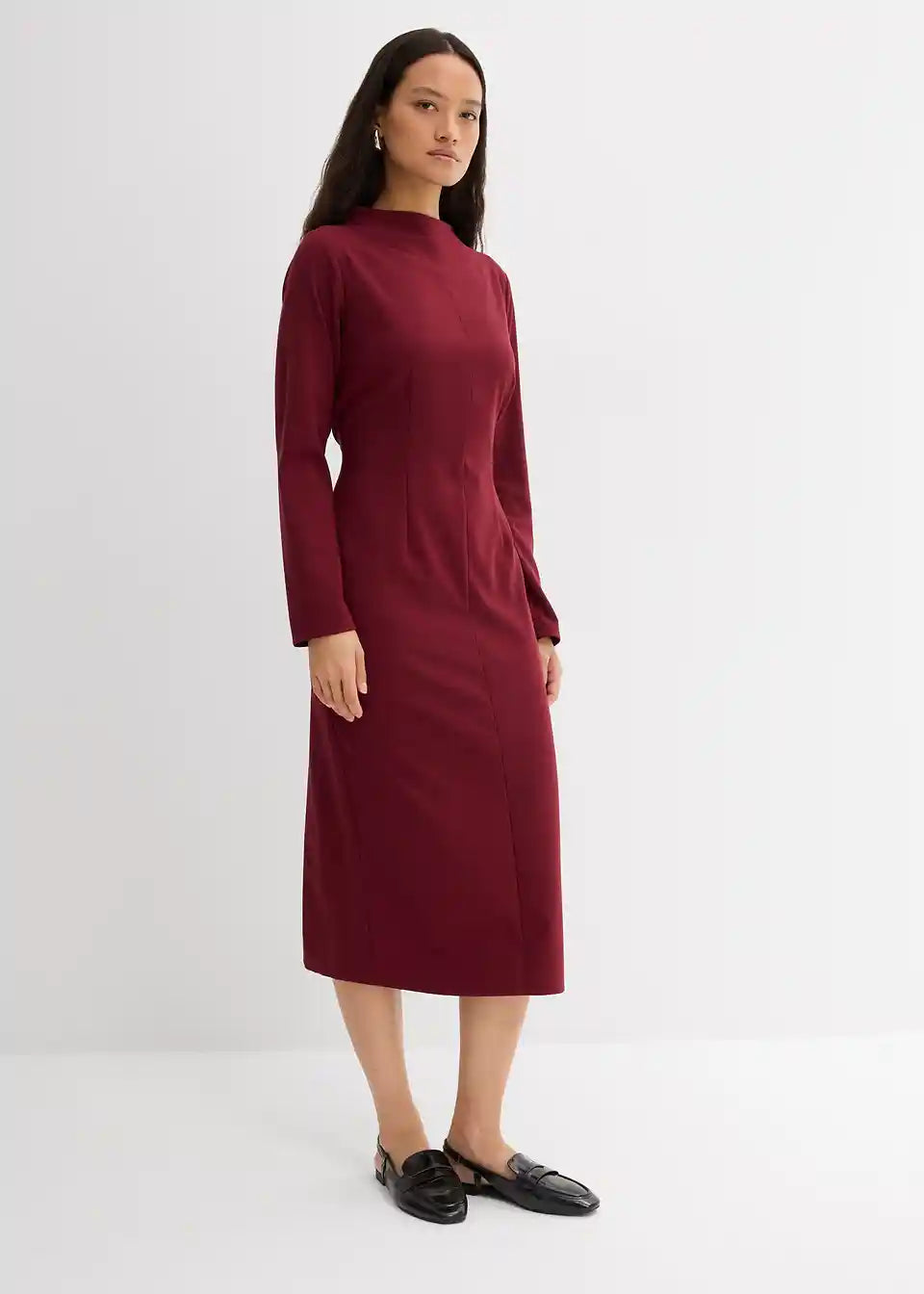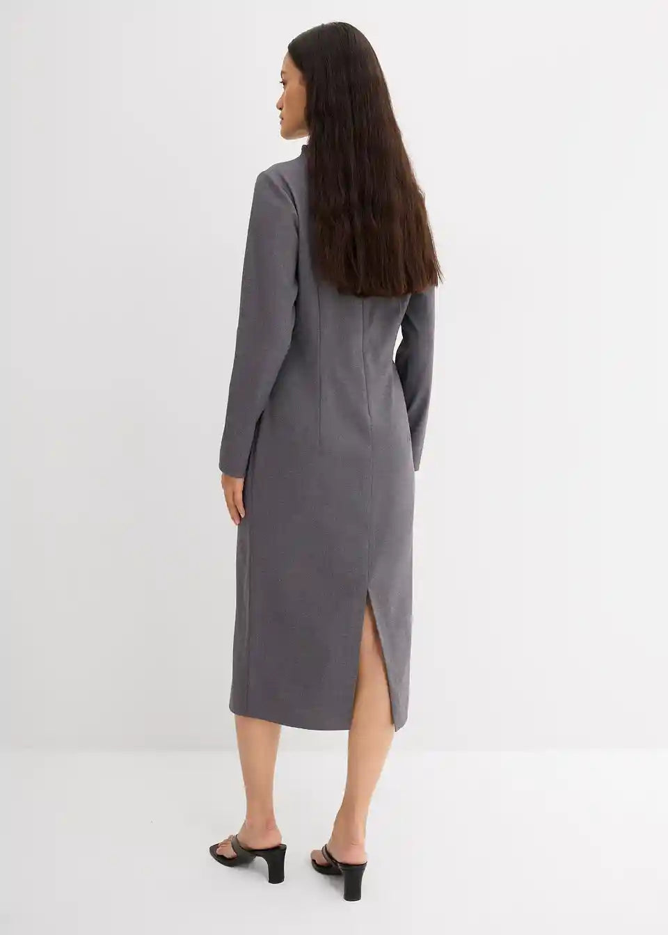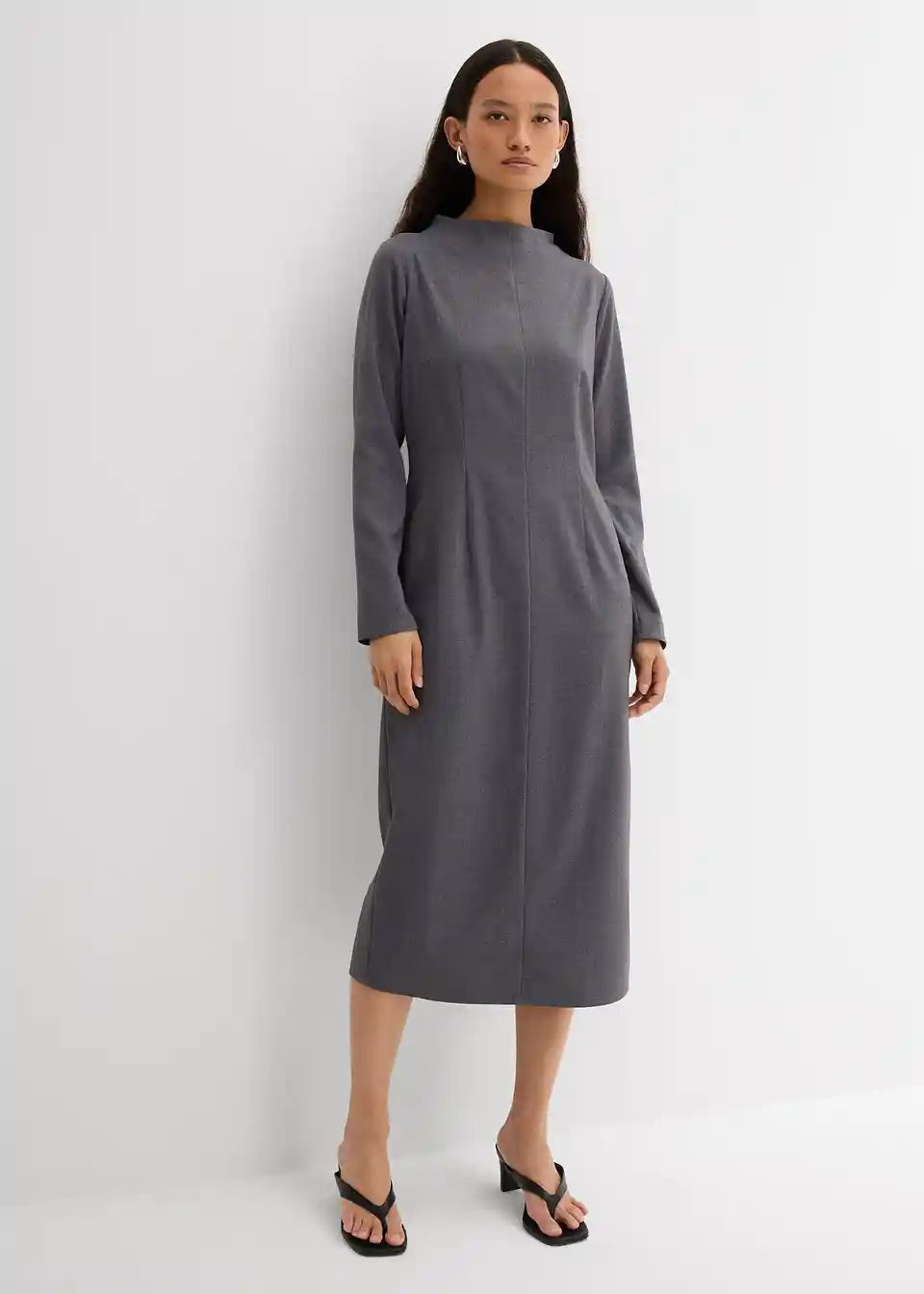 Visoko zaprta midi obleka z všitki ter prešivi spredaj in zadaj ter zapenjanjem z zadrgo zadaj