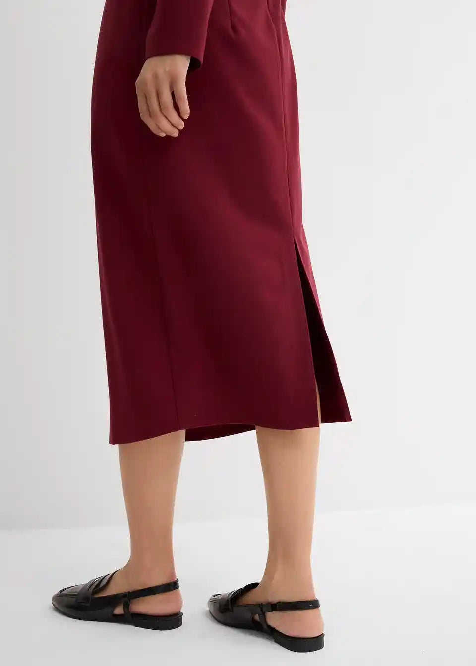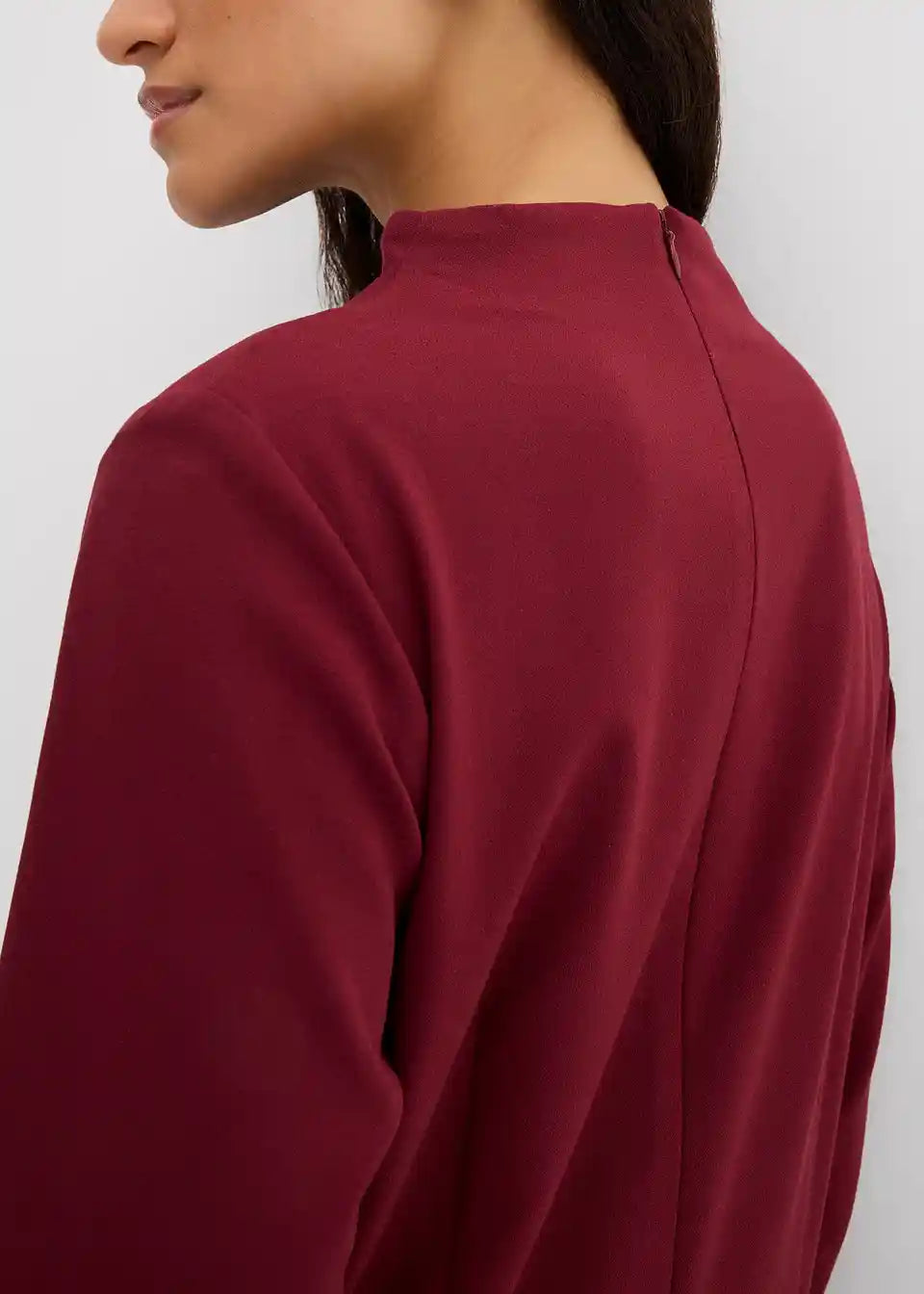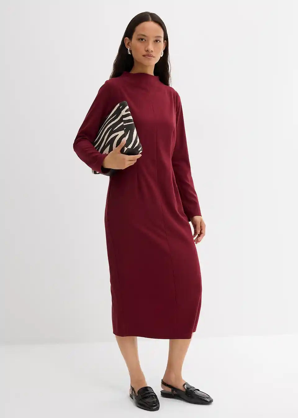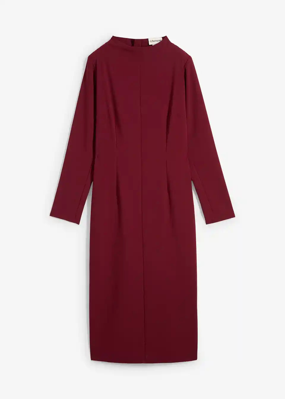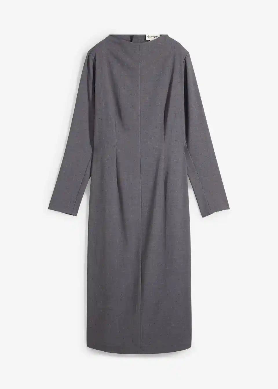 Visoko zaprta midi obleka z všitki ter prešivi spredaj in zadaj ter zapenjanjem z zadrgo zadaj