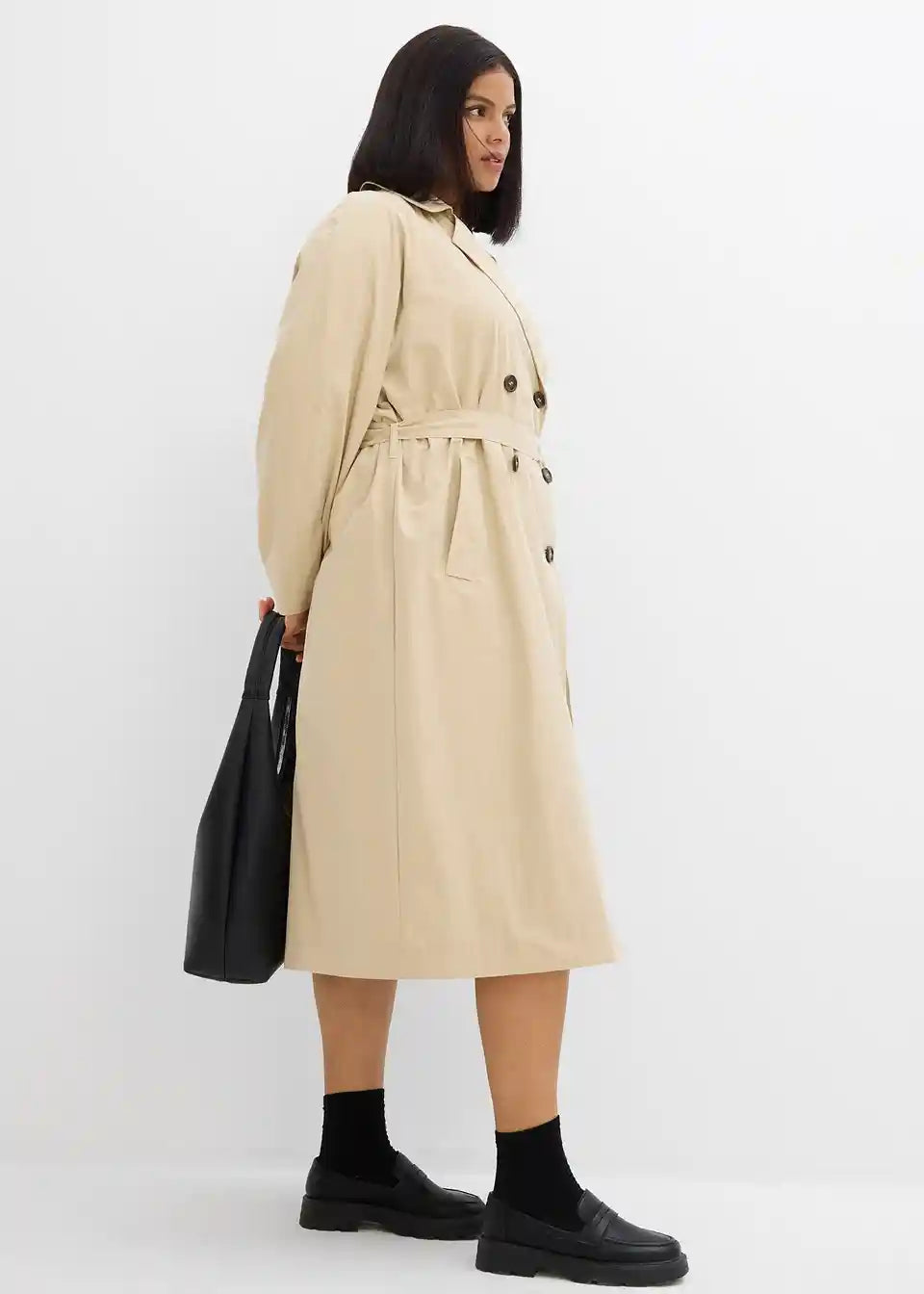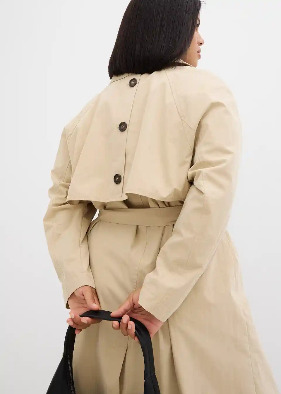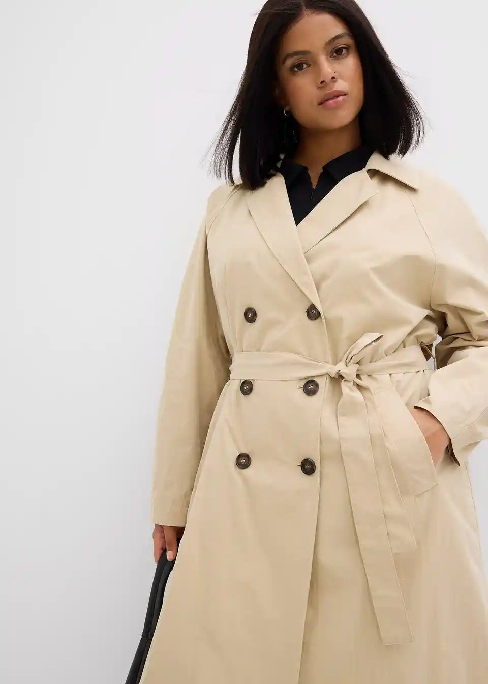 Dvoredni trenčkot s pasom za zavezovanje v pasu ter poševnimi žepi z letvico