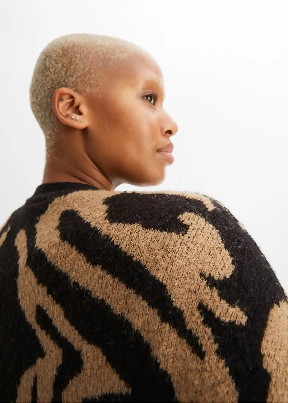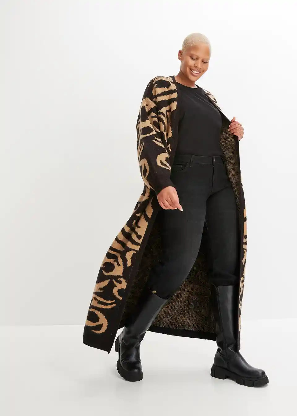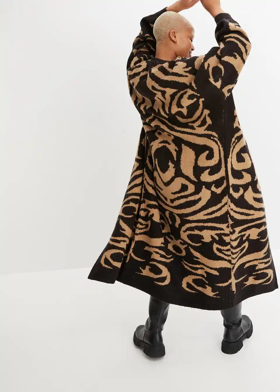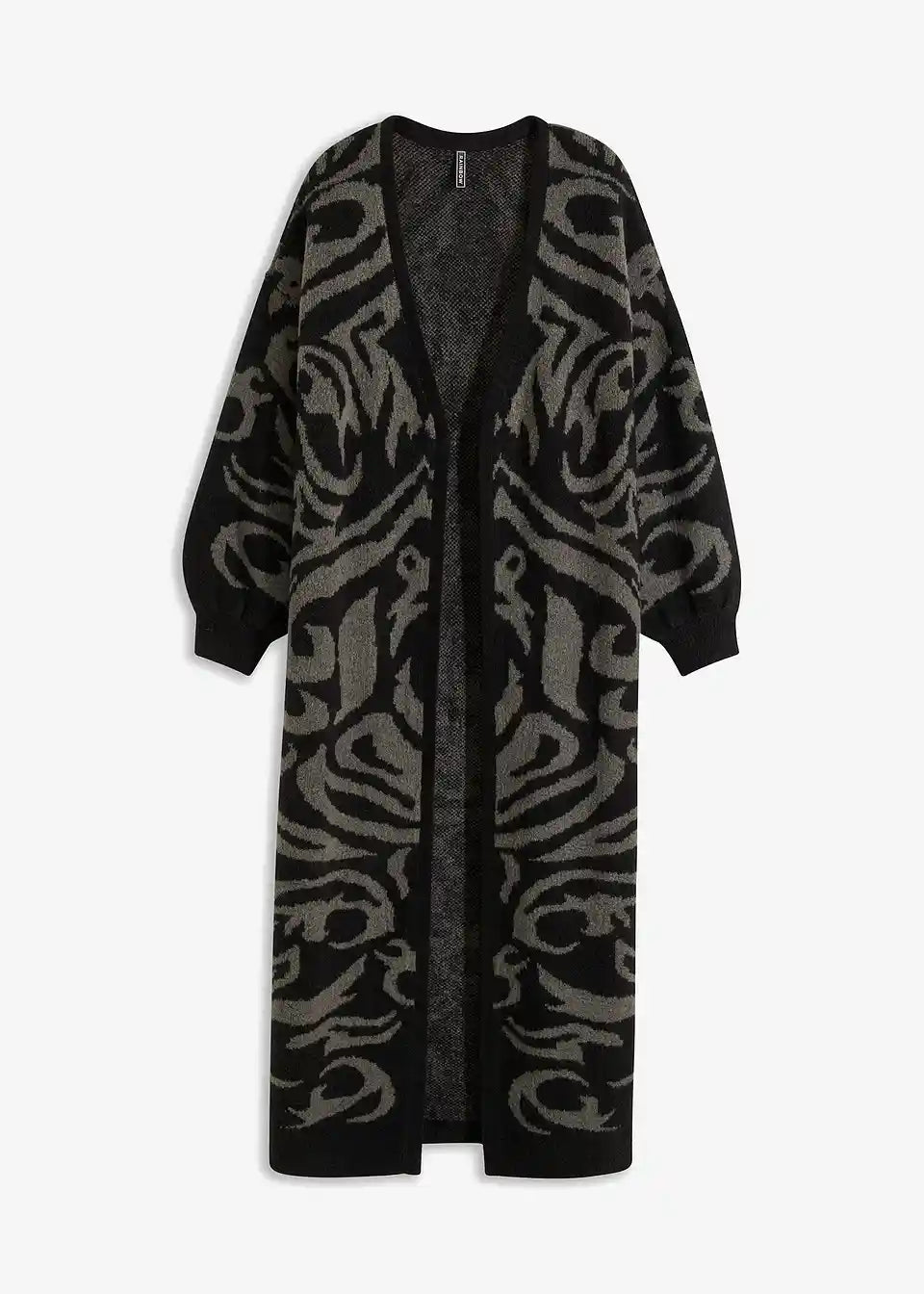 Moden prevelik plašč, ekstra dolg iz pletenin z Jacquard dizajnom