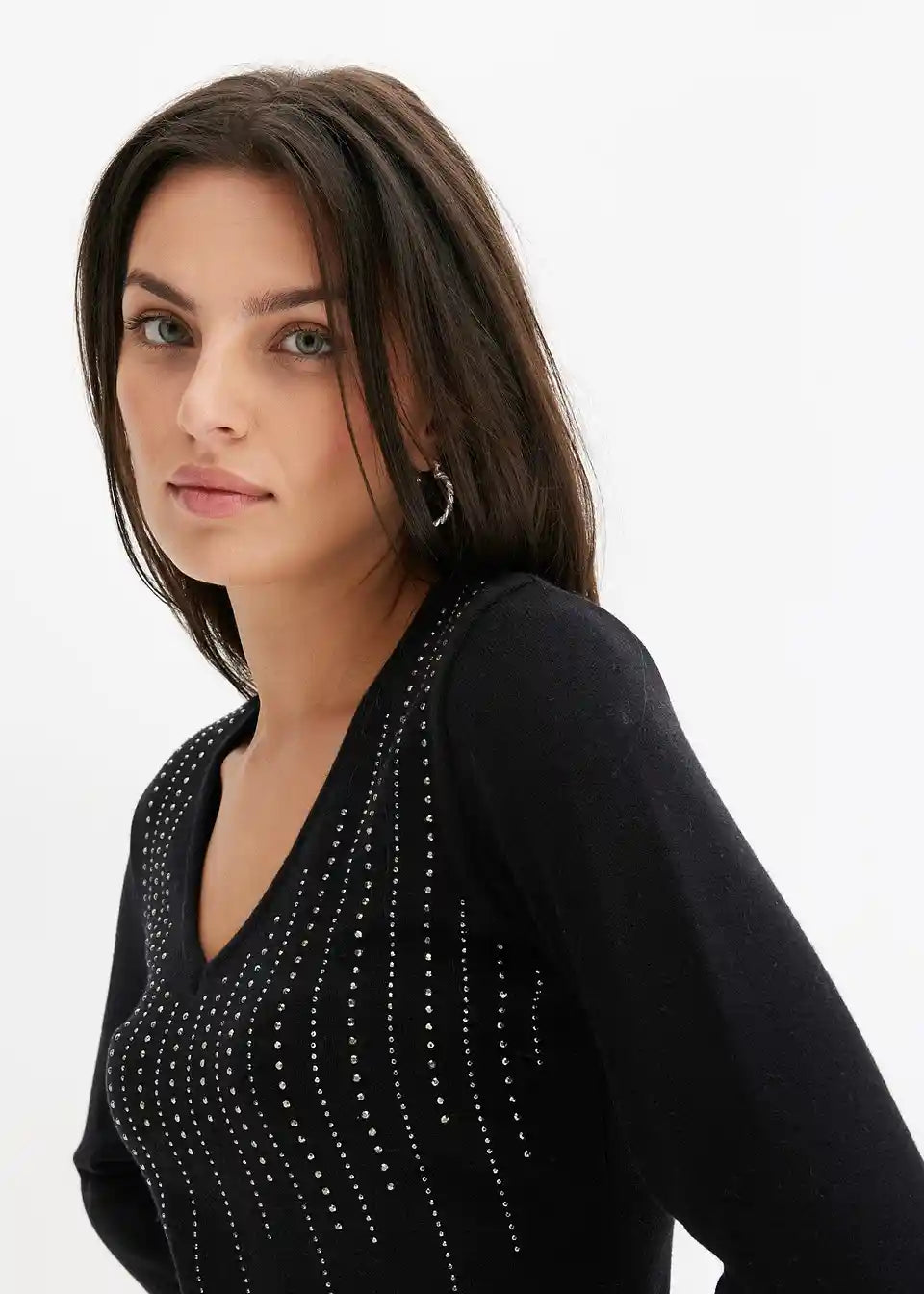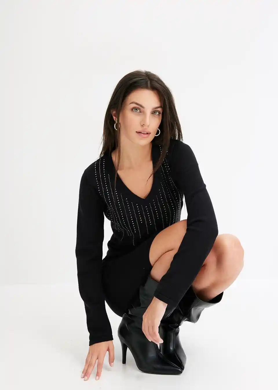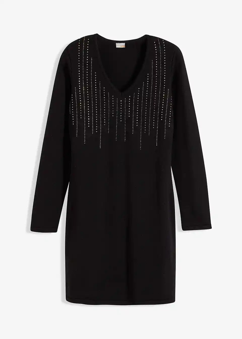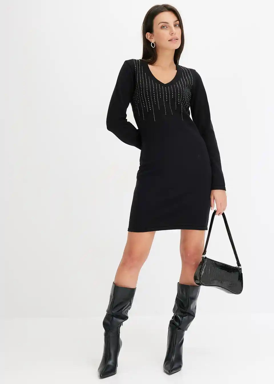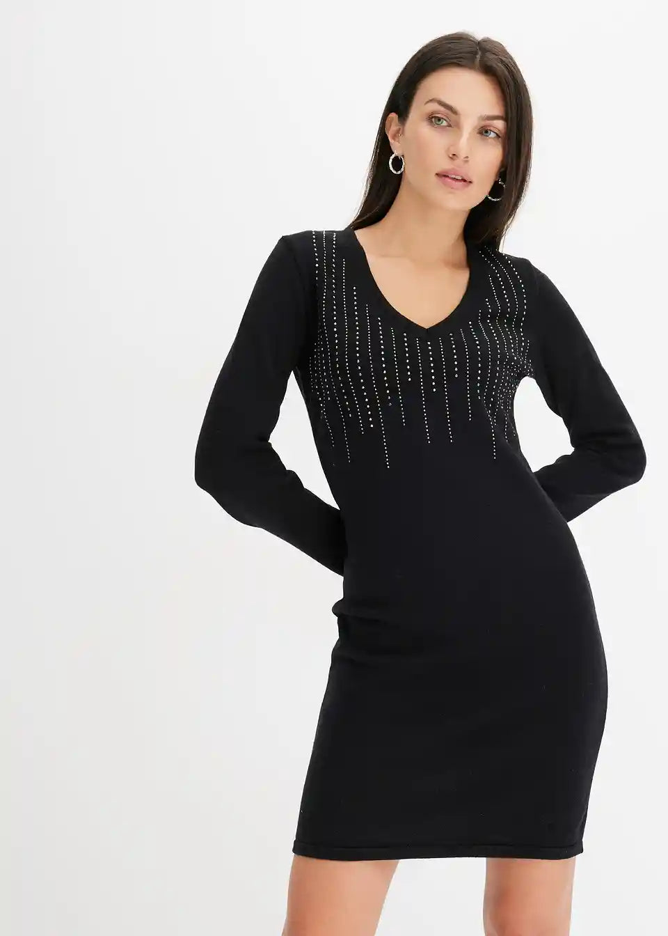 Moderno in ženstveno: pletena obleka z okrasnimi kamni
