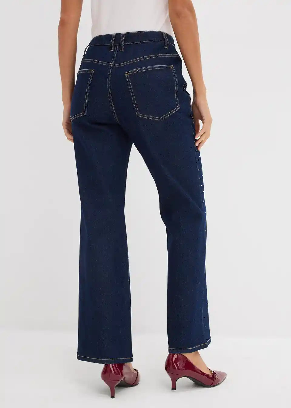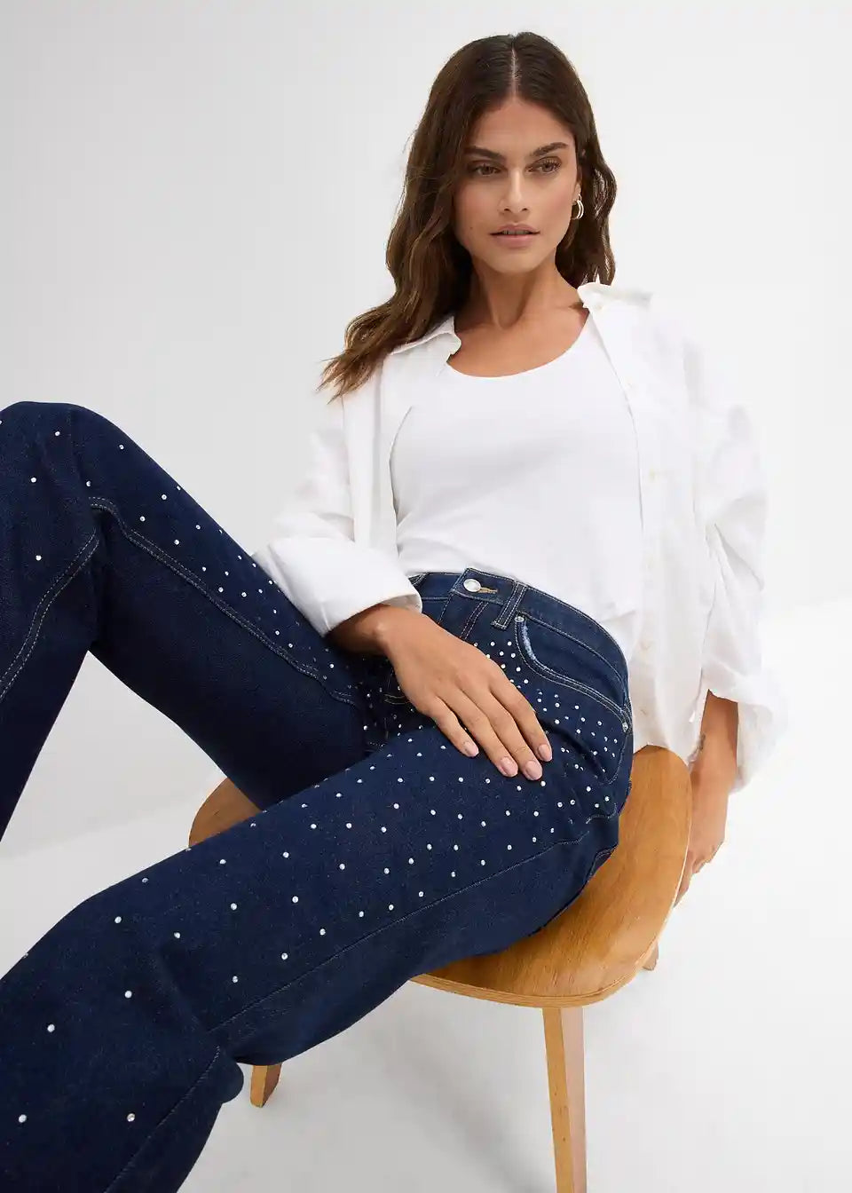 Ravne kavbojke s srednje visokim udobnim pasom z bleščicami